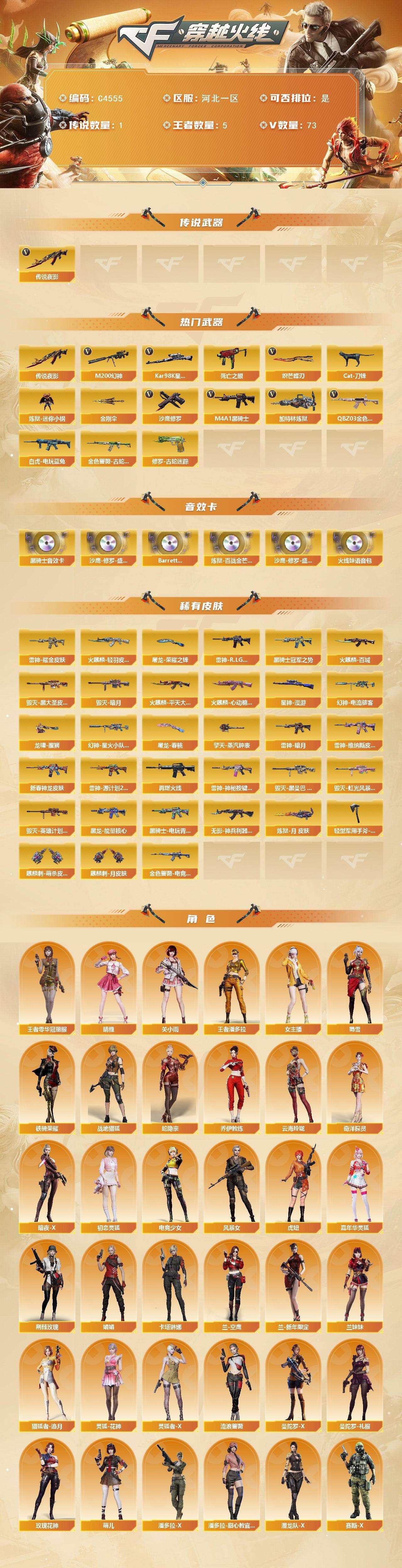 【C4555】河北一区-73V-5王者-0炫金