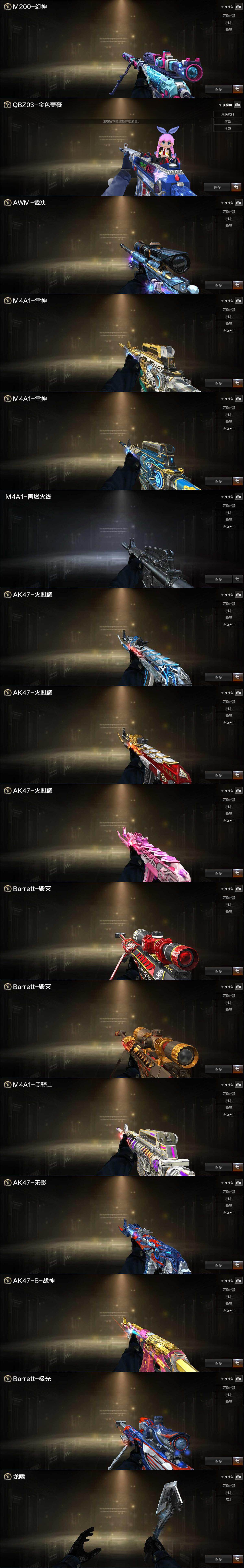 【热门武器】:M200-幻神,白虎-电玩蓝兔,M4A1-黑骑士,金色蔷薇-空,沙鹰-修罗