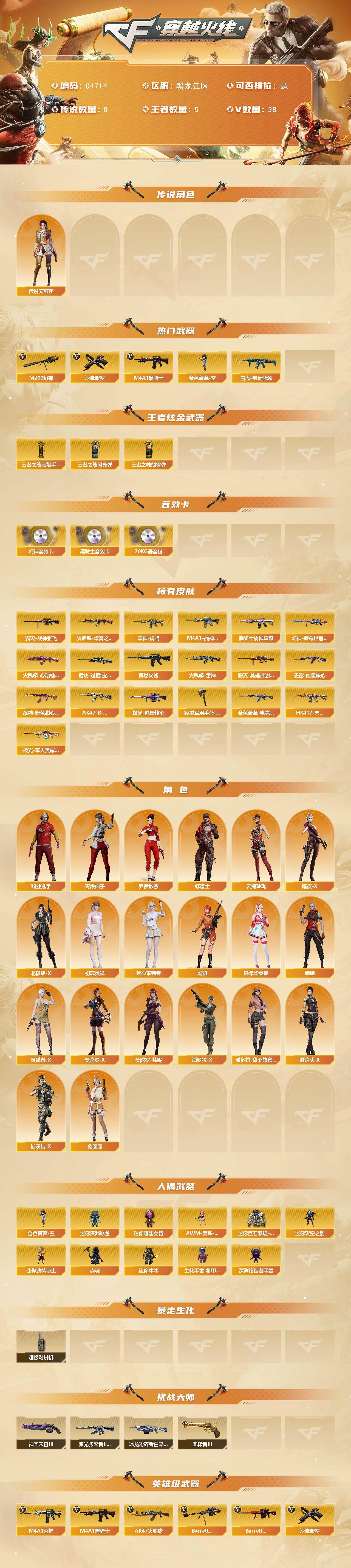 【C4714】黑龙江区-42V-5王者武器数-0炫金武器数