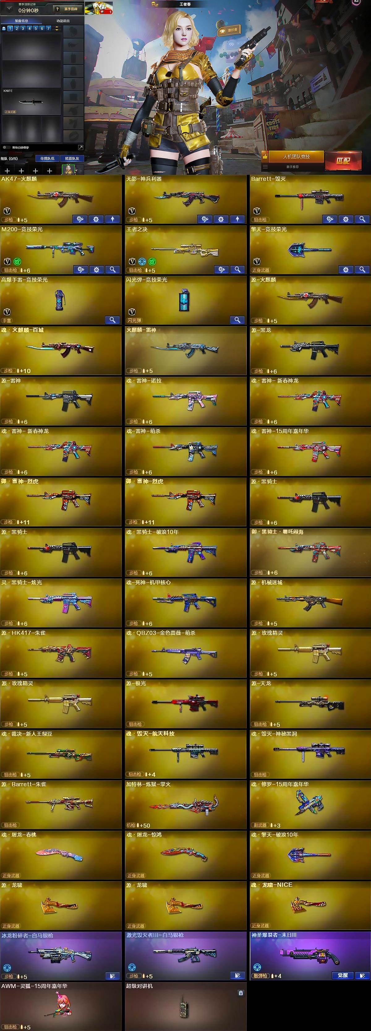 【英雄级武器】:AK47-火麒麟,无影-神兵利器,Barrett-毁灭,M200-竞技荣光