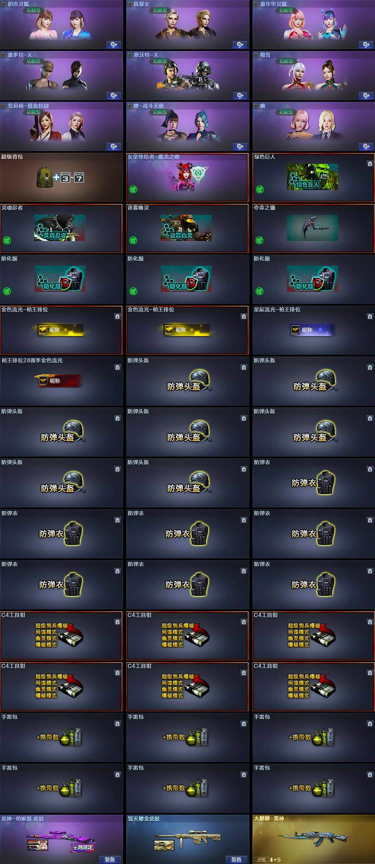 【角色】:王者春,初恋灵狐,风暴女,嘉年华灵狐,潘多拉-X,斯沃特-X,蜀雪,雪莉杨-摸金校尉,樱-战斗天使,幽