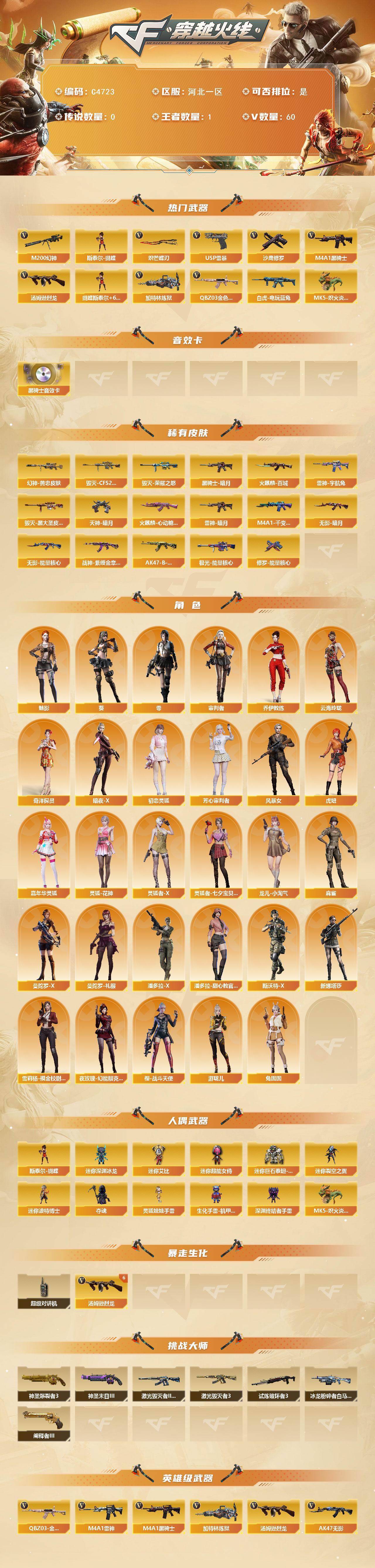 【C4723】河北一区-61V-1王者武器数-0炫金武器数