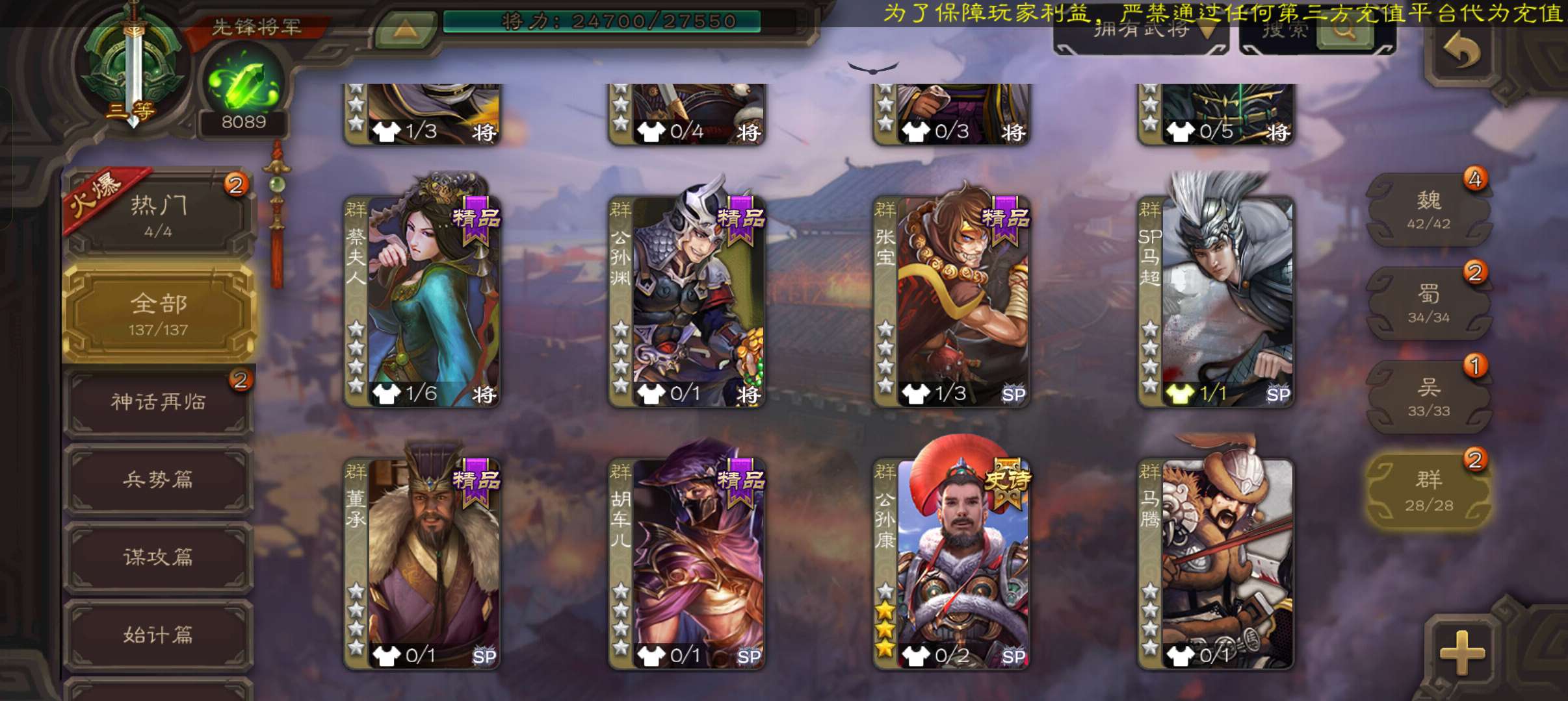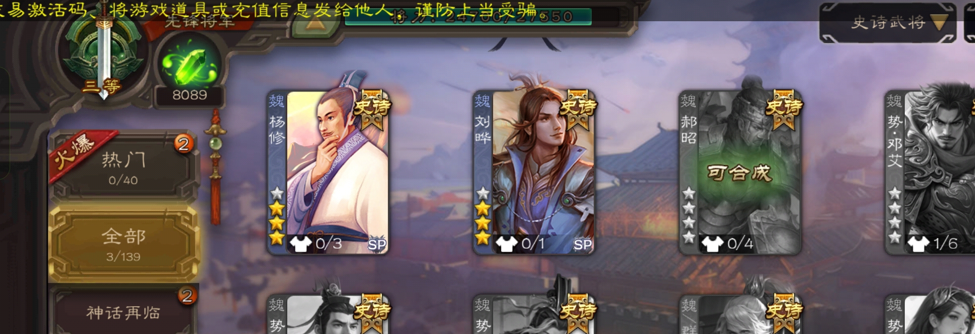 史诗武将数量: