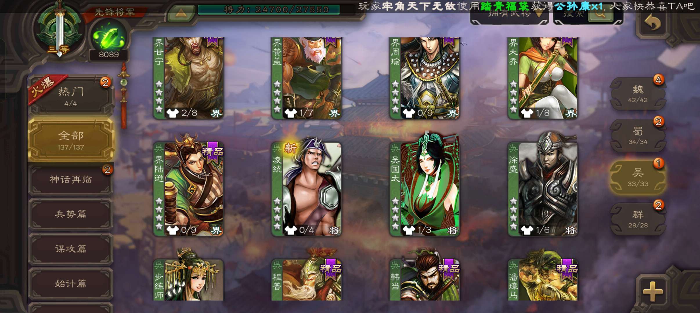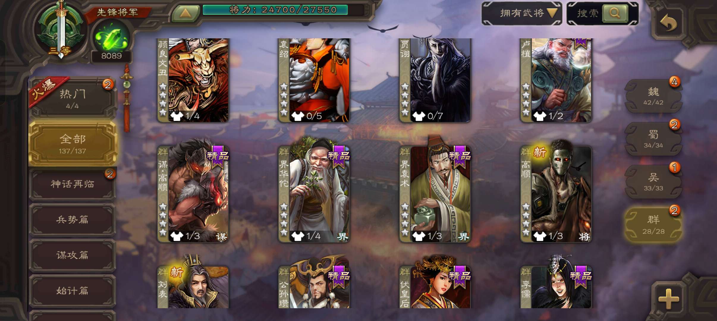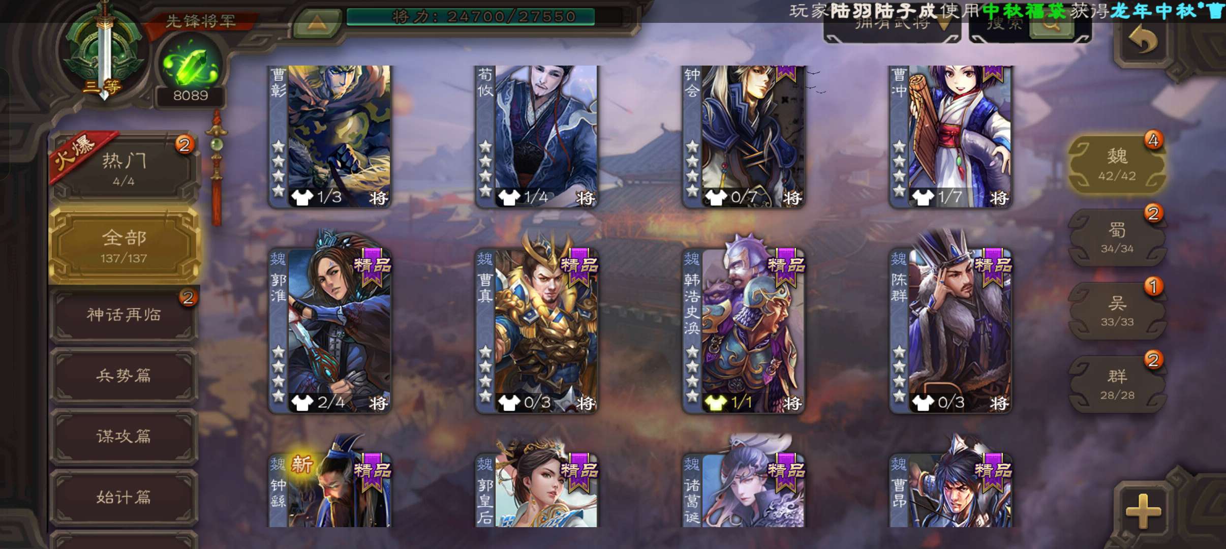 8千魂5万羽毛,刘晔公孙康杨修3史诗先锋,甘夫人谋高顺崔琰界荀彧张布137将