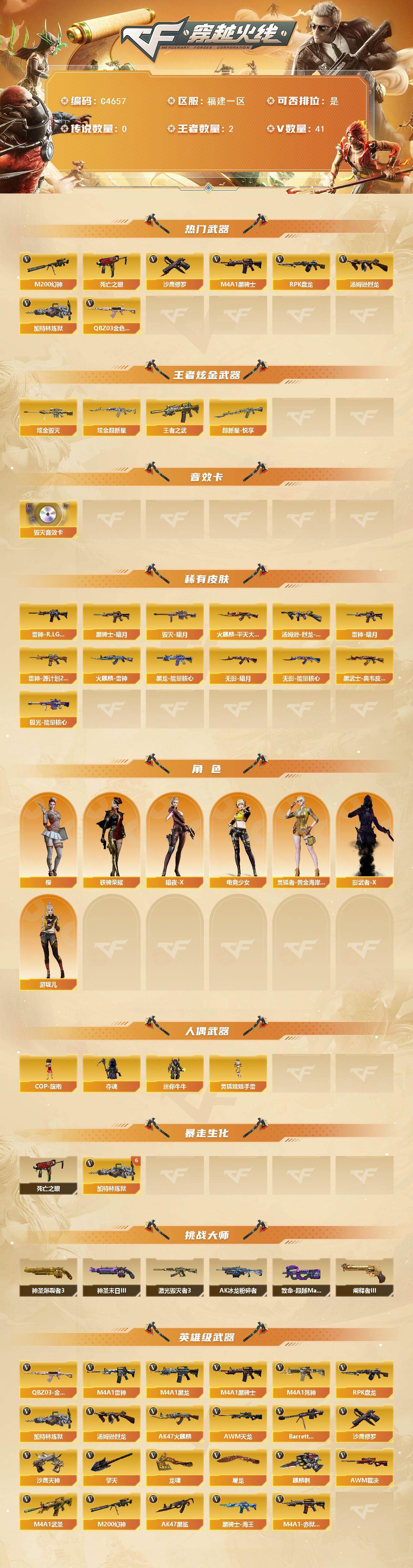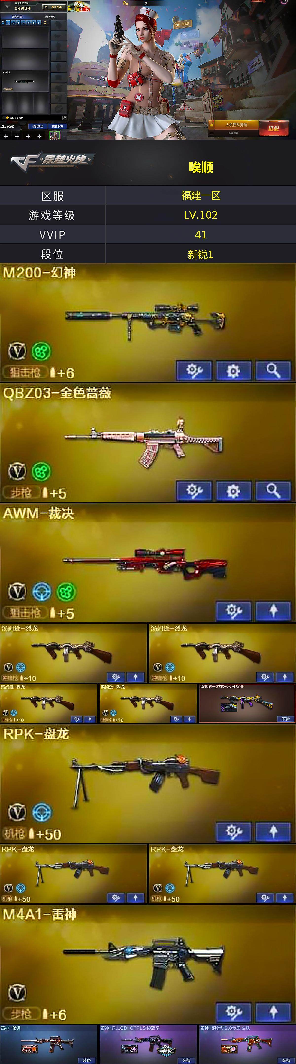 【C4657】福建一区-41V-2王者武器数-3炫金武器数