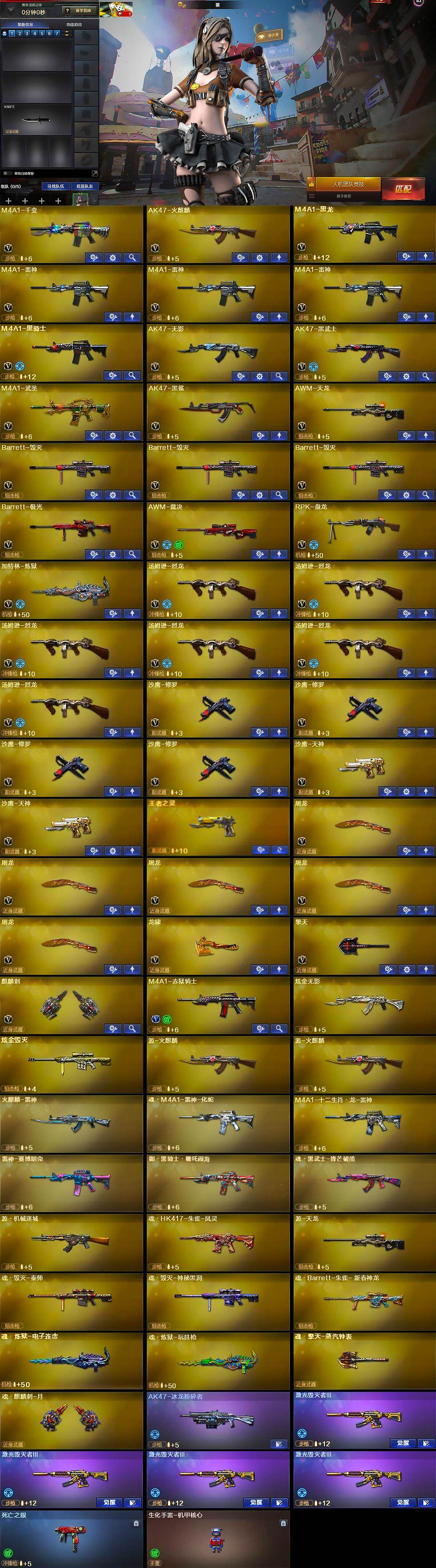 【热门武器】:死亡之眼,M4A1-黑骑士,汤姆逊-烈龙*6,RPK-盘龙,加特林-炼狱,沙鹰-修罗*4