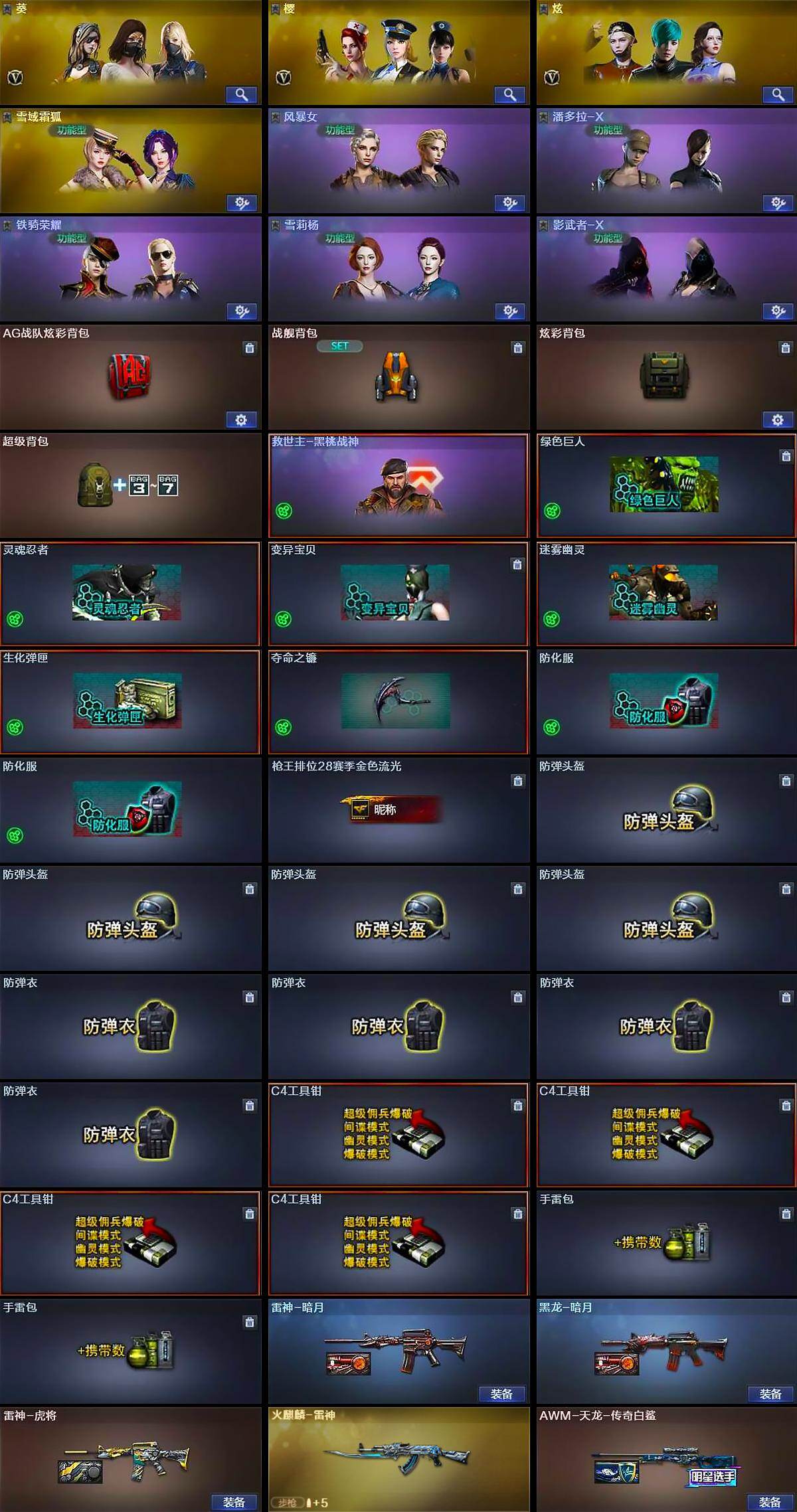 【角色】:葵,樱,炫,雪域霜狐,风暴女,兰-新年限定,潘多拉-X,铁骑荣耀,雪莉杨,影武者-X
