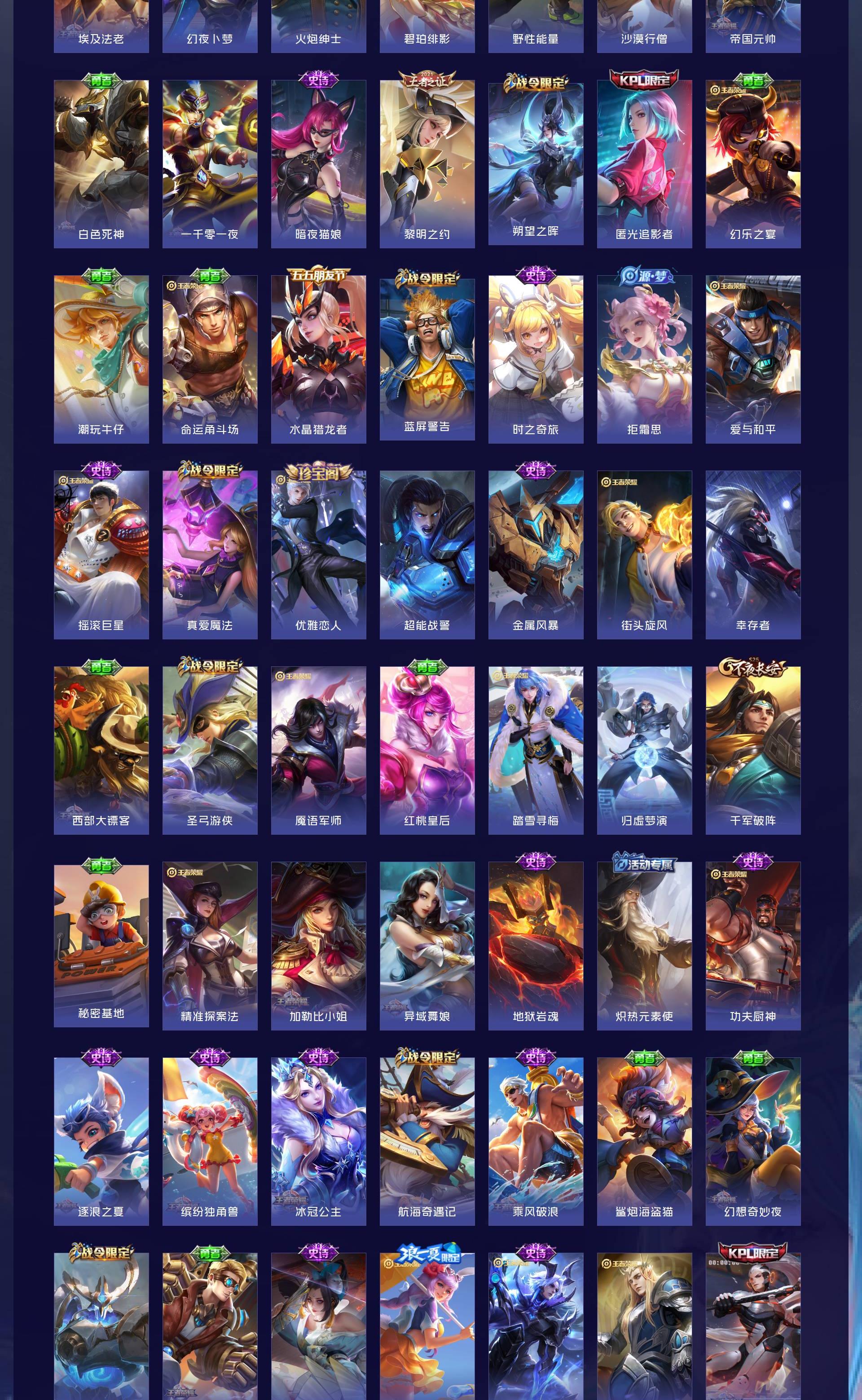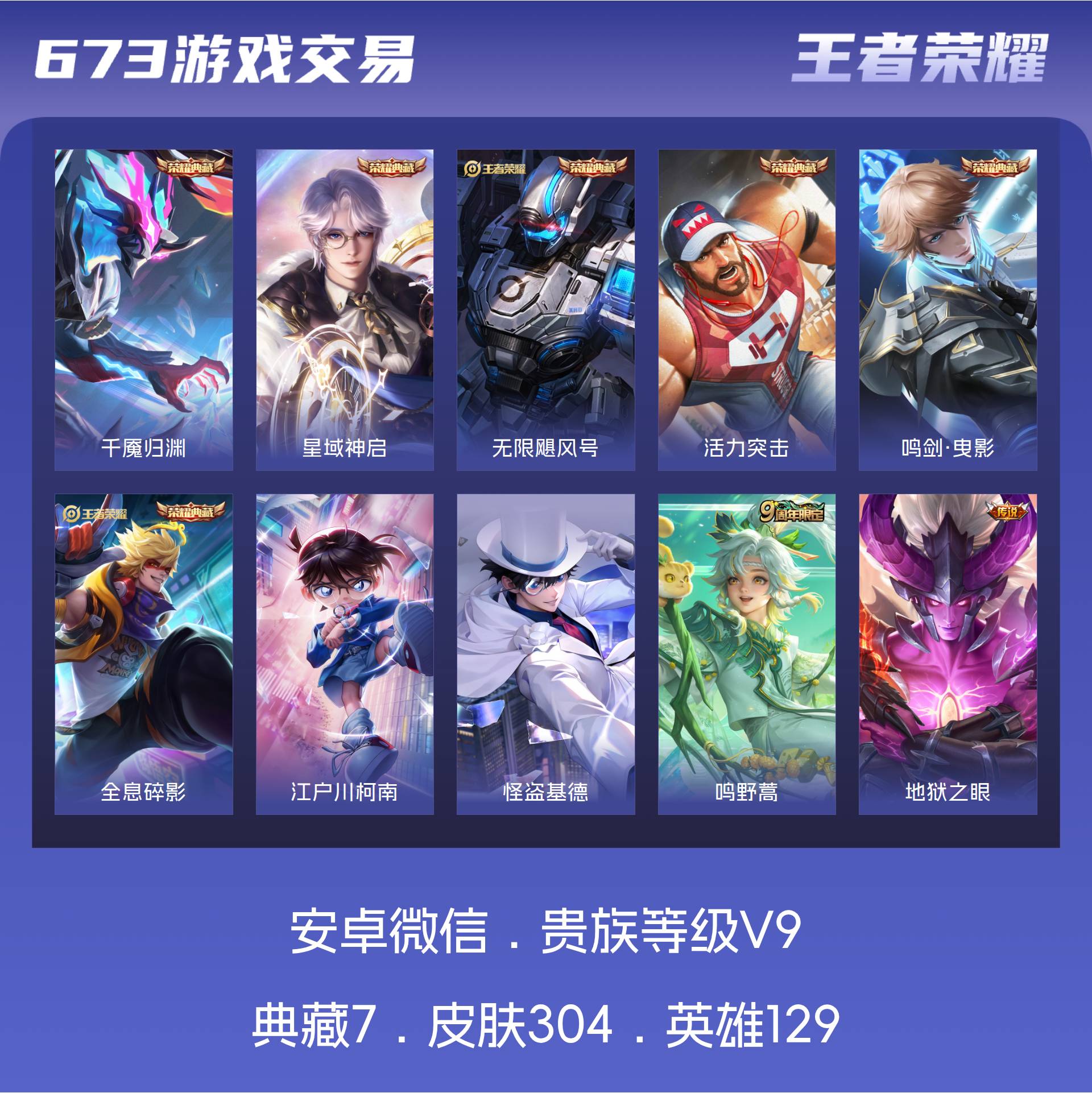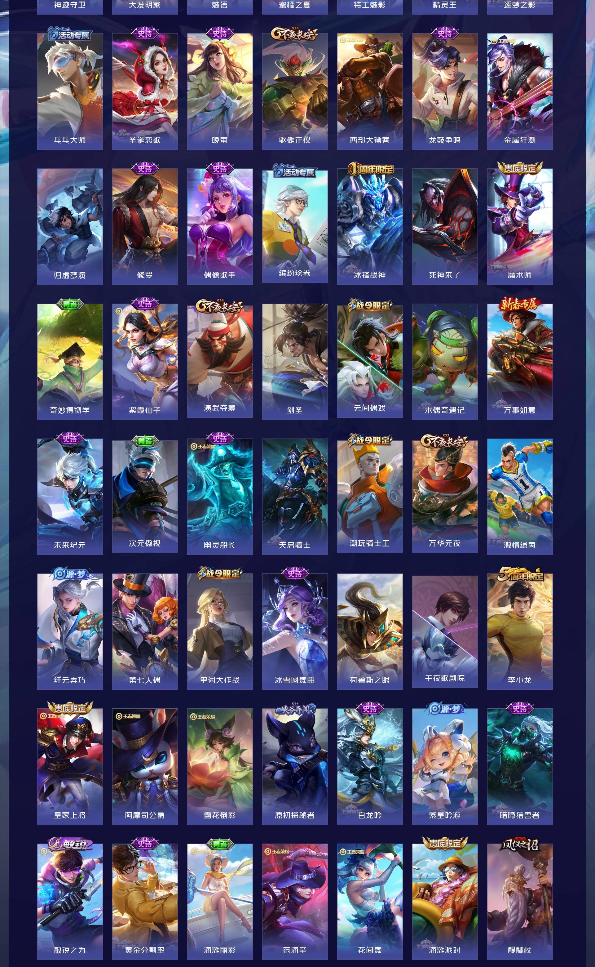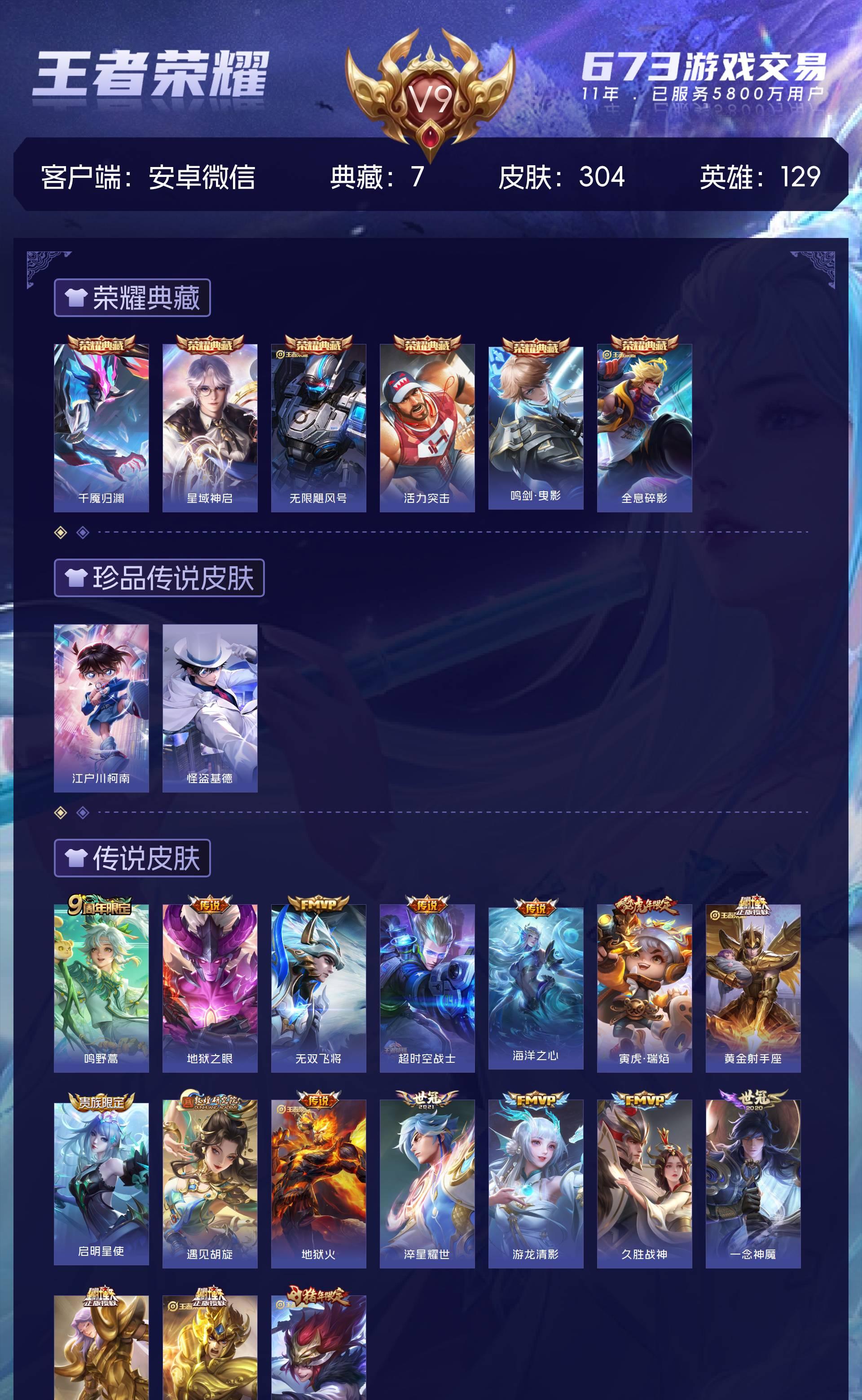 V9 皮肤304 英雄129 尊贵铂金 荣耀典藏7 珍品传说2 传说17 其他皮肤284