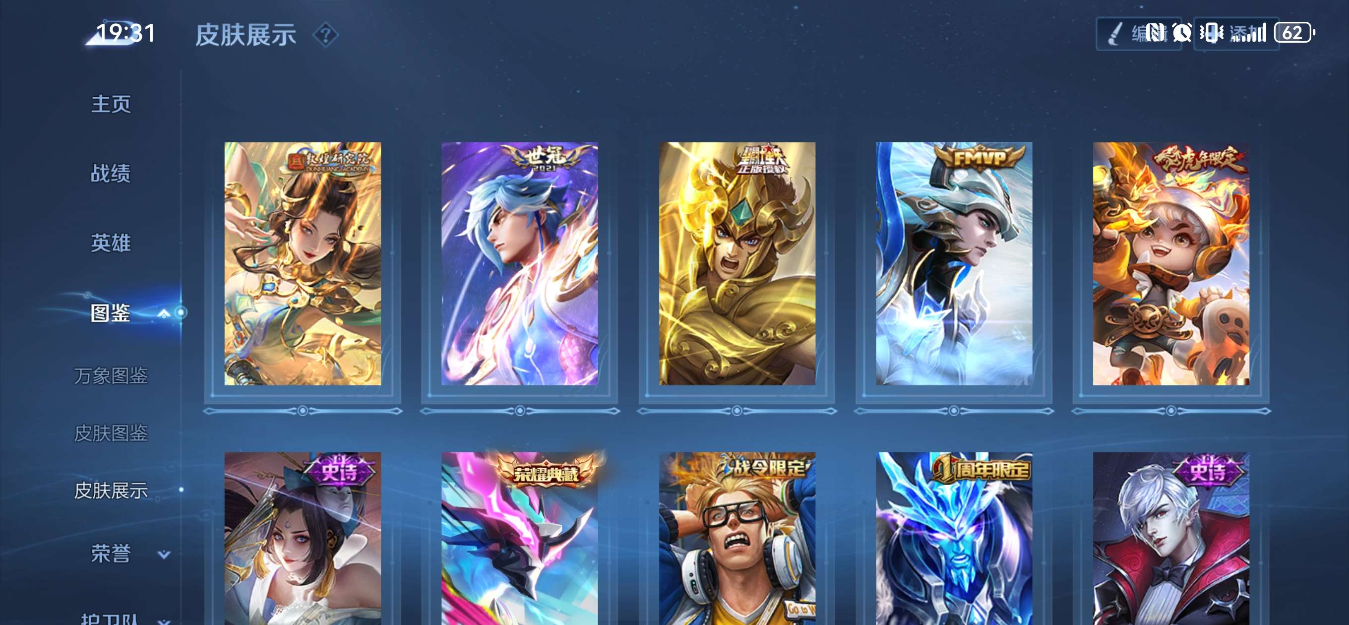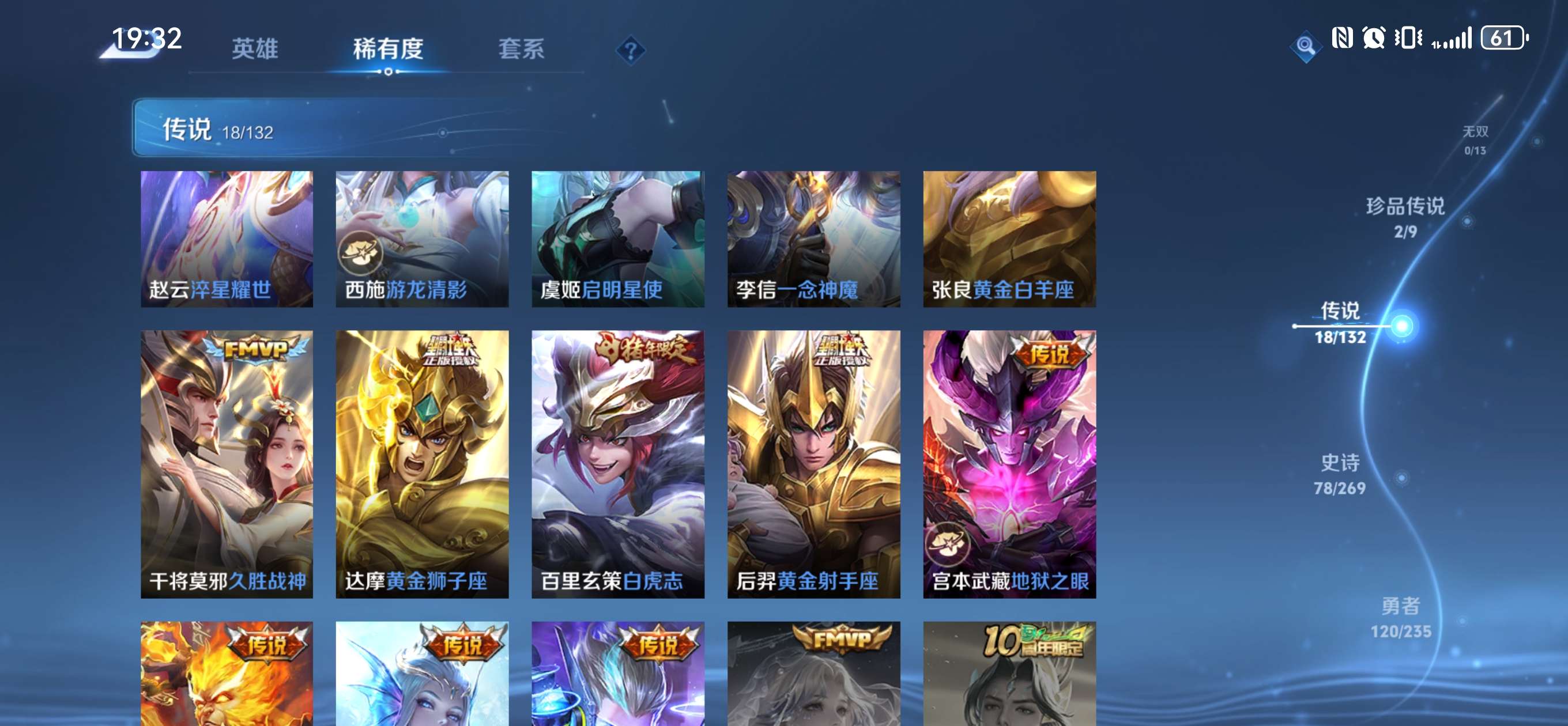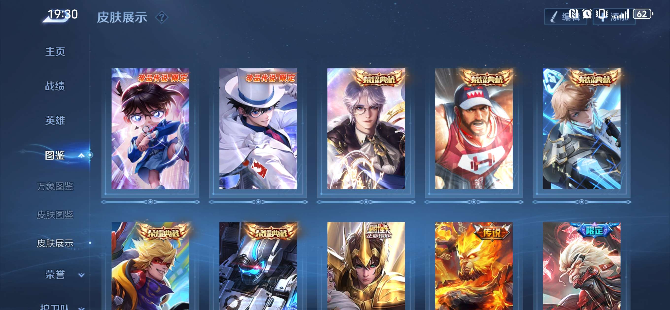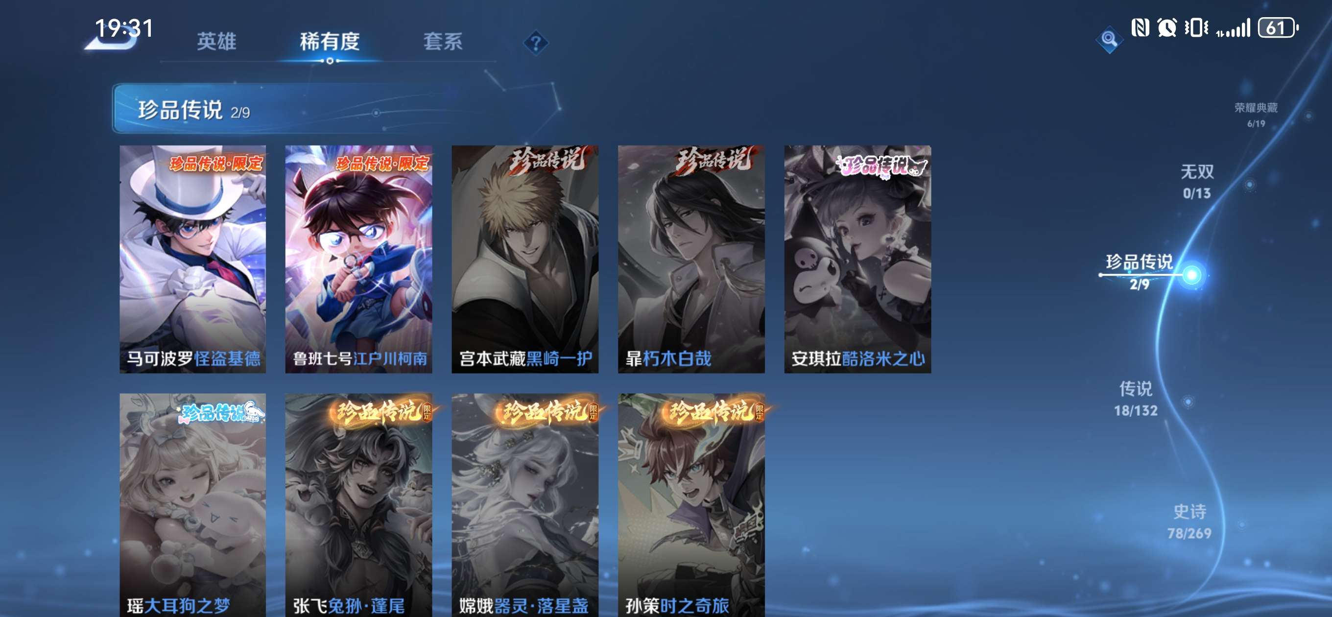 V9 皮肤304 英雄129 尊贵铂金 荣耀典藏7 珍品传说2 传说17 其他皮肤284