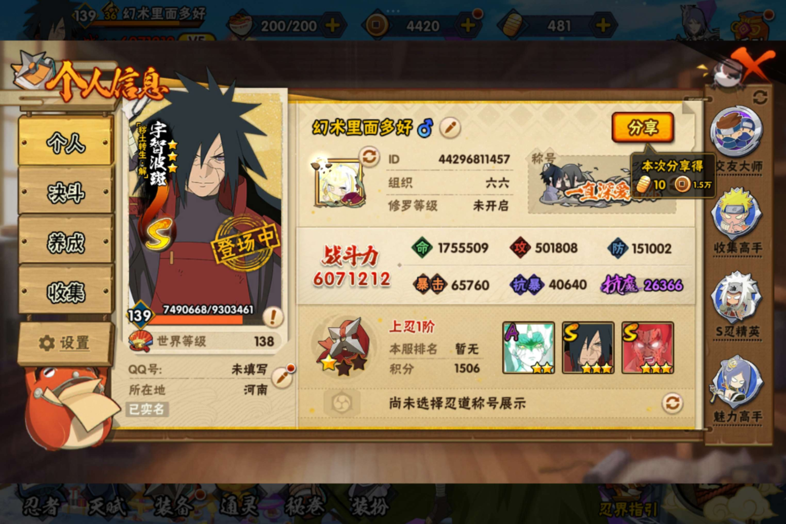 安卓QQ-新手入坑免肝免氪成品号-本期忍法帖已购-S忍者数