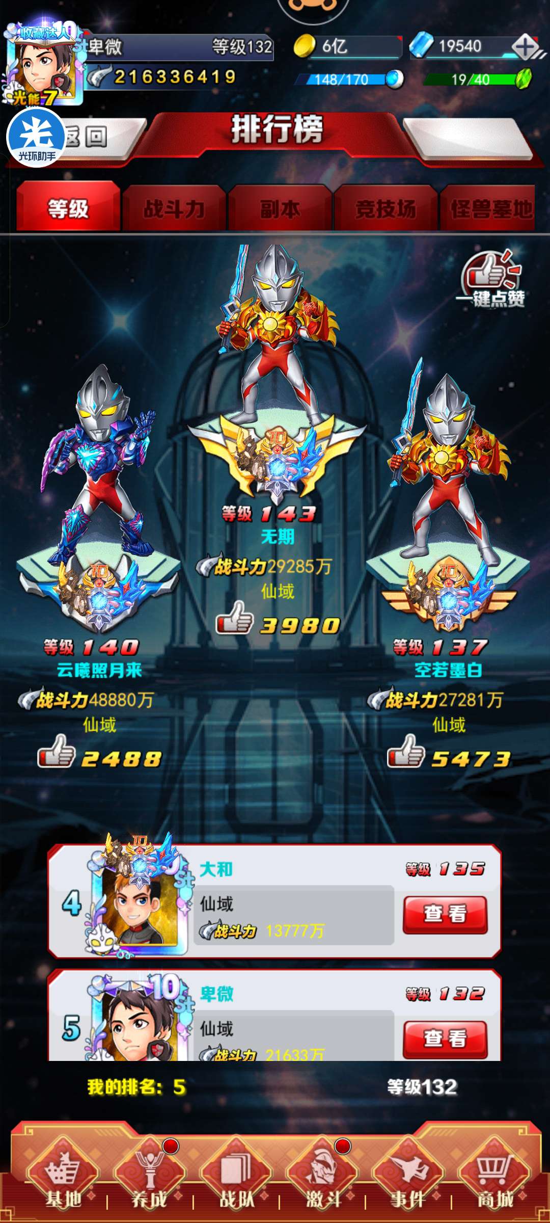 等级榜第五,战力榜第七,毕业日亚,终身卡以买,大月卡已买,2万光源,三个奥特魔方,还有22了都