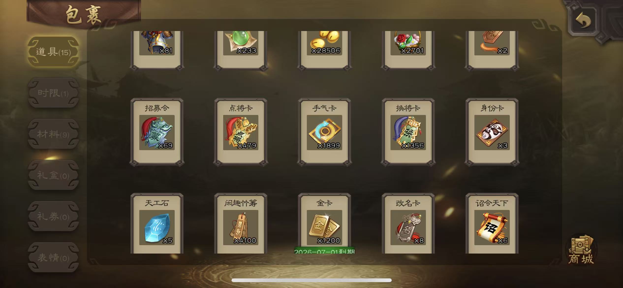 百夫长70宝珠4400将魂4.3万羽毛69招募令三卡