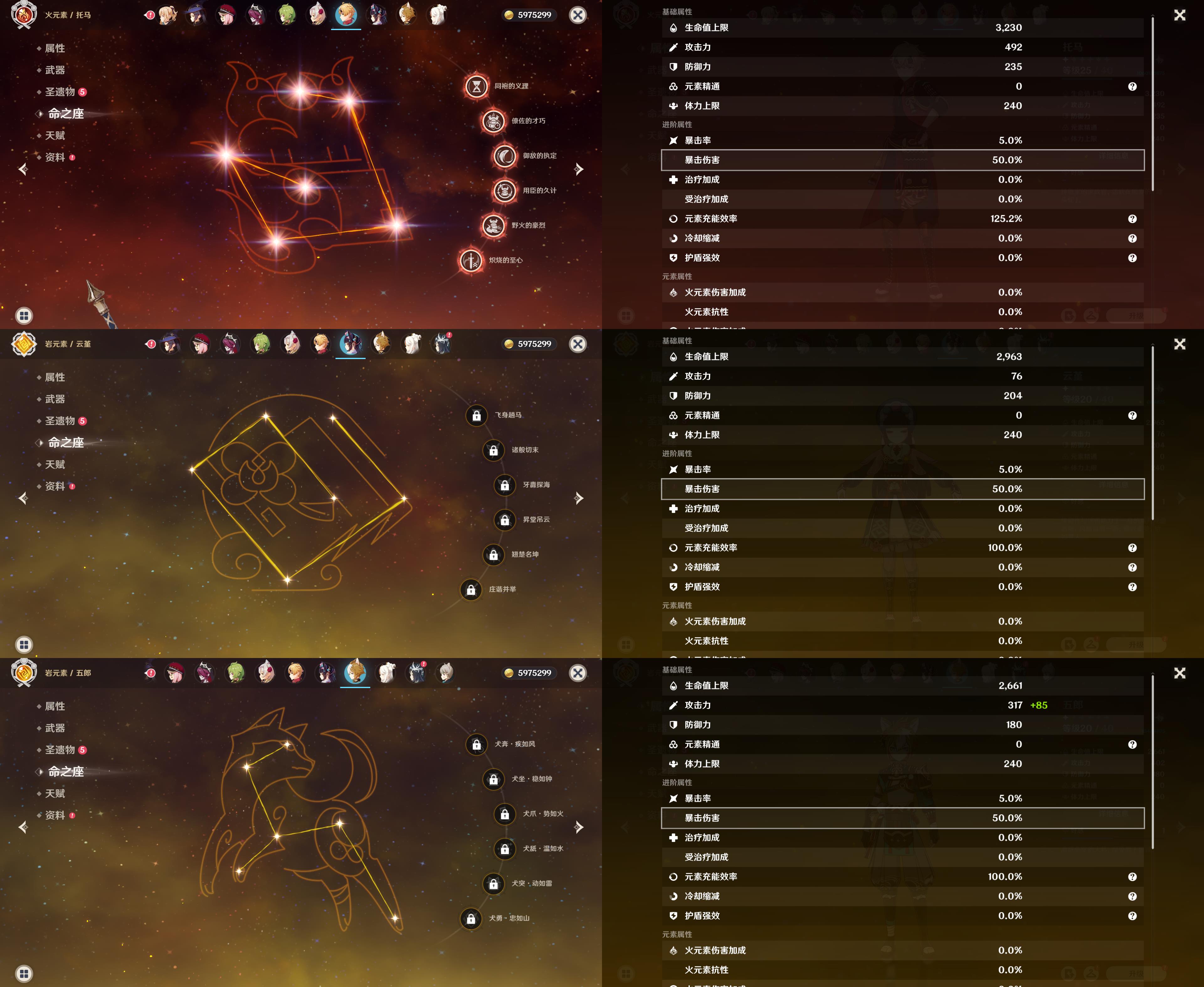 五星角色: