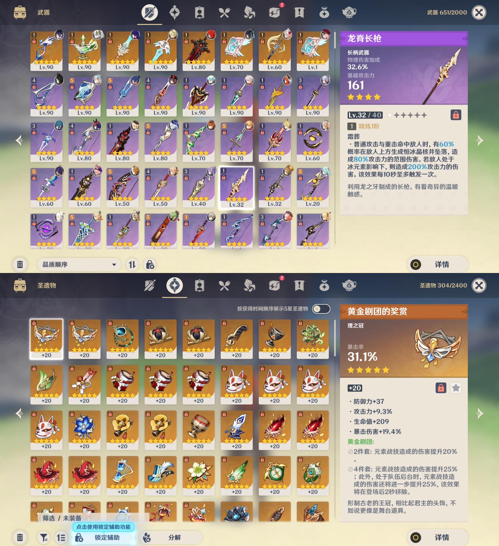 58级/30黄/女主/17个五星角色/8个五星武器/4命迪卢克