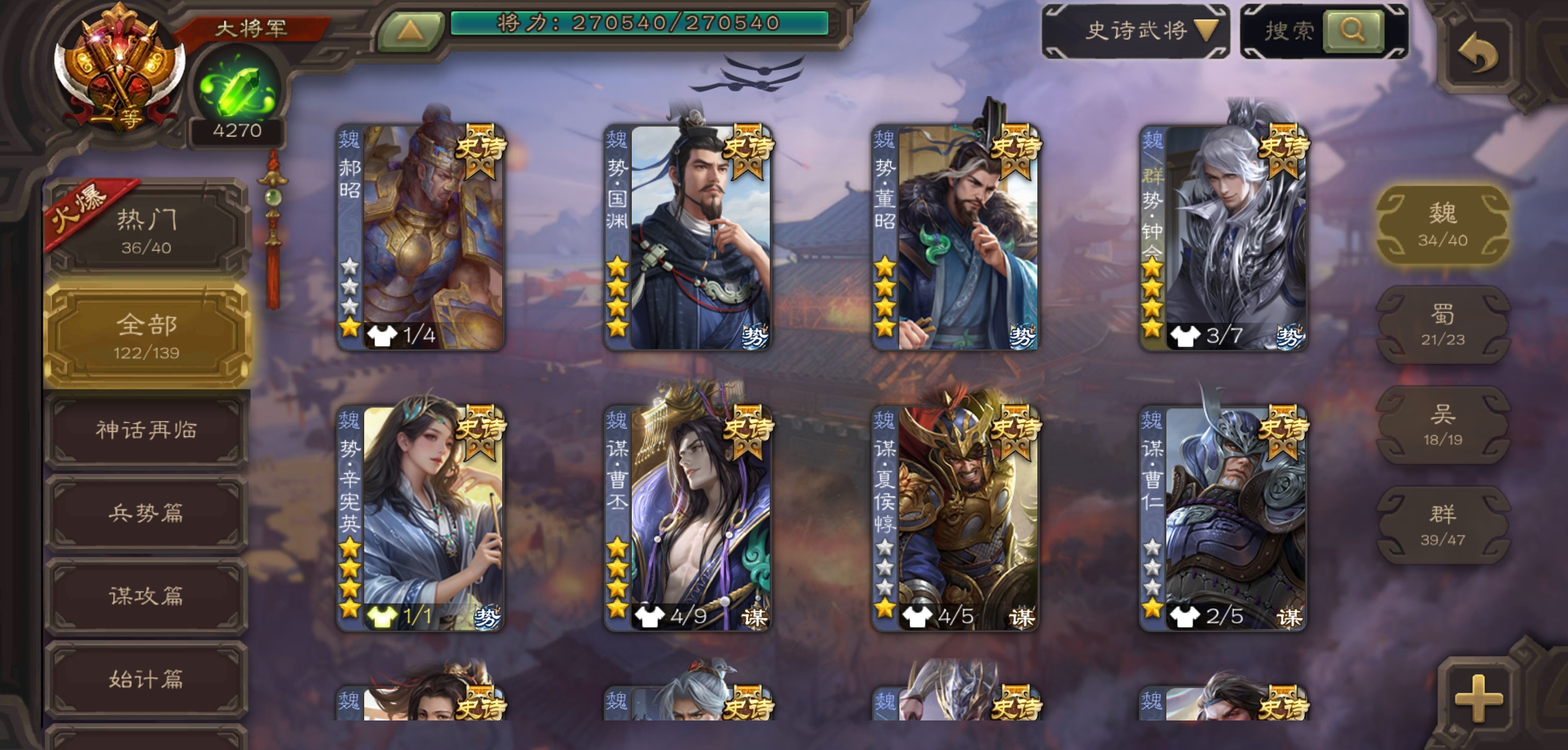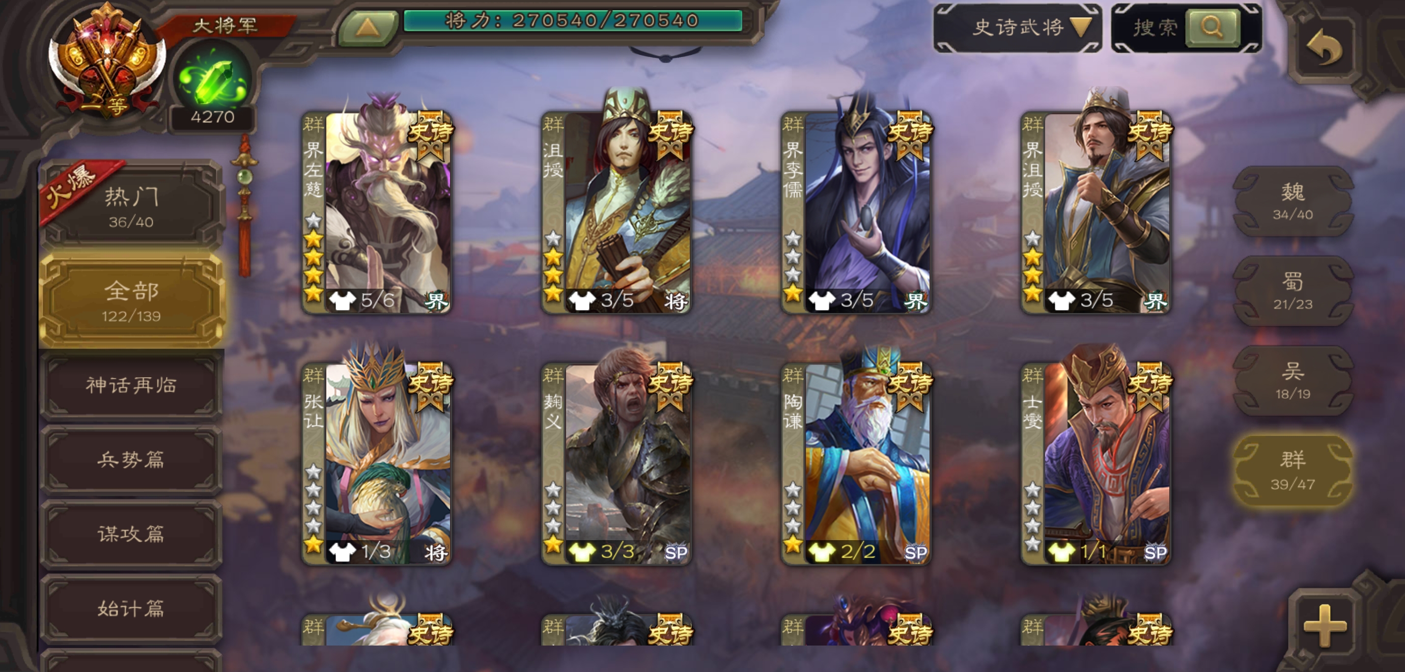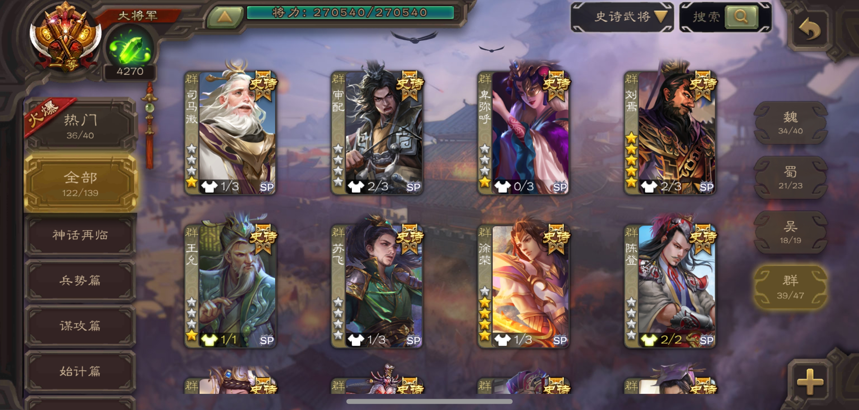 史诗武将数量: