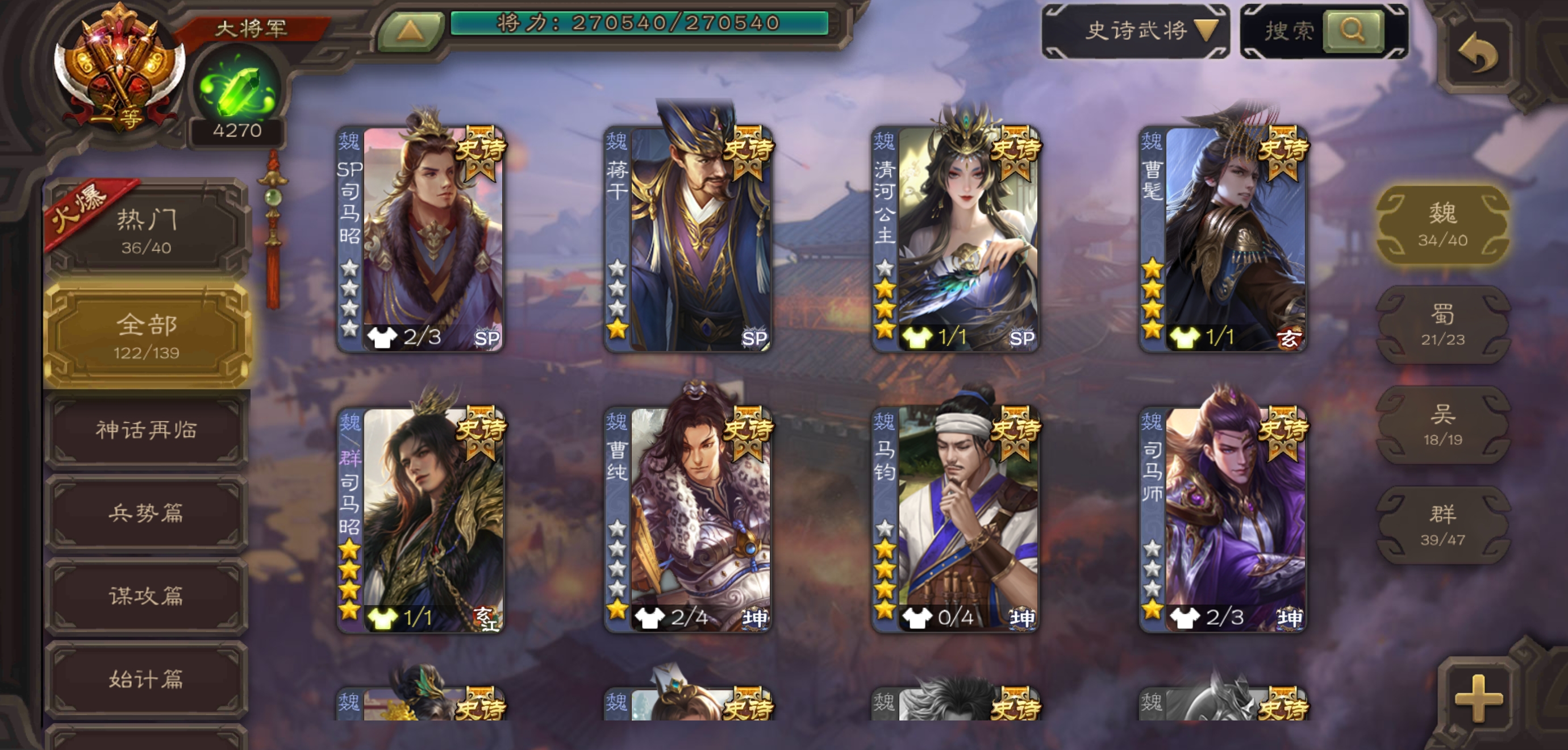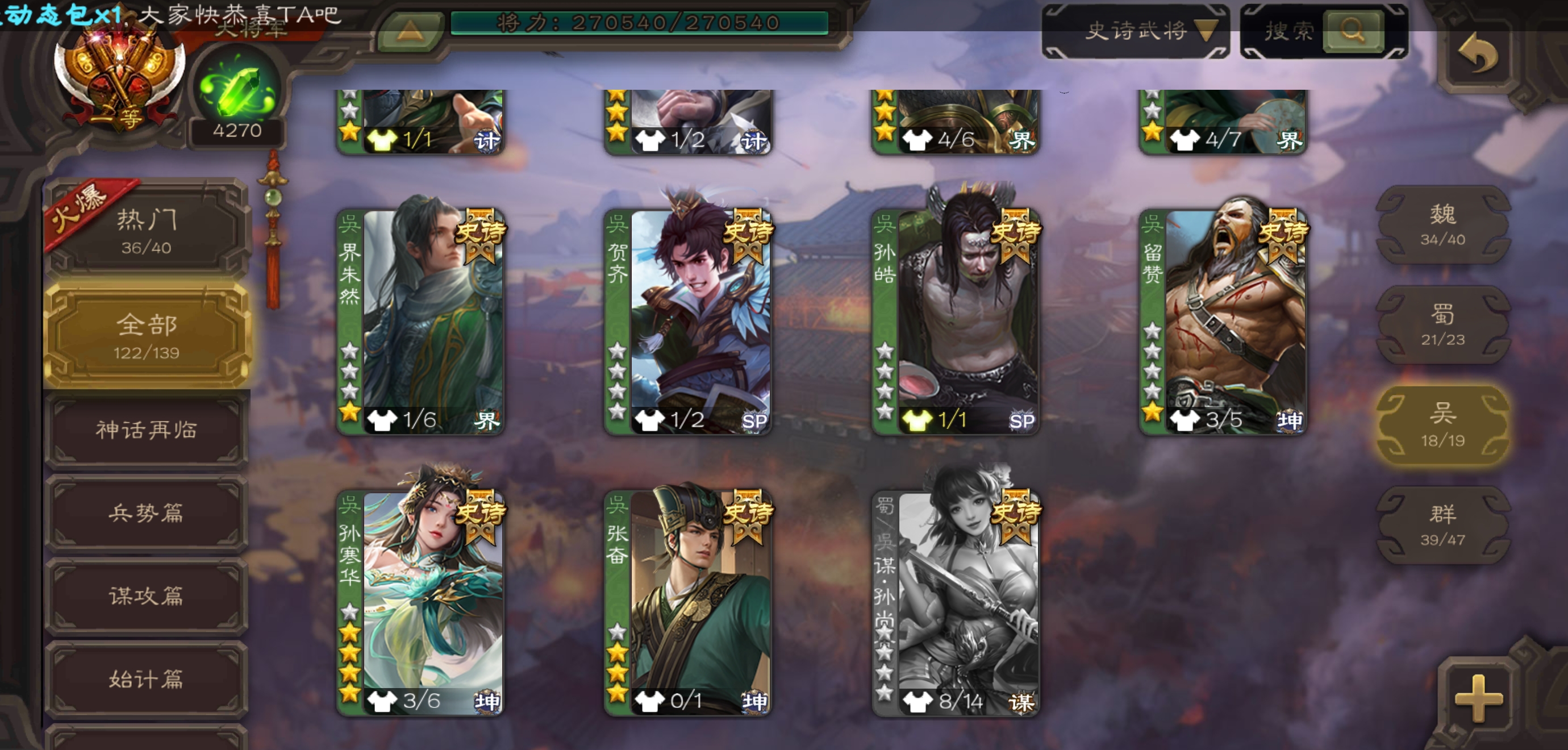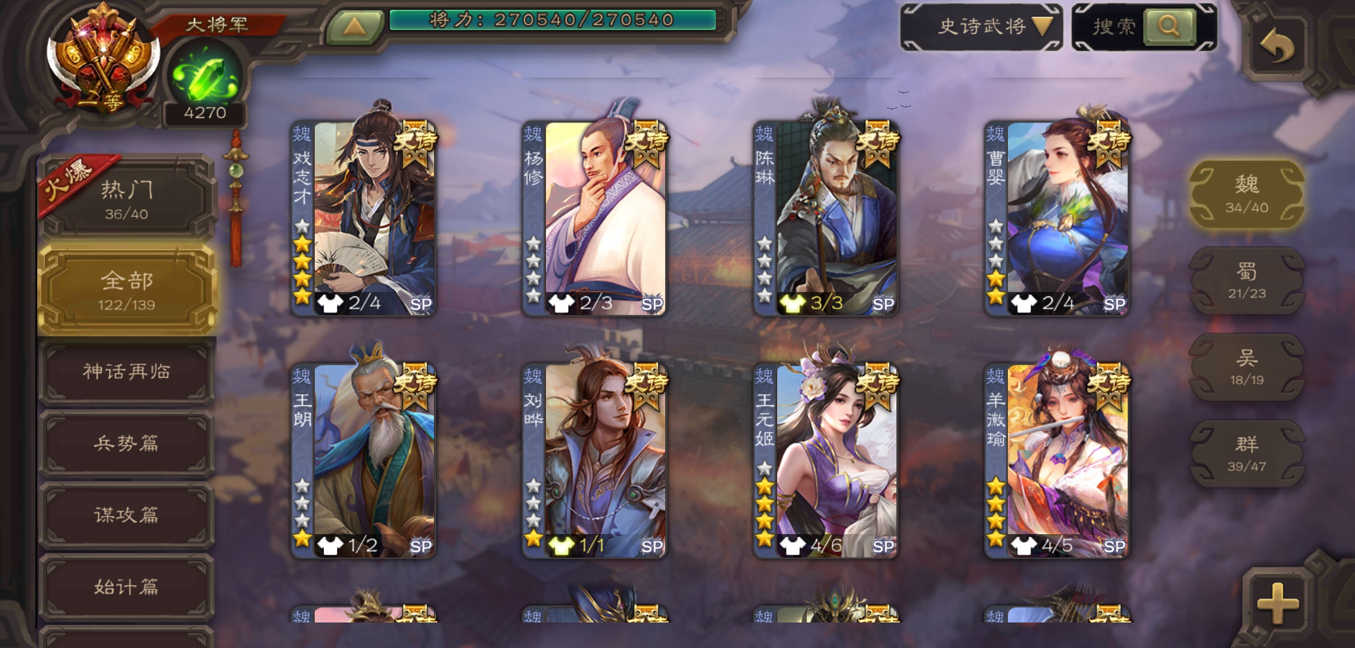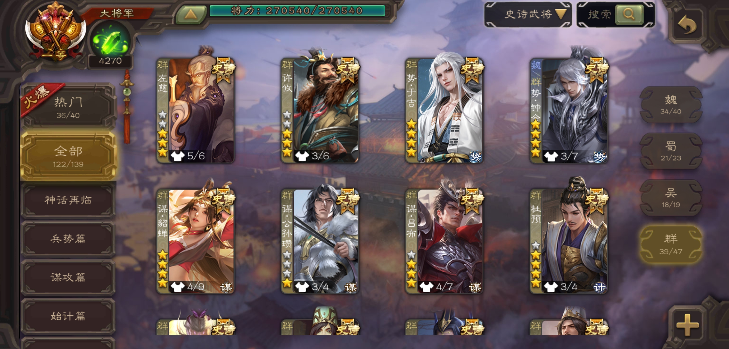 史诗武将数量: