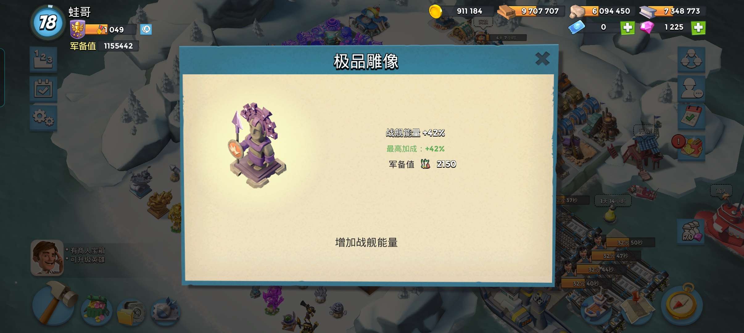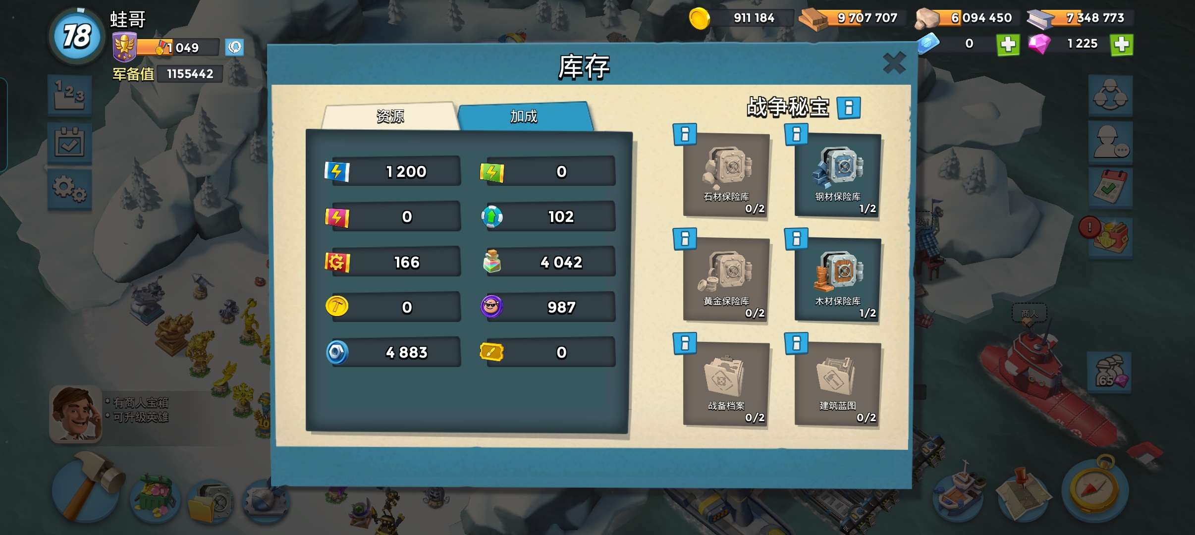海岛奇兵,国服,q区,78级,满雕42能32攻35血50掠夺,4000现药,满雕刻,免钻改名一手号