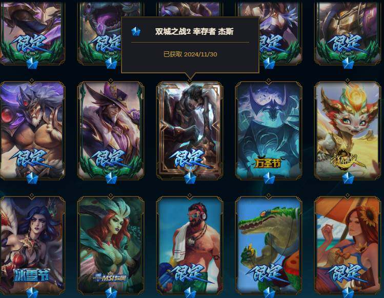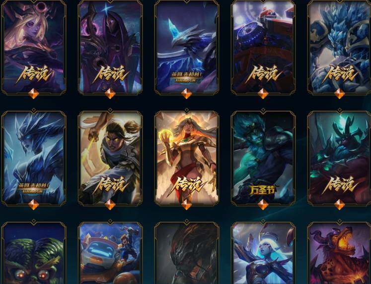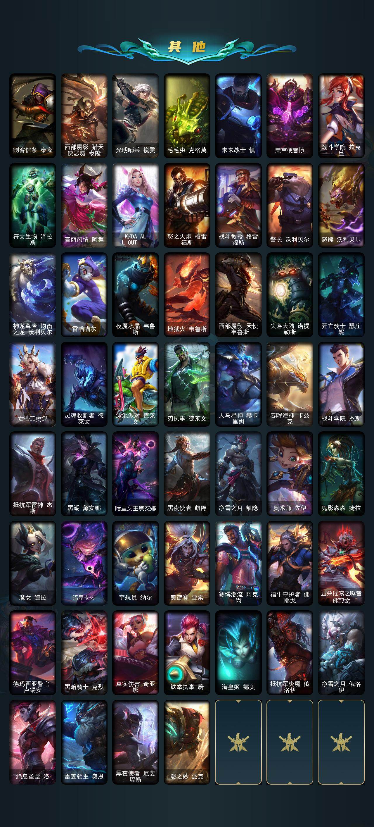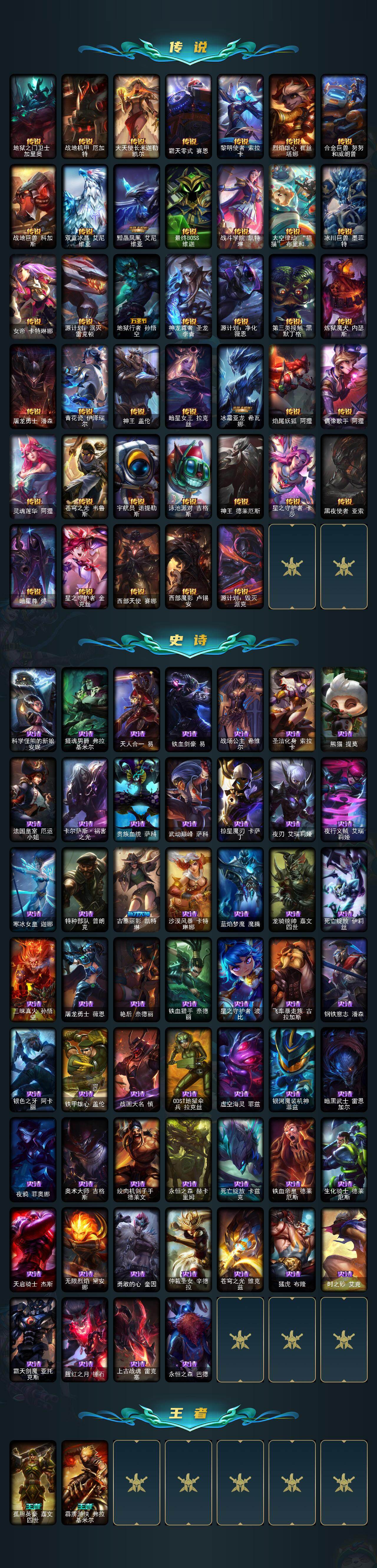 172英雄/300皮肤/1终极/12神话/40限定/8臻彩/132炫彩/40传说/53史诗