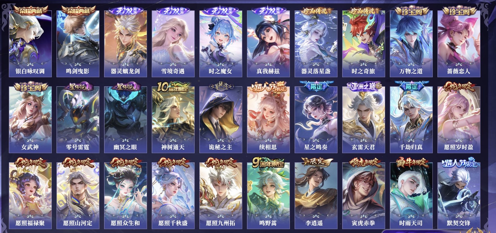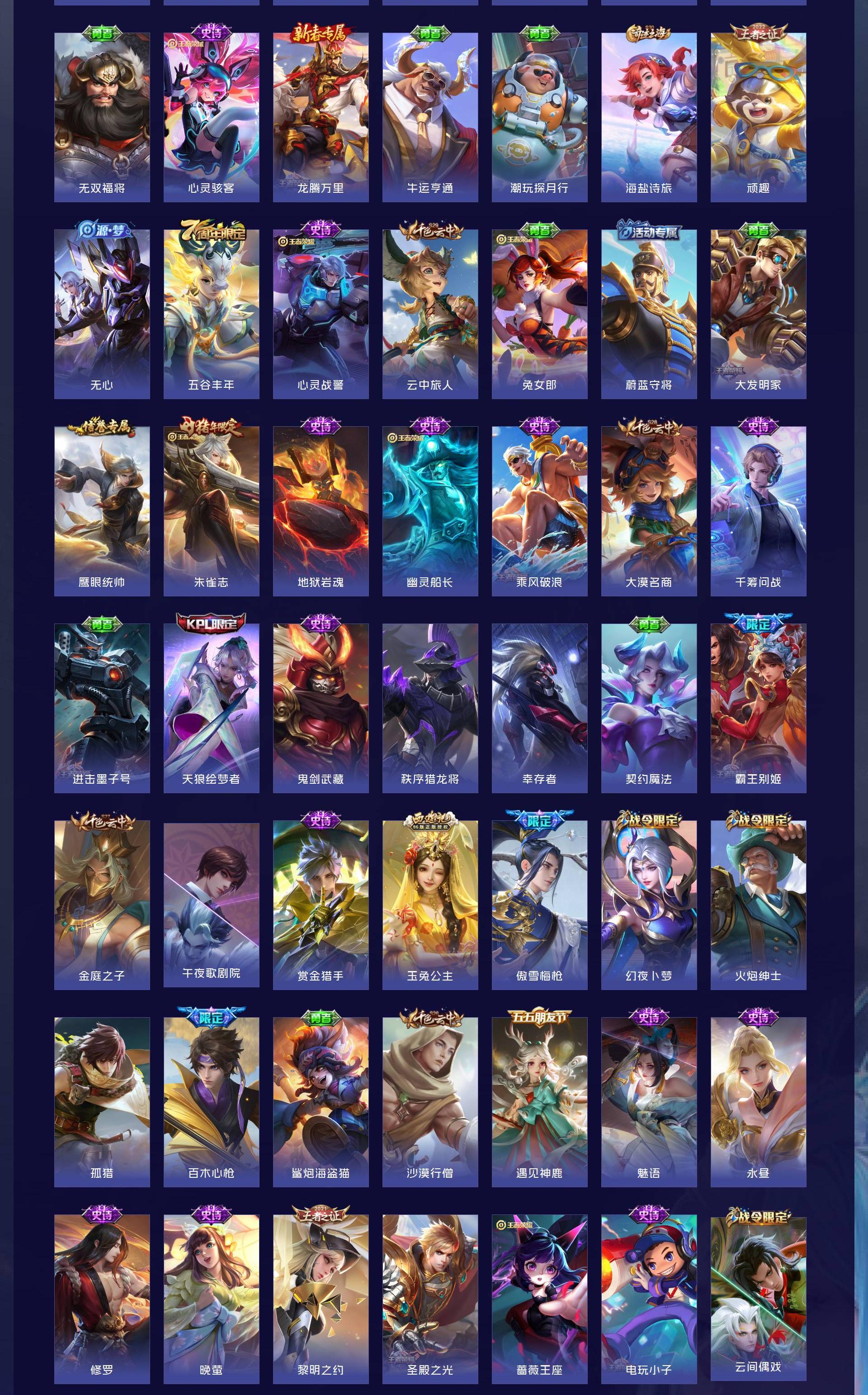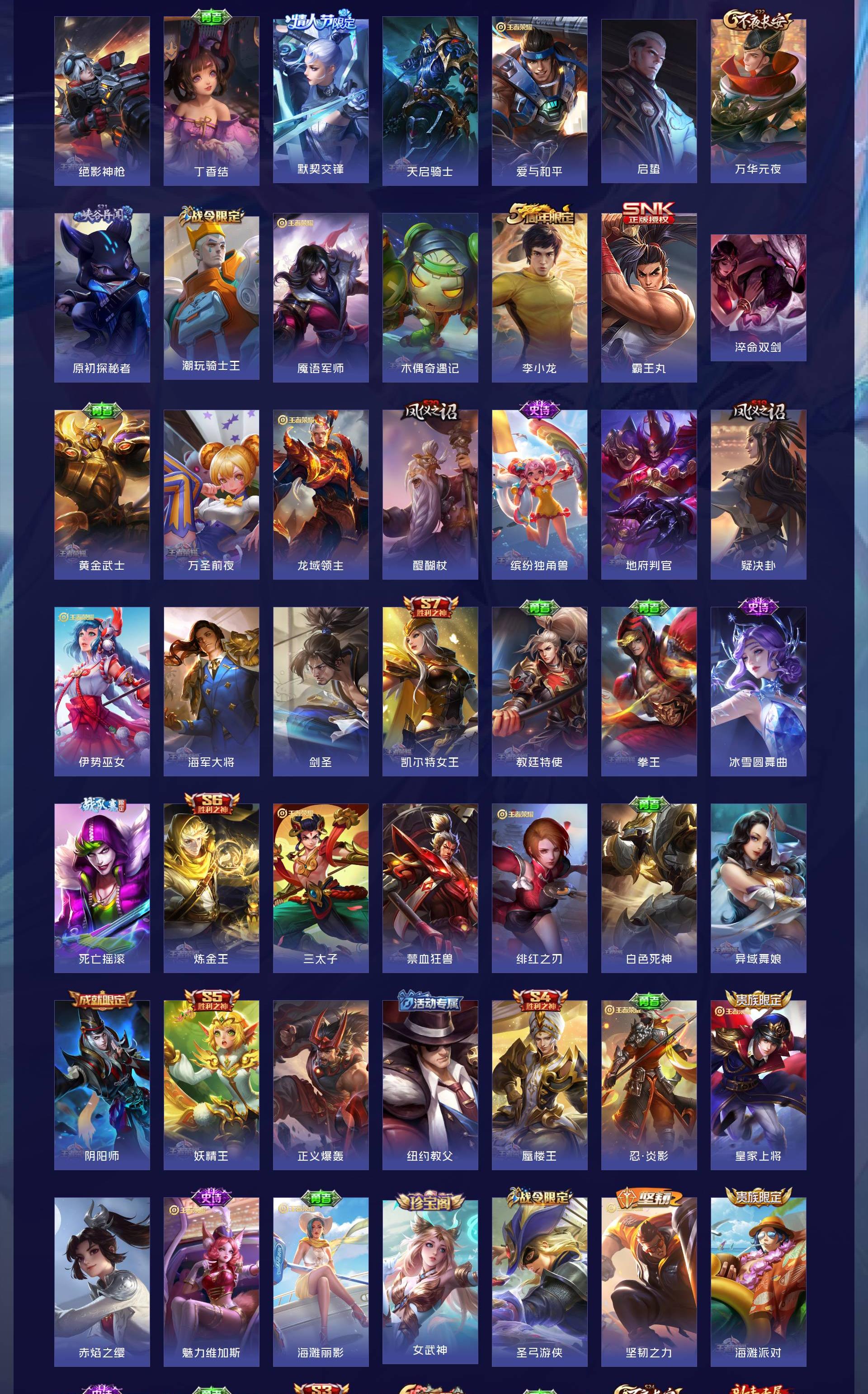 V9 皮肤292 英雄128 荣耀黄金 荣耀典藏2 无双皮肤4 珍品传说2 星传说2 传说27 其他皮肤263