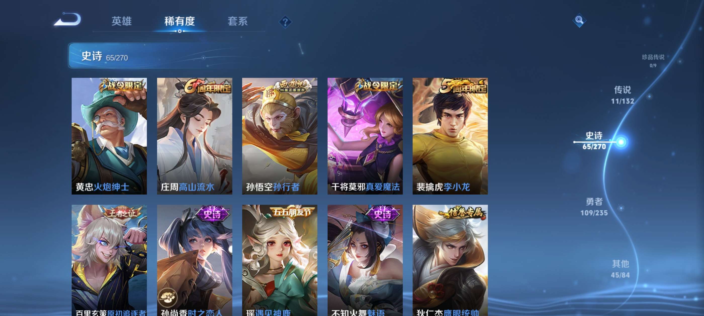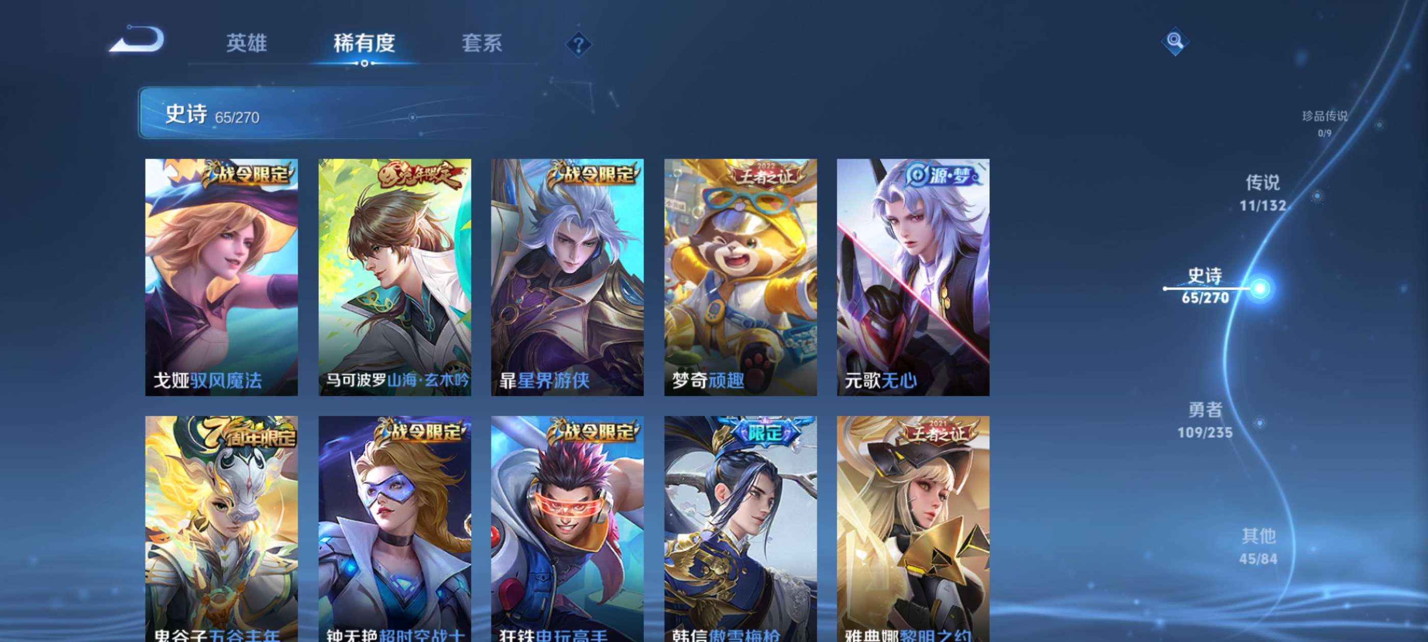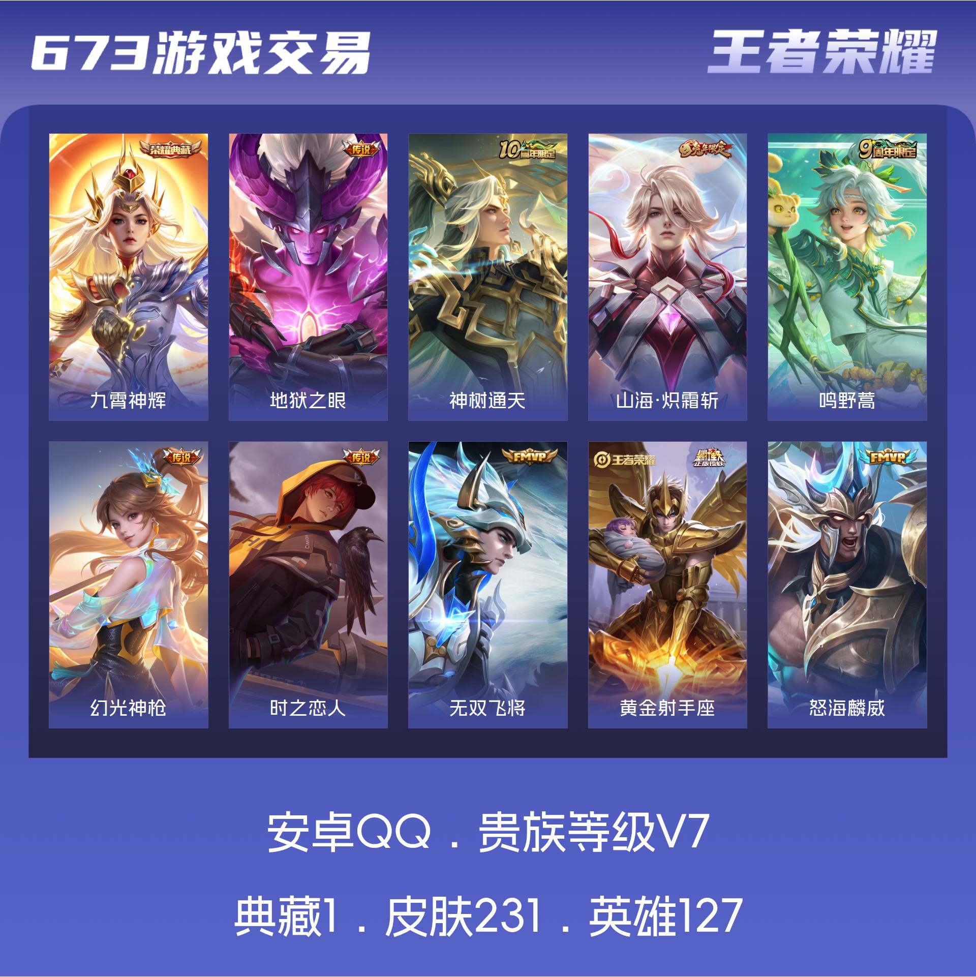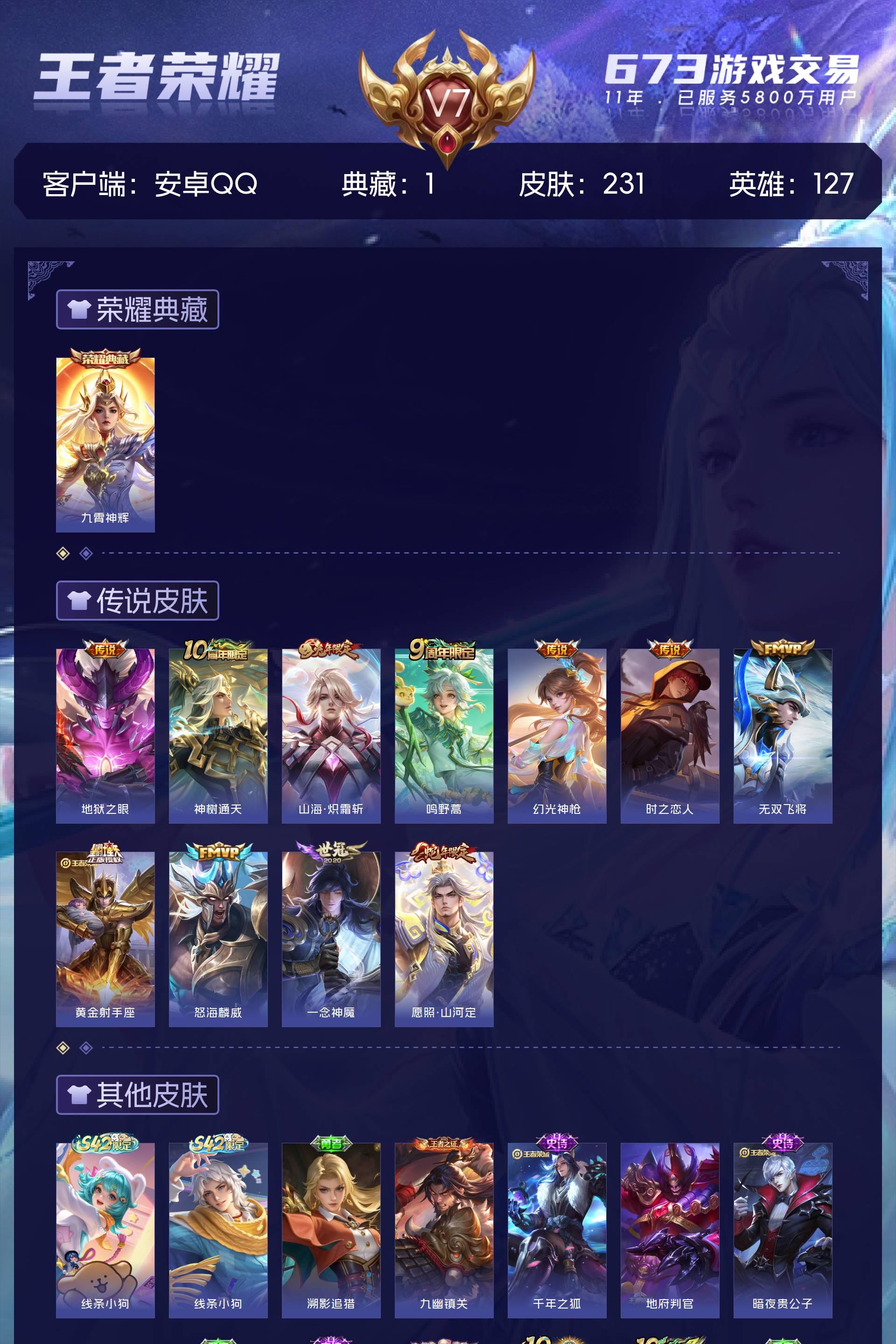 V7 皮肤231 英雄127 绝世王者 荣耀典藏1 传说11 其他皮肤225