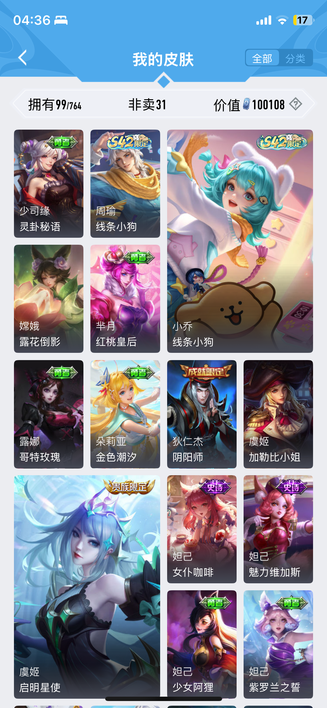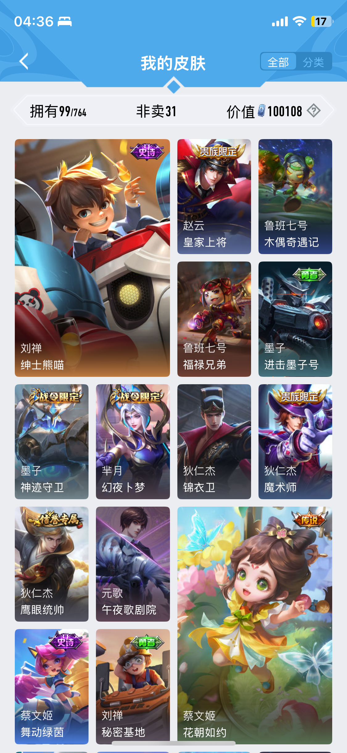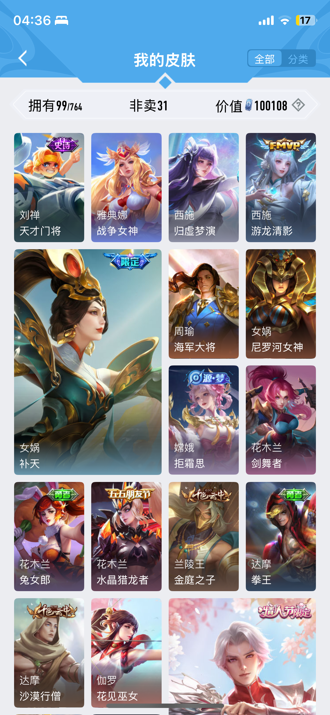 V8 皮肤99 英雄77 荣耀黄金 荣耀典藏1 传说11 其他皮肤89