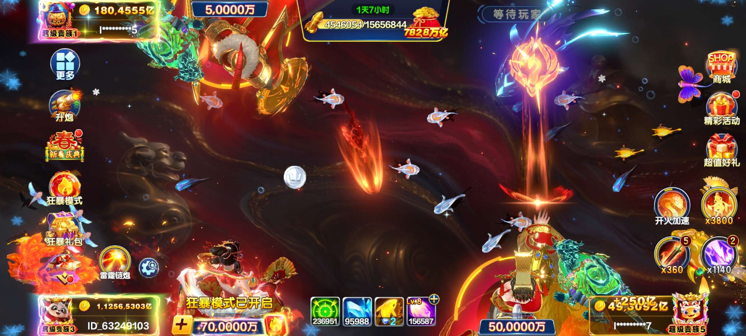 捕鱼大咖s3,1.1京纯玩4388,买断6888,自己看图,加成高,本月充值3万,至尊副炮