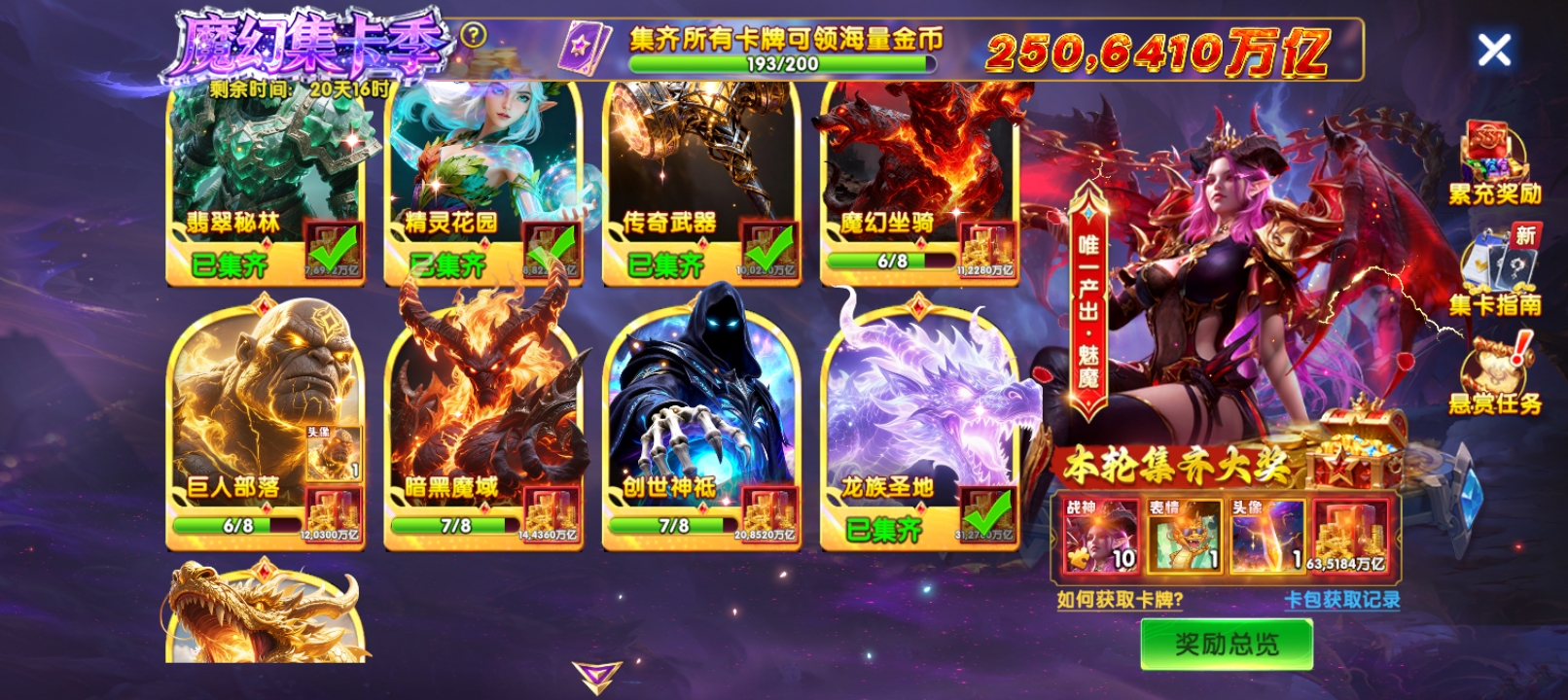 华为14套10万成就高爆发号加成1500圣器炮台巅峰全满级3级大天使魅魔差7个马上就出来了