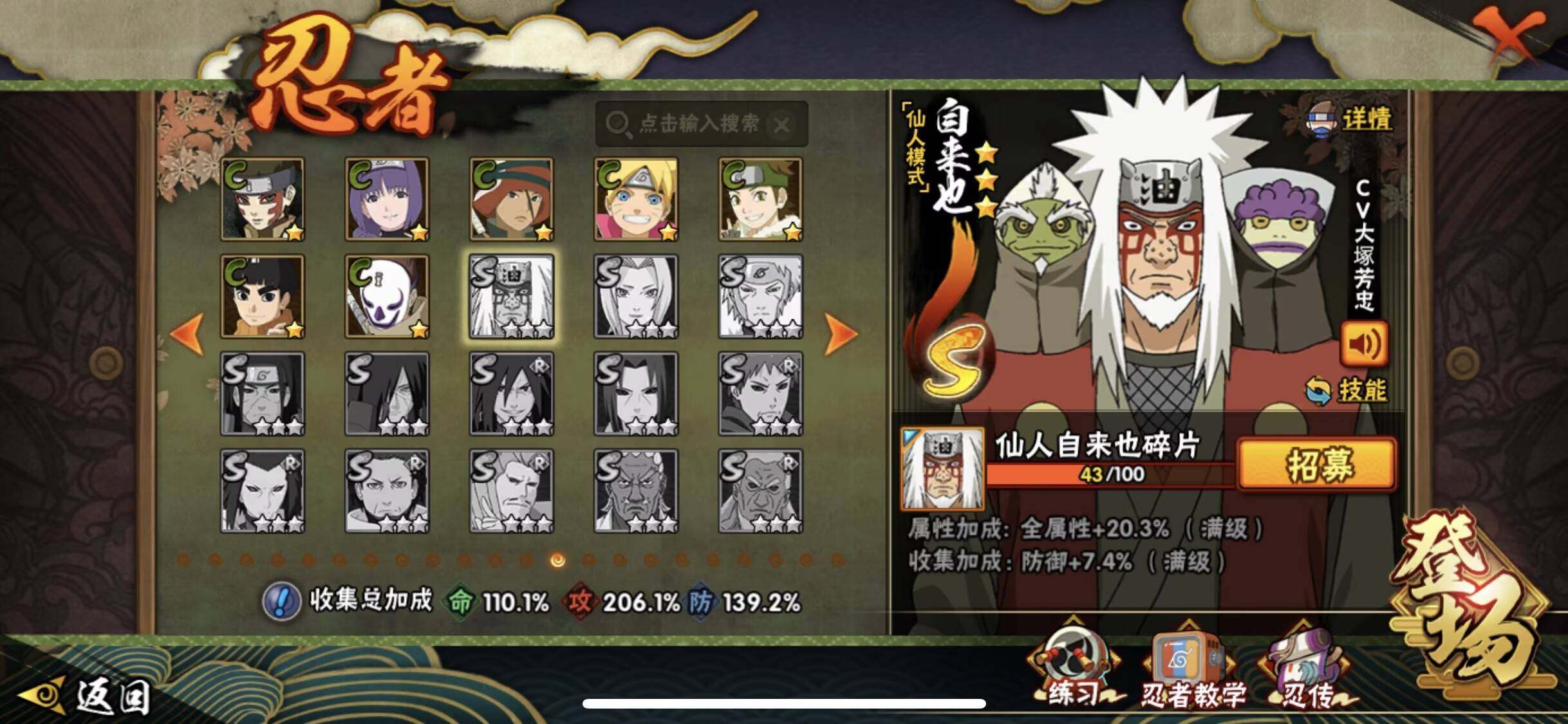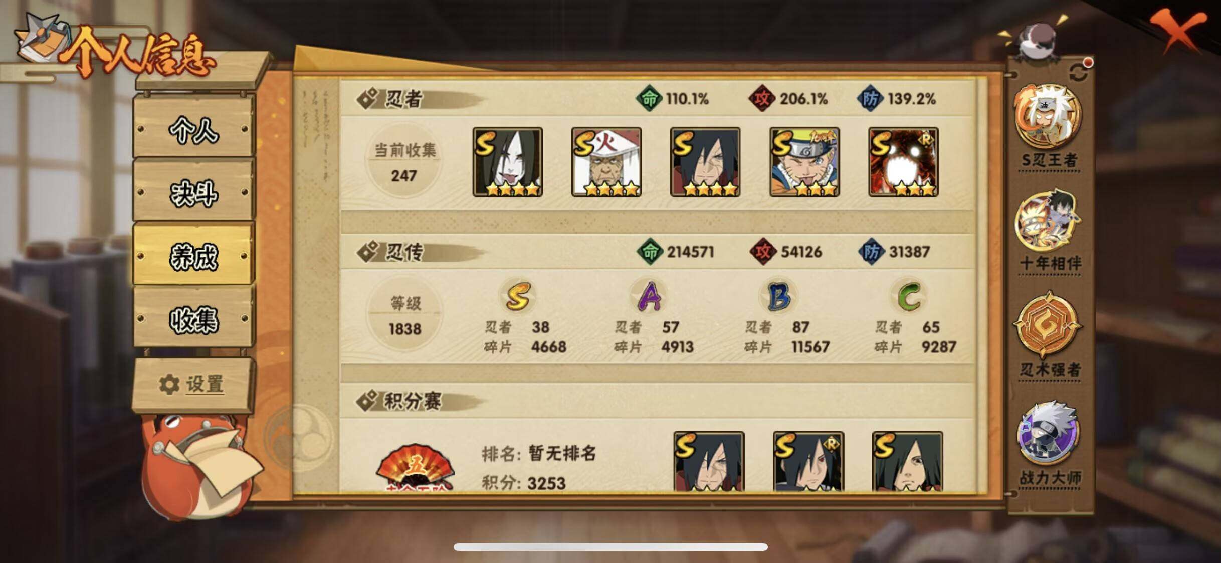 V0/战力1600W/S忍38/A忍57/百豪-纲手/2星大野木「侠隐江湖」