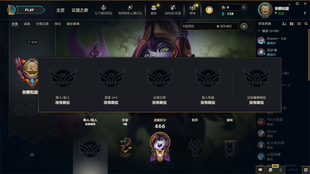 145英雄/72皮肤/11限定/4炫彩/8传说/22史诗/未定级账号等级:279/
