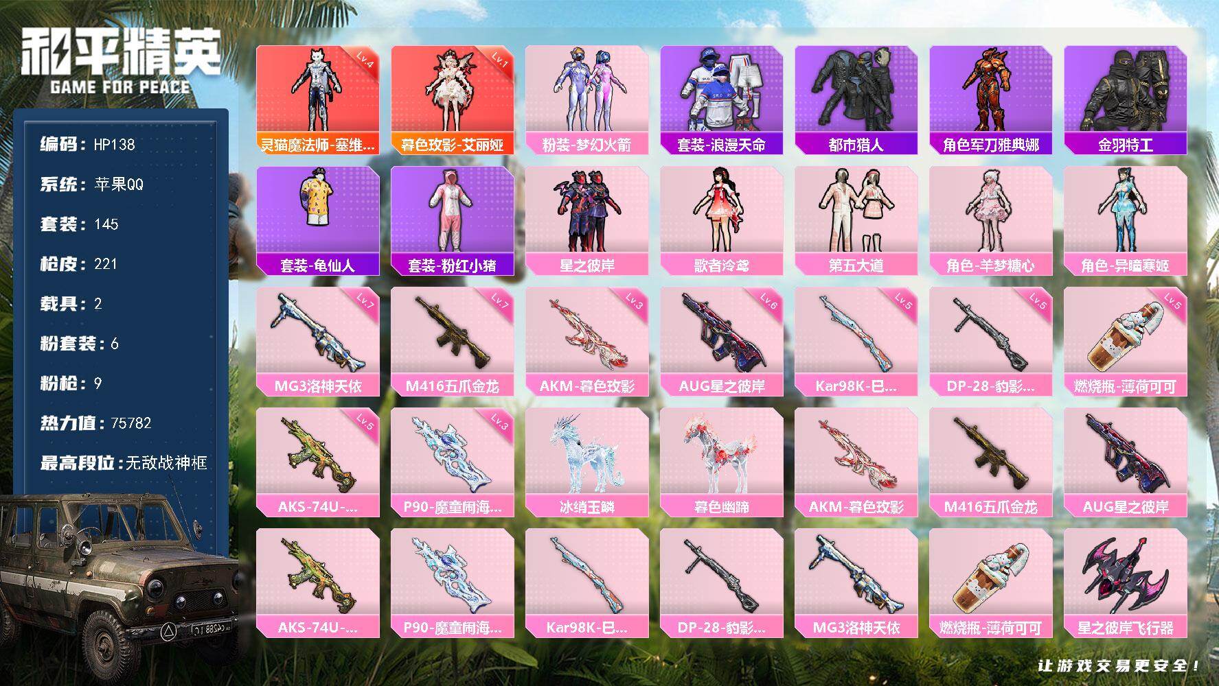 无敌战神框-2神装-6粉装-9特效枪-2载具-