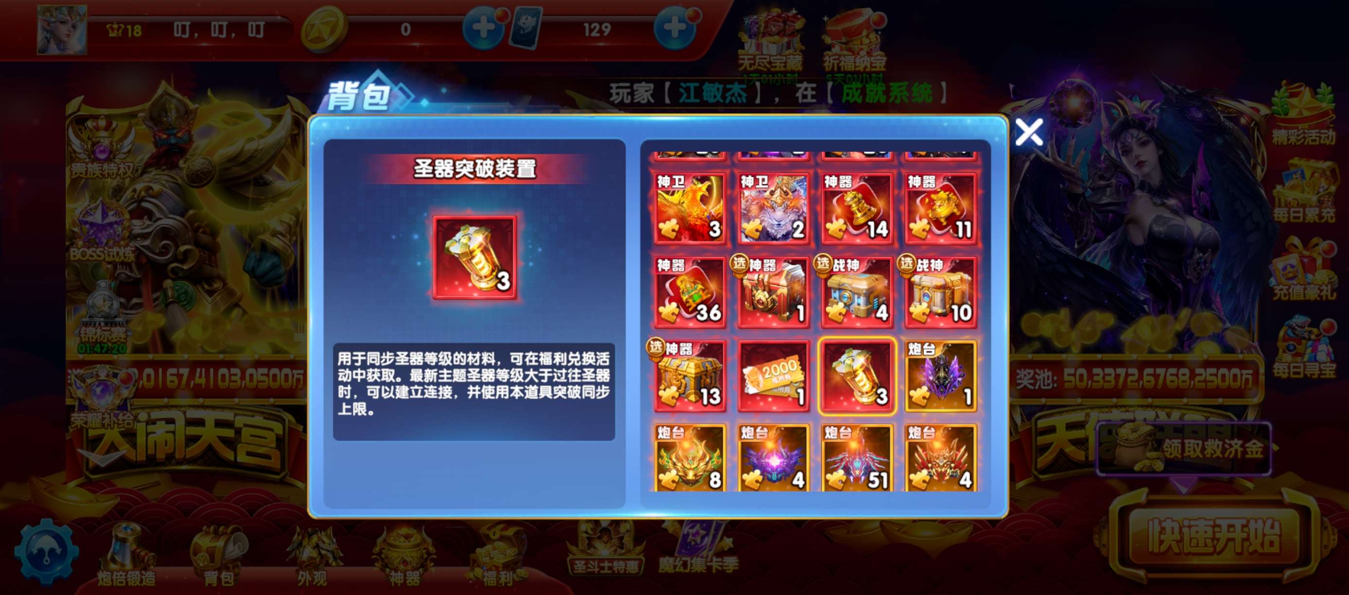 V18 姜维还差5个碎片就14套了,救济金1.6兆。加成1421,满巅峰,背包有3个圣器突破装置。