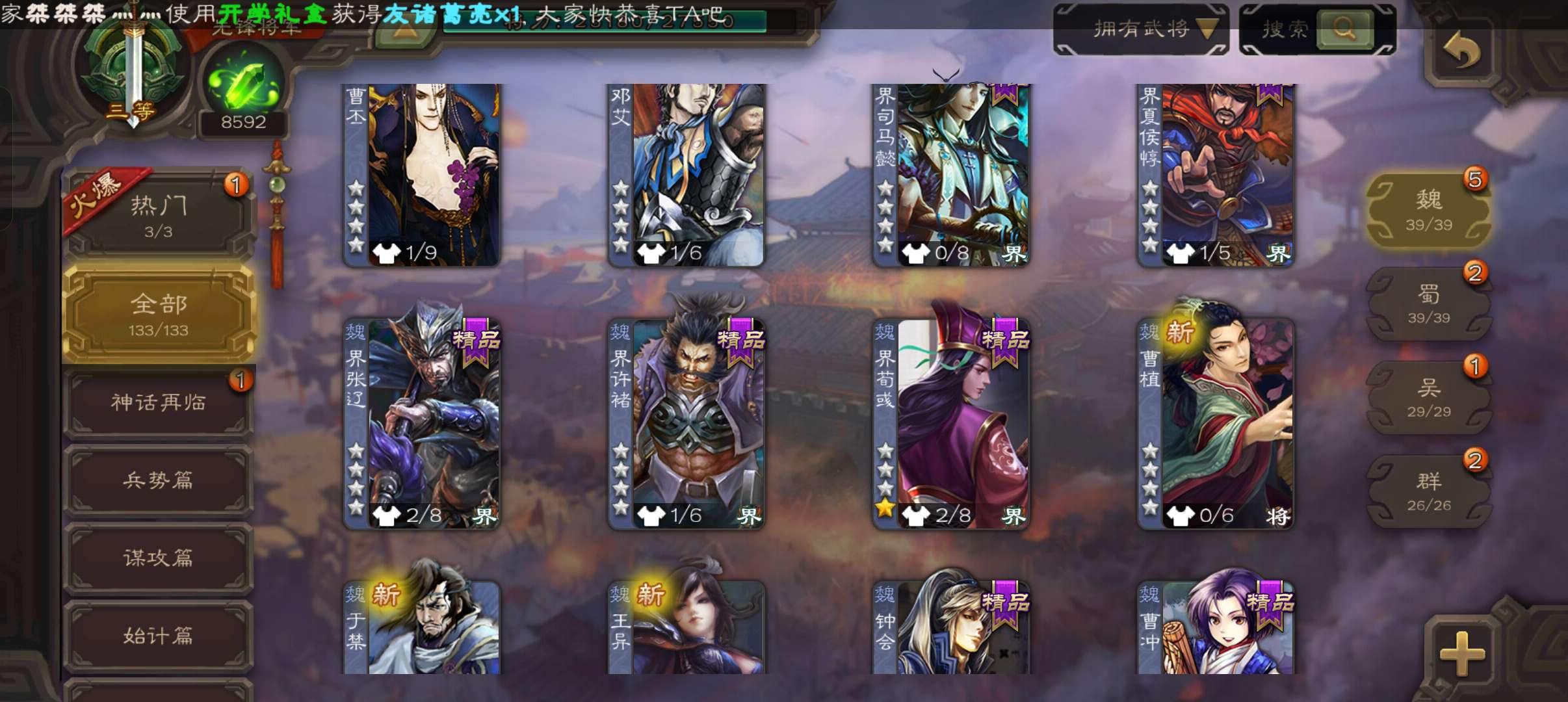 8500将魂5万羽毛,界钟会动态马云騄双史诗先锋,动态界荀彧甘夫人势田丰133将