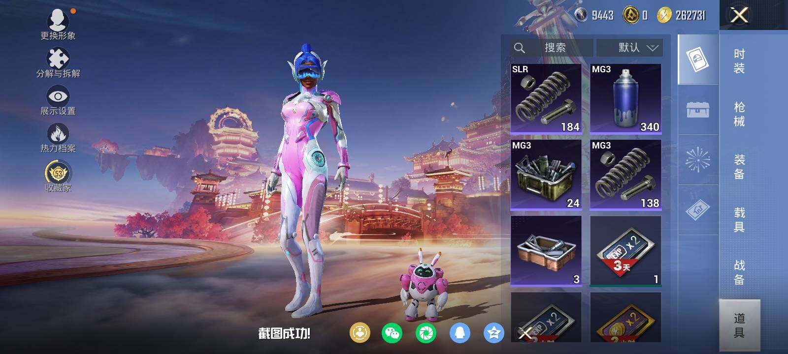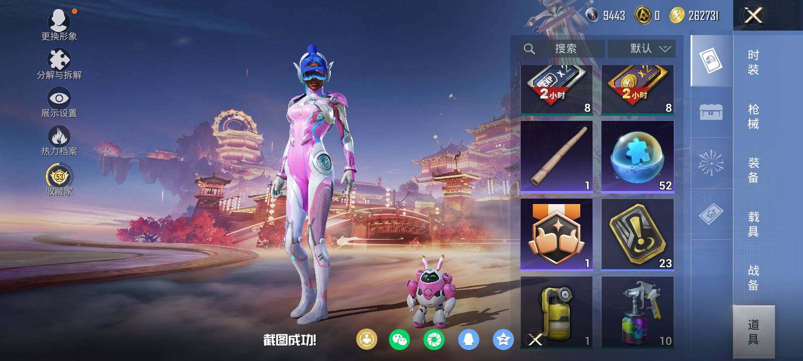 安卓 手Q-7粉装-5特效枪-4载具-3粉色飞行器-46369热力值-6王牌印记-82套装-116枪皮