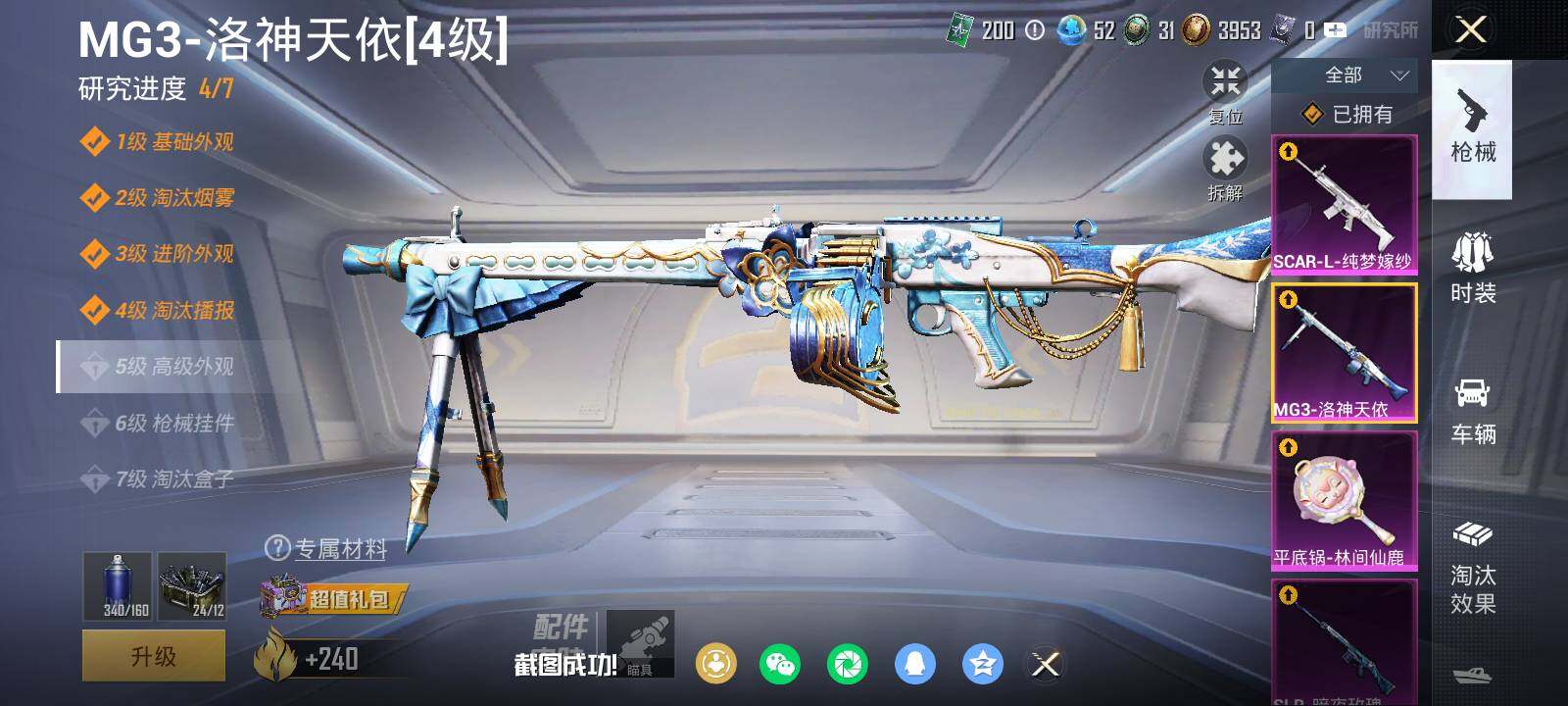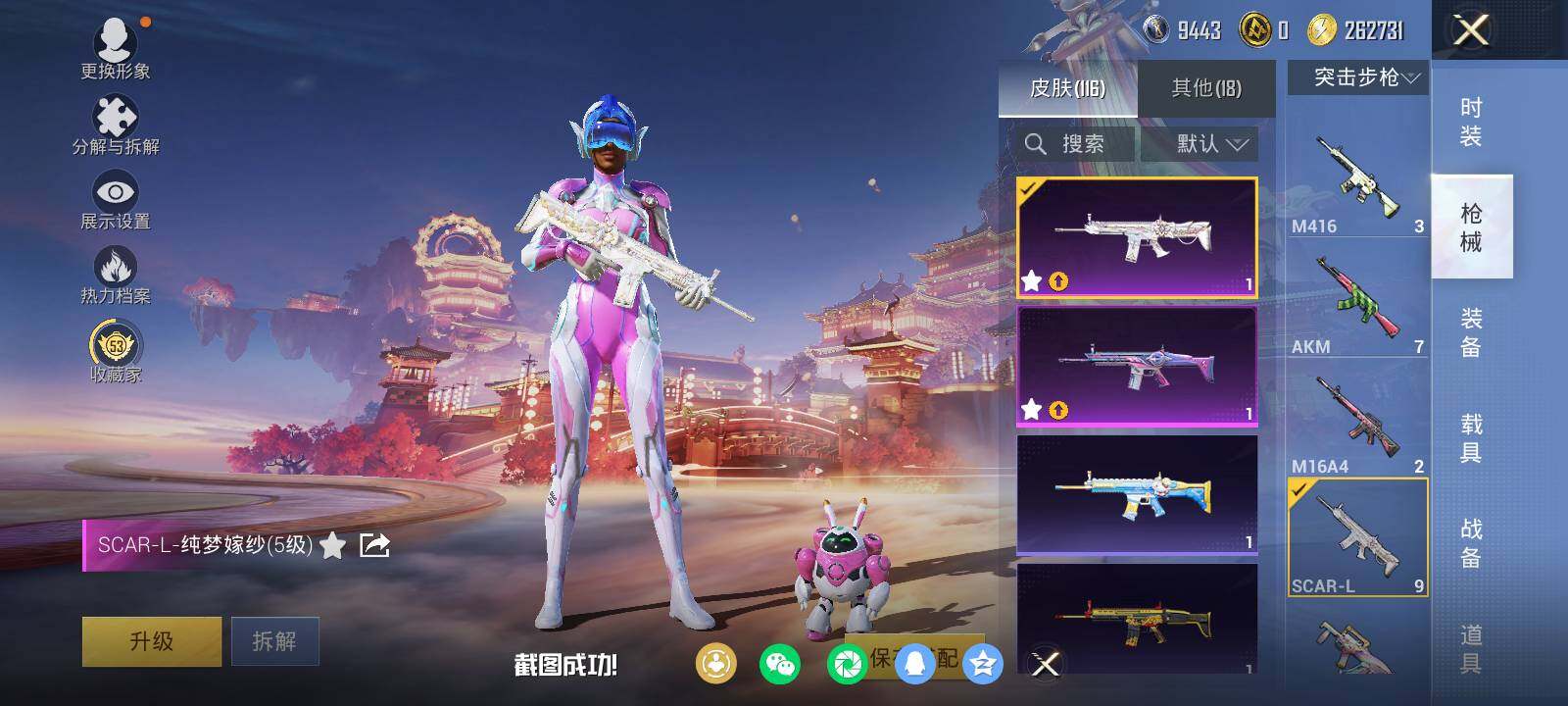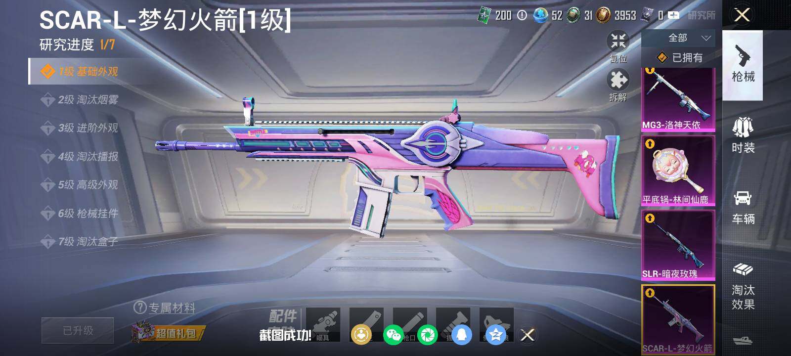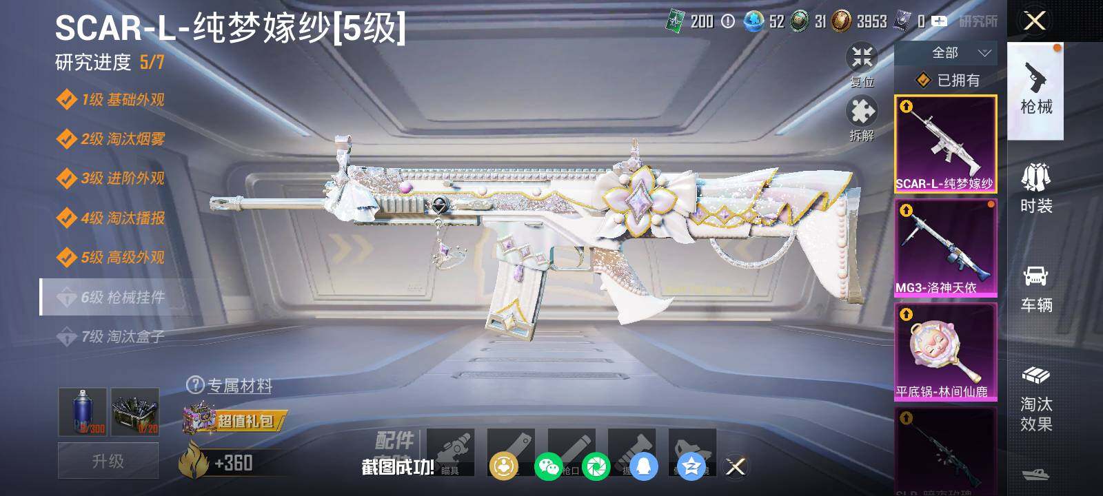 【粉色枪皮等级】:SCAR-L-梦幻火箭(一级),SCAR-L-纯梦嫁纱(五级),SL