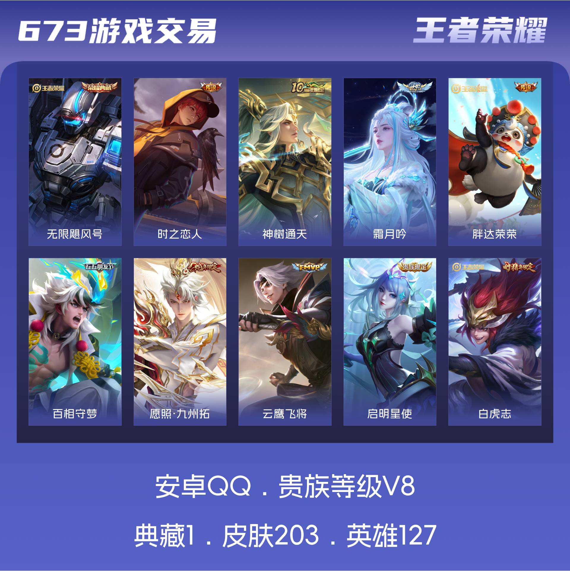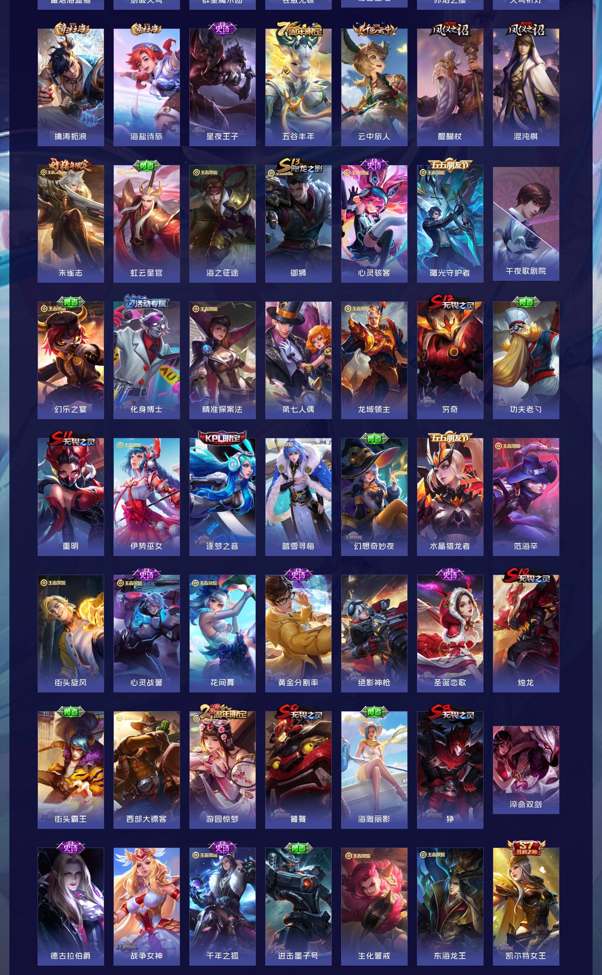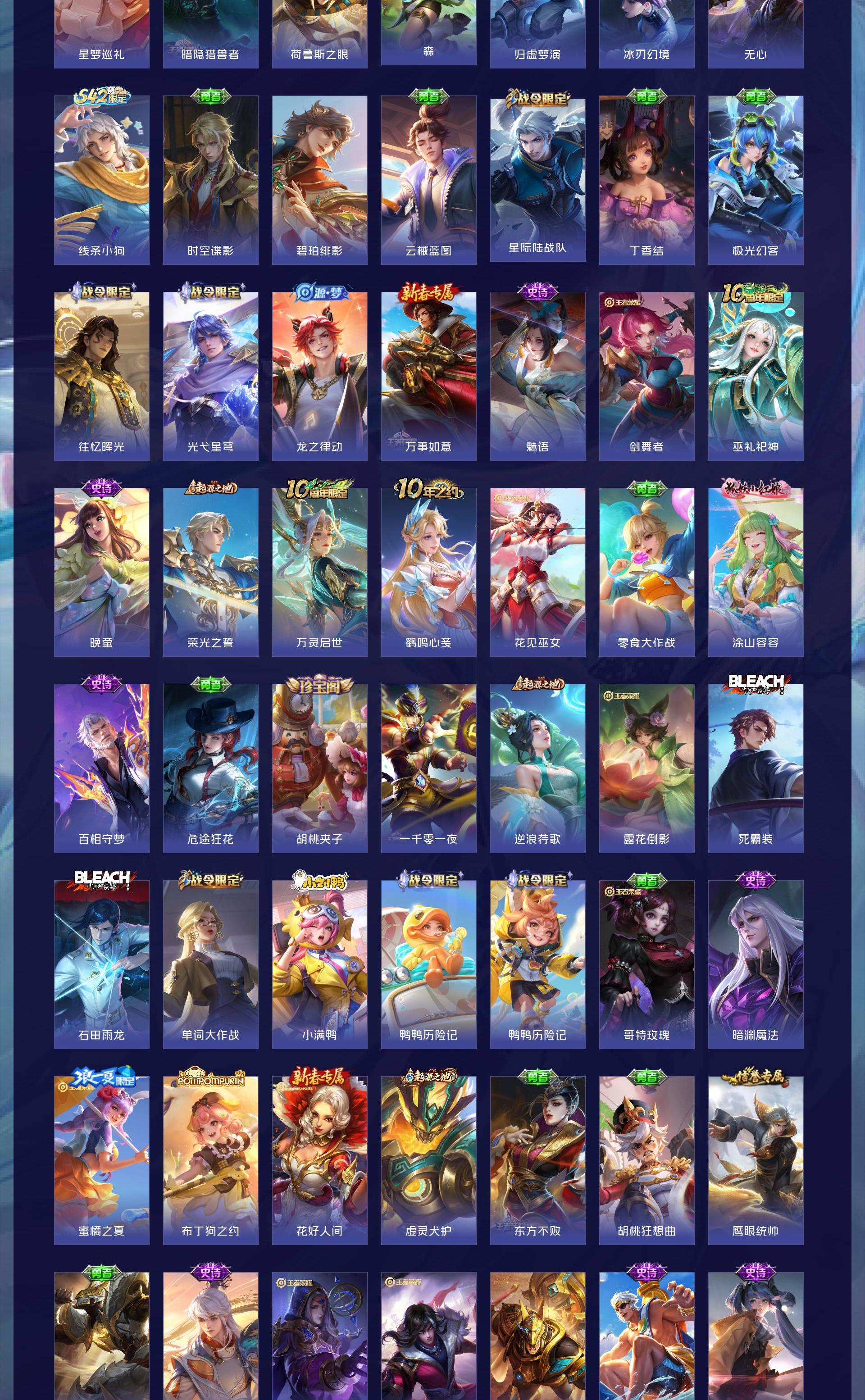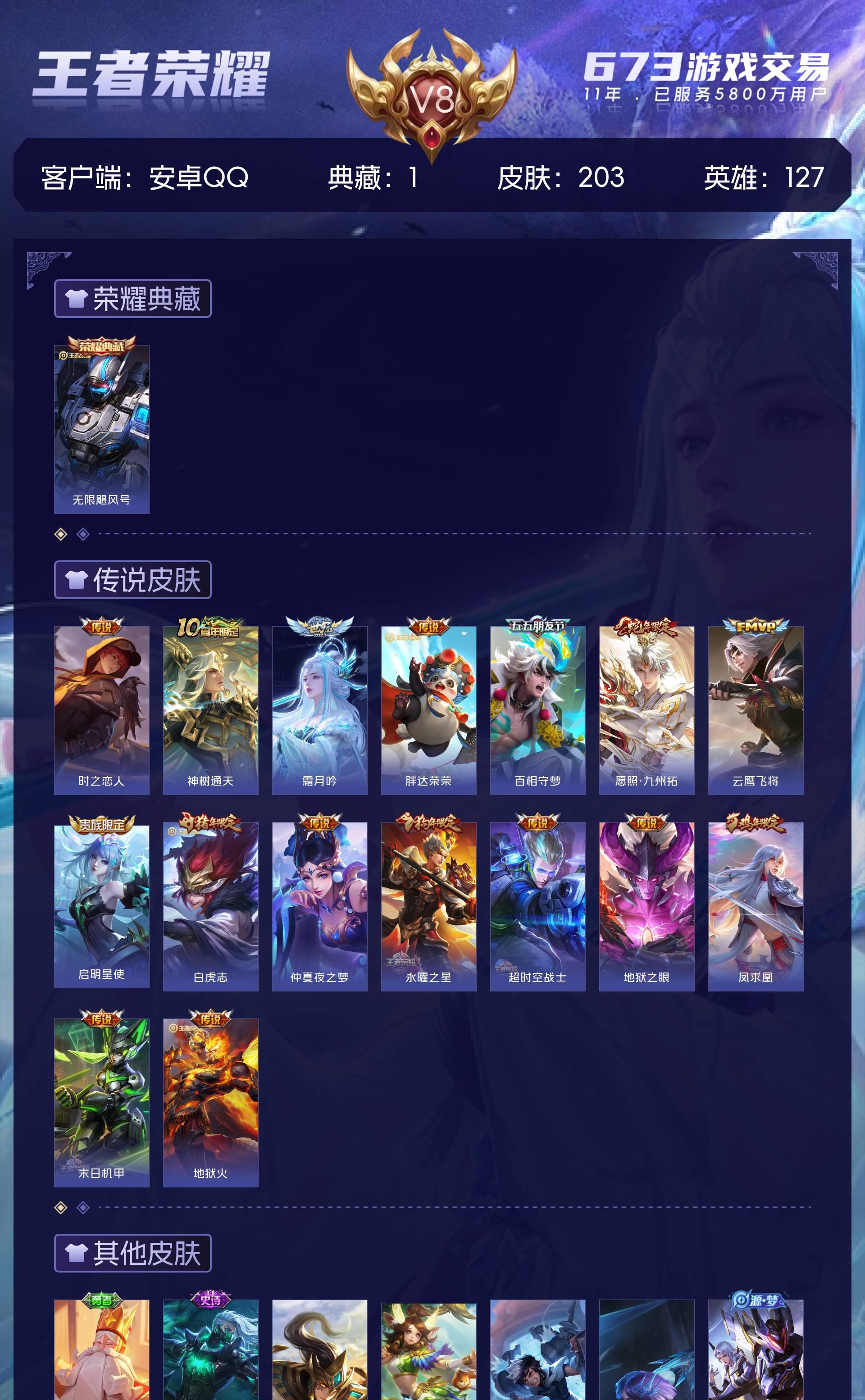 V8 皮肤203 英雄127 至尊星耀 荣耀典藏1 星传说1 传说16 其他皮肤192