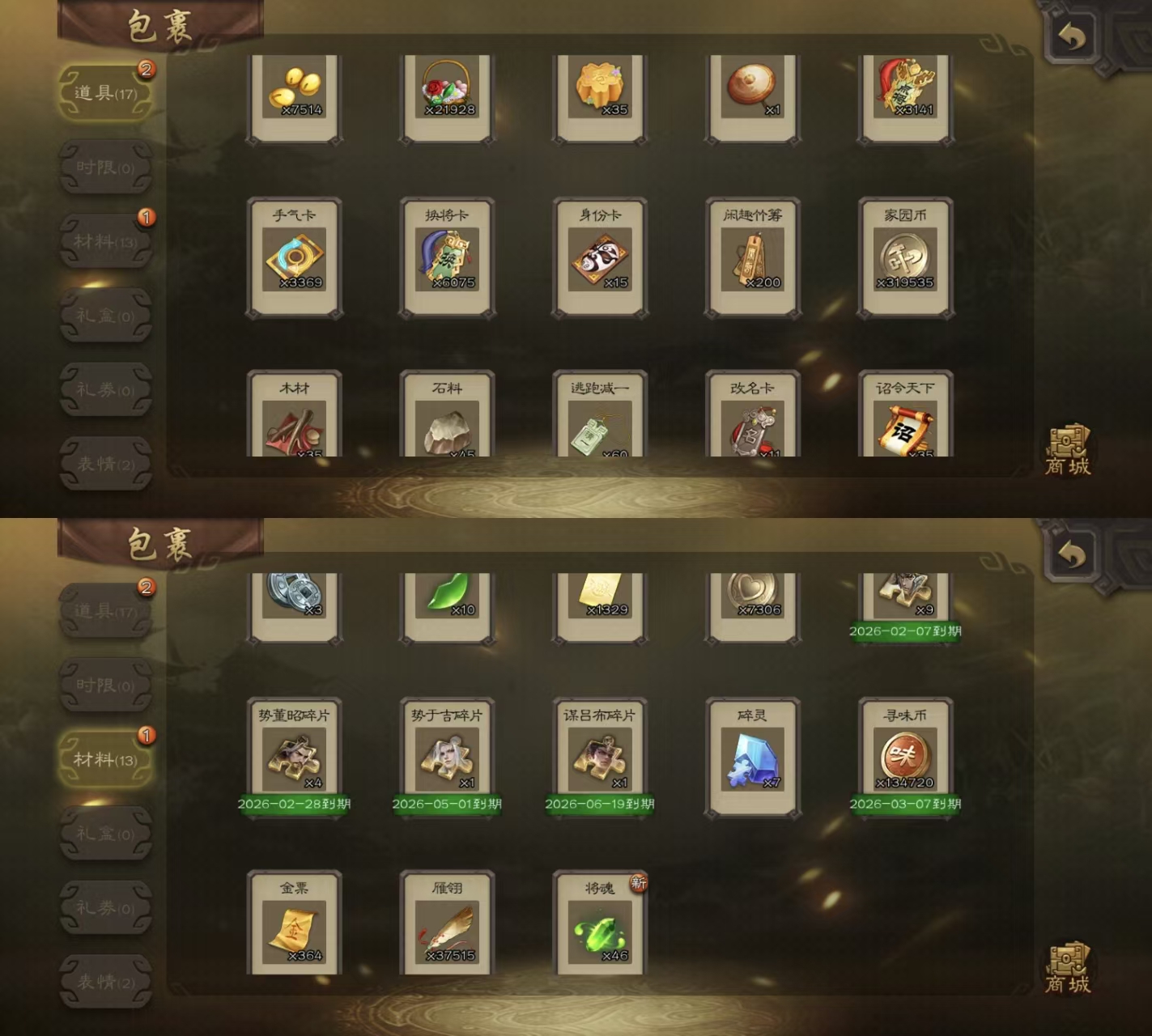 官服6巨头大将军永久包赔新将多三卡道具材料多