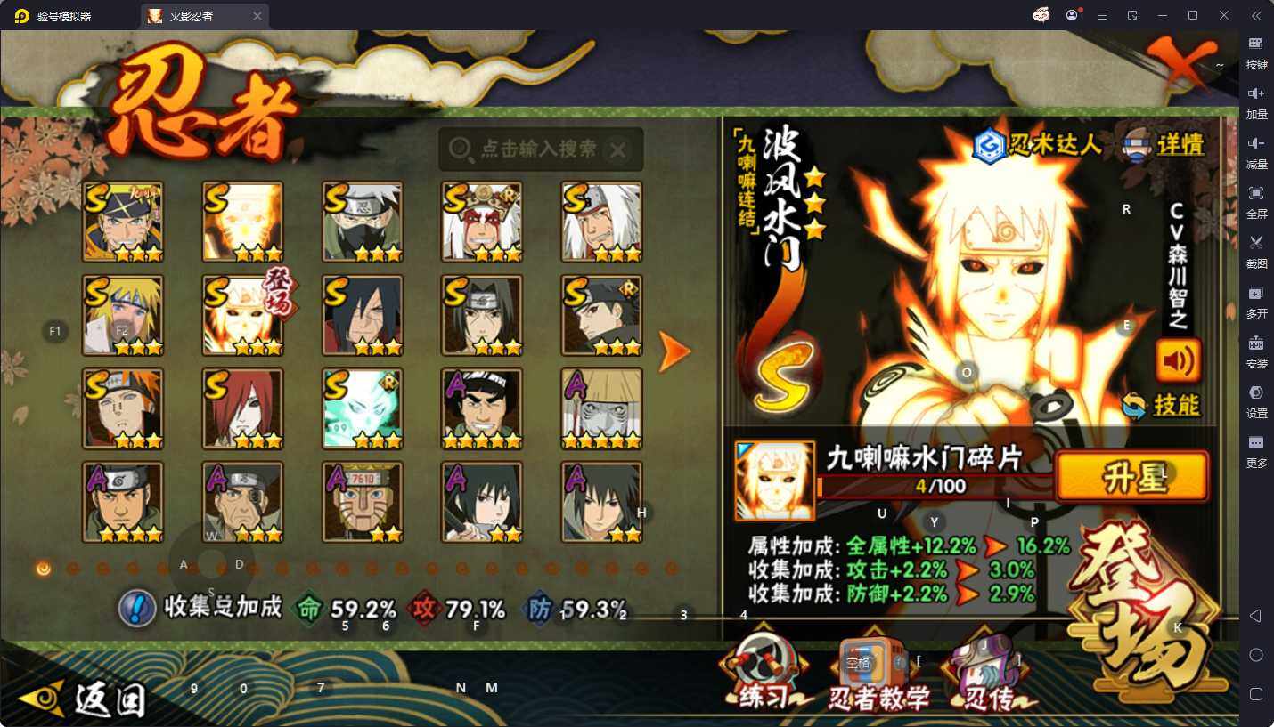 V9/战力869W/S忍13/A忍27/2星大野木「侠隐江湖」/疾风传-我爱罗/3星波风水门「九喇嘛连结」