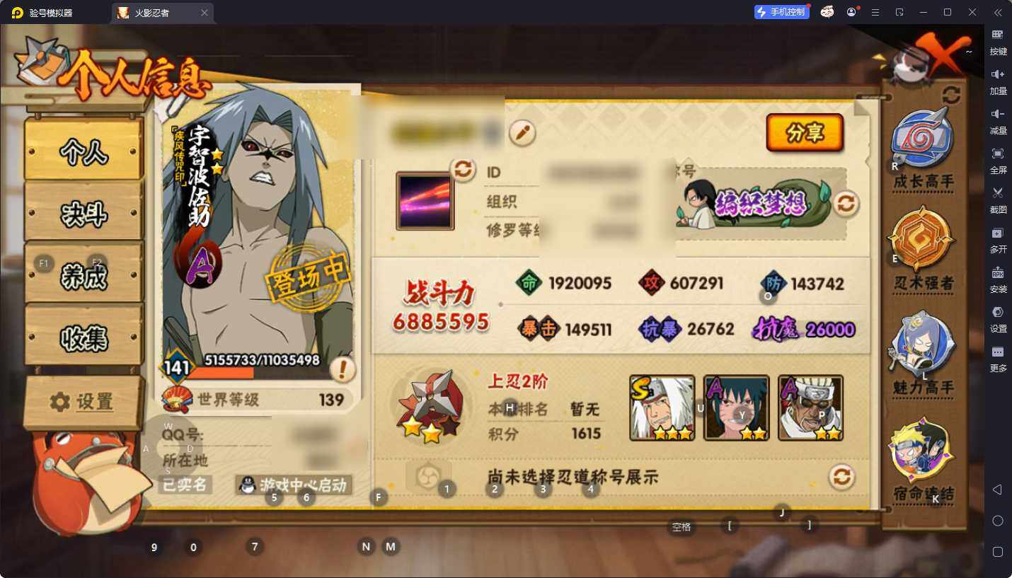 【HYYH1083】V8/战力688W/S忍11/A忍29/忍界大战-日向宁次/死司凭血-飞段/永恒万花筒-宇智波佐助/疾风传咒印-宇智波佐助/蝎/天道-佩恩/3星漩涡鸣人·宇智波佐助/波风水门/九喇嘛连结-漩涡鸣人/忍界大战-秋道丁次/桃式显现-漩涡博人/3星干柿鬼鲛/3星我爱罗「疾风传」/忍界大战-李洛克/2星土台「忍界大战」/忍者之路-神秘面具男/六代目水影-长十郎/青年-波风水门/2星蝎「绯流琥」/舞之豪杰-自来也/4星迈特凯/3星自来也「传说中的三忍」/奇拉比/飞段/忍界大战-春野樱/