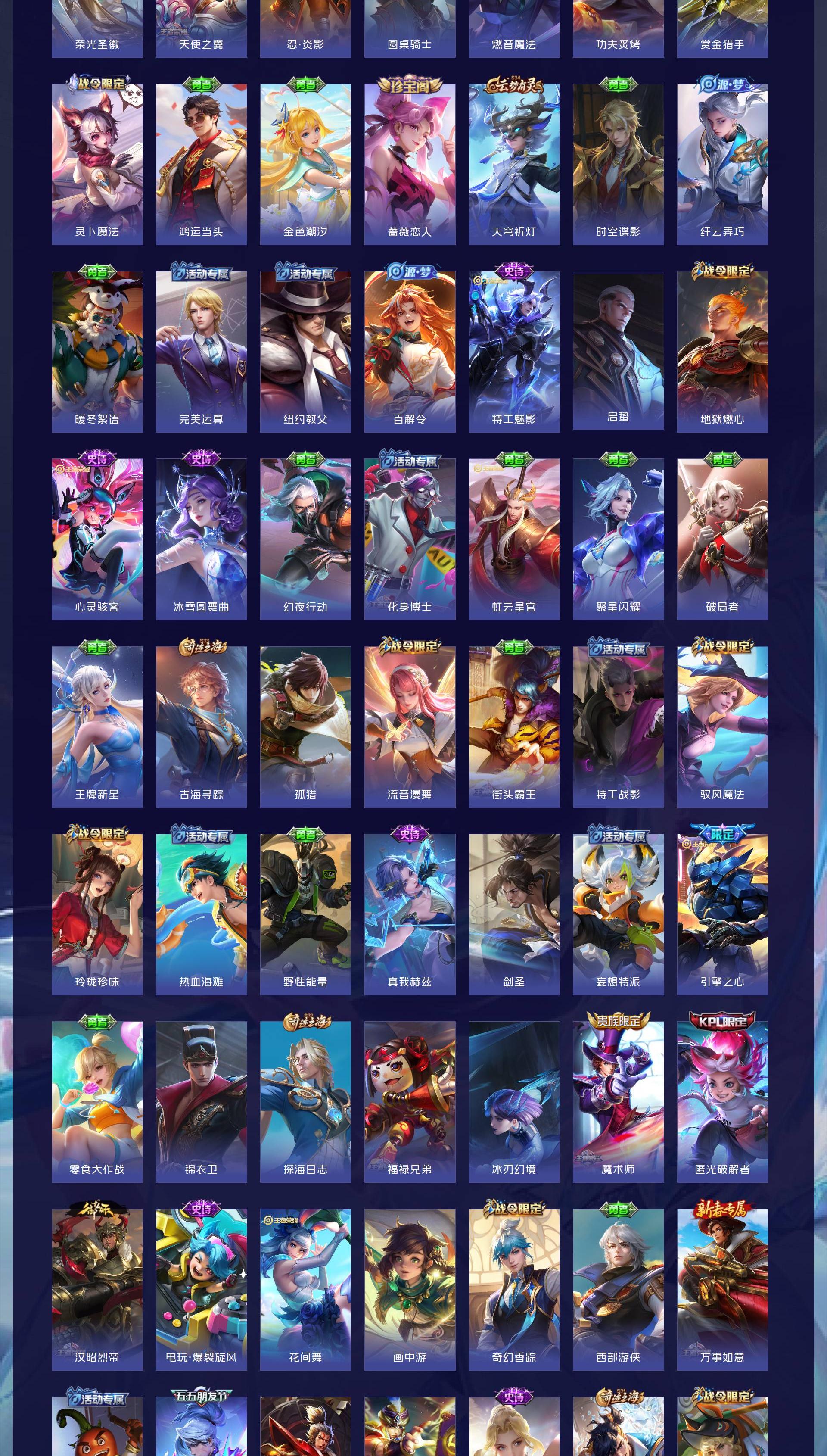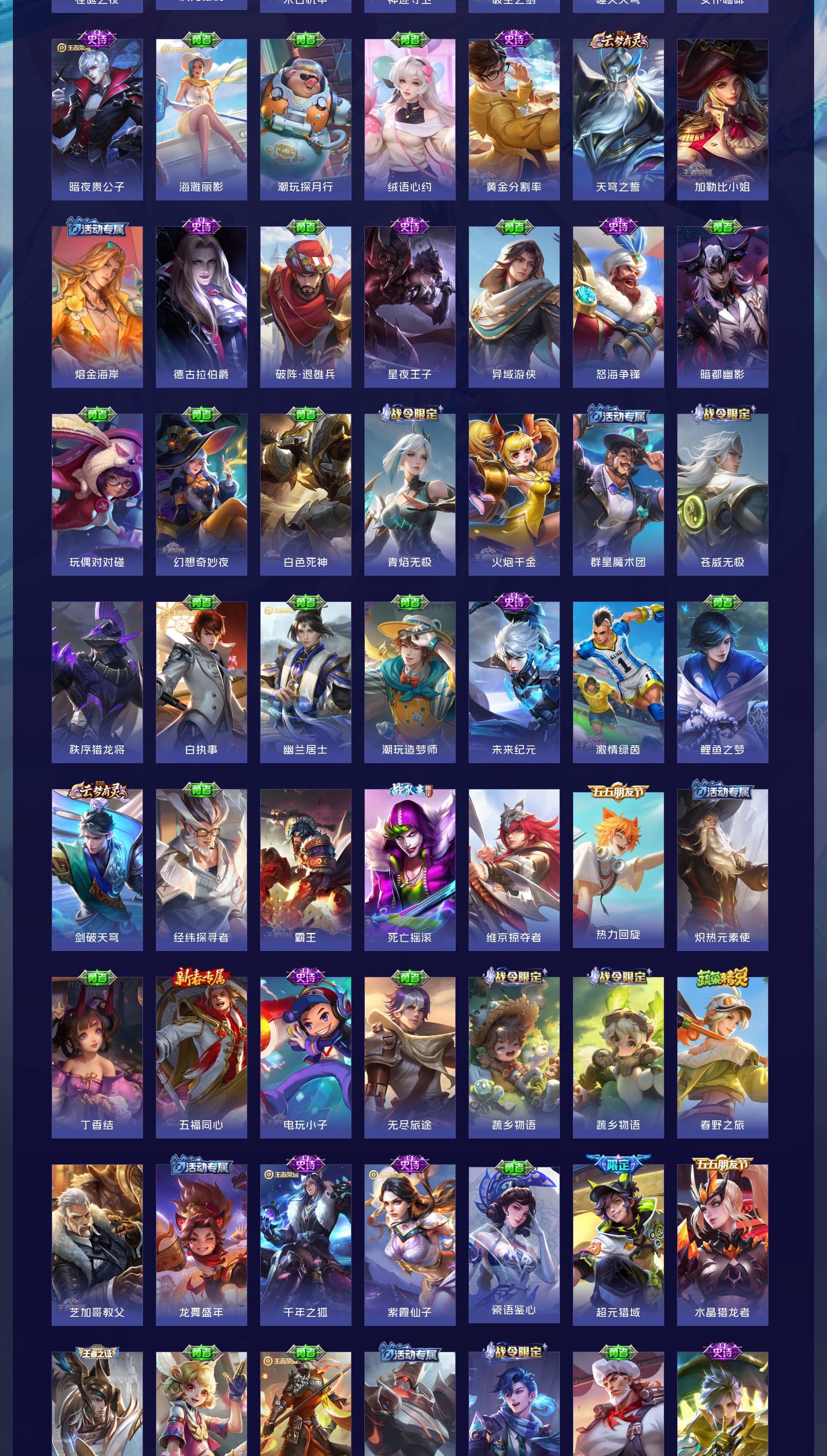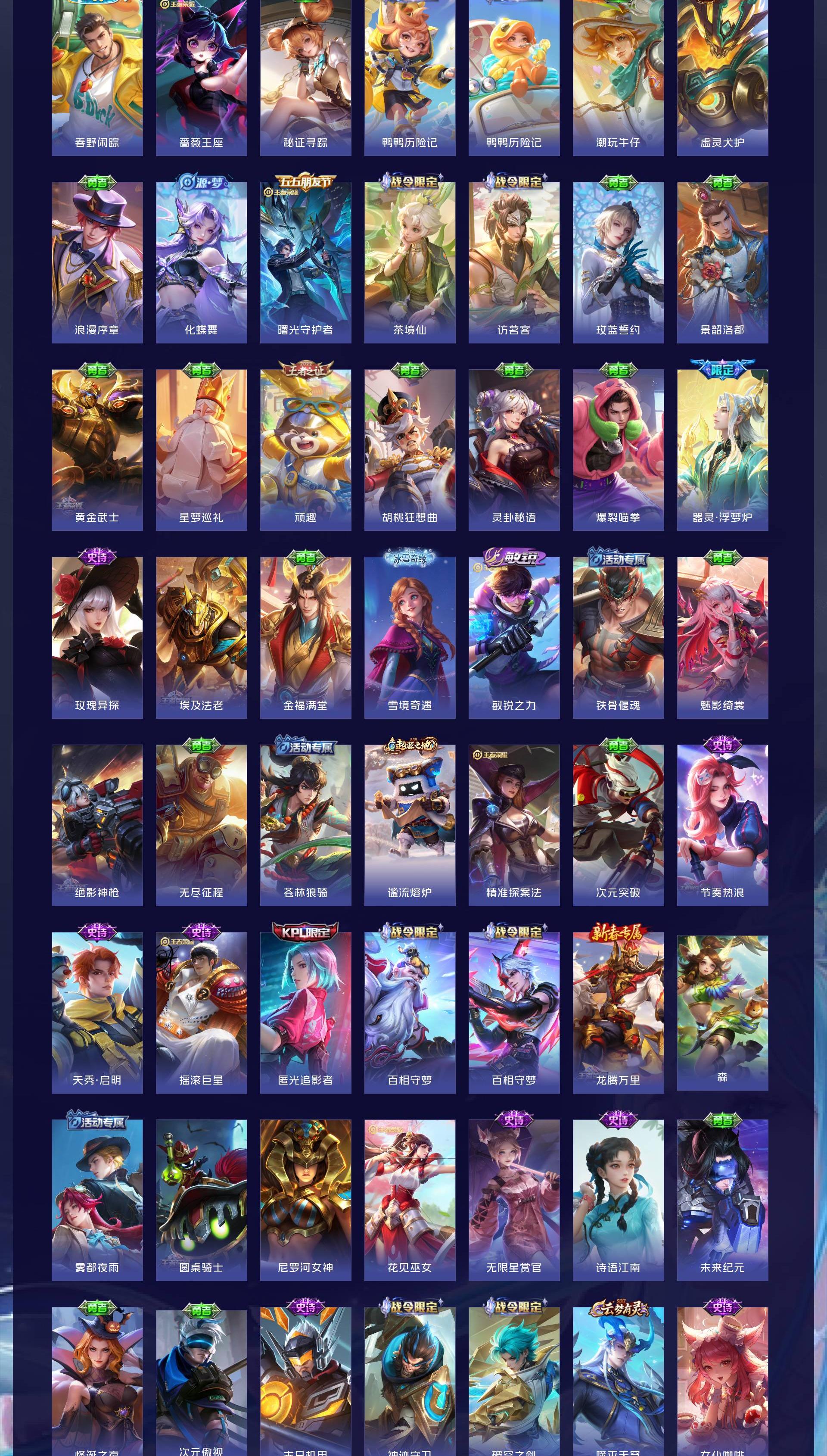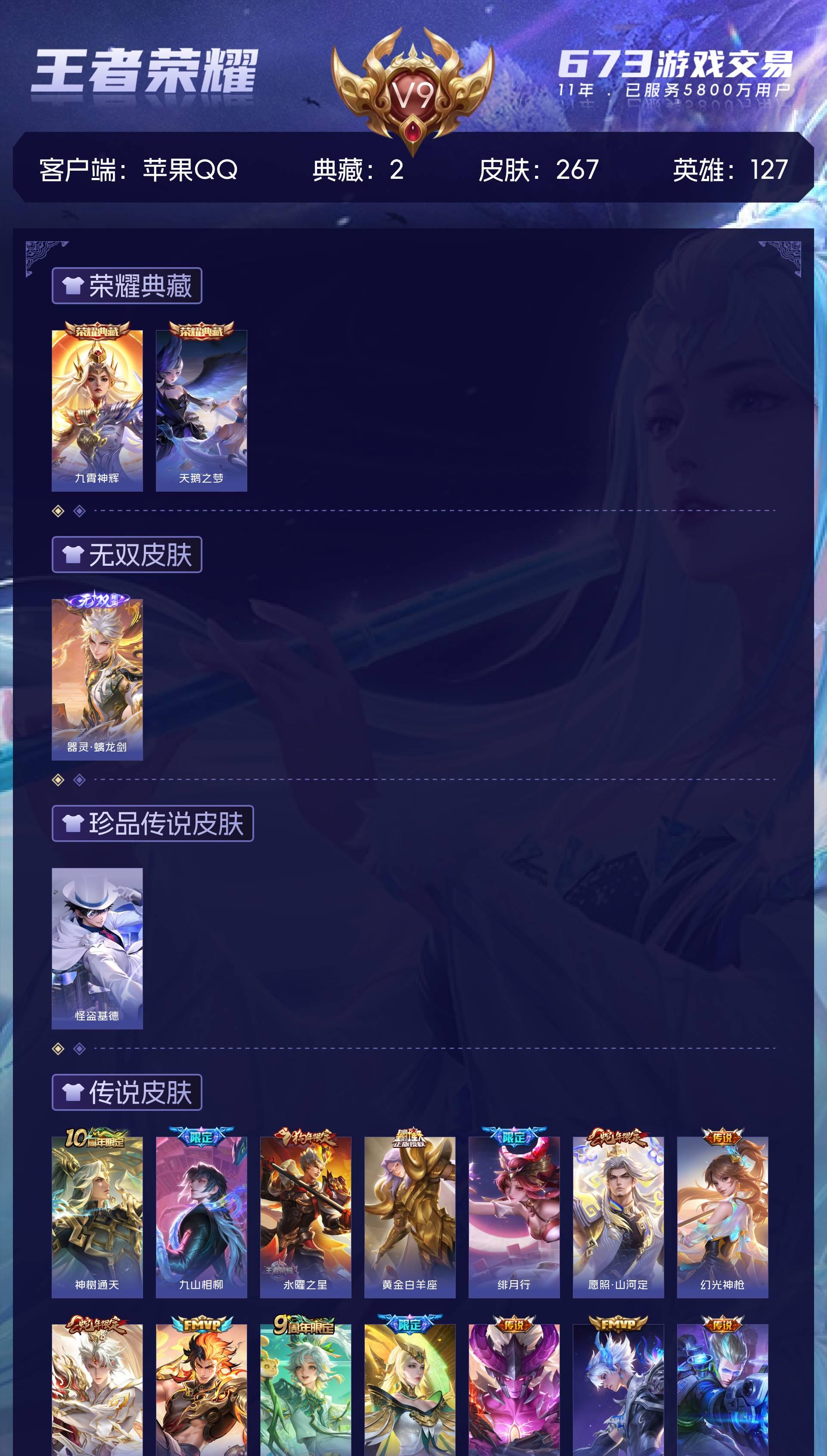 V9 皮肤267 英雄127 最强王者 荣耀典藏2 无双皮肤1 珍品传说1 星传说1 传说18 其他皮肤251