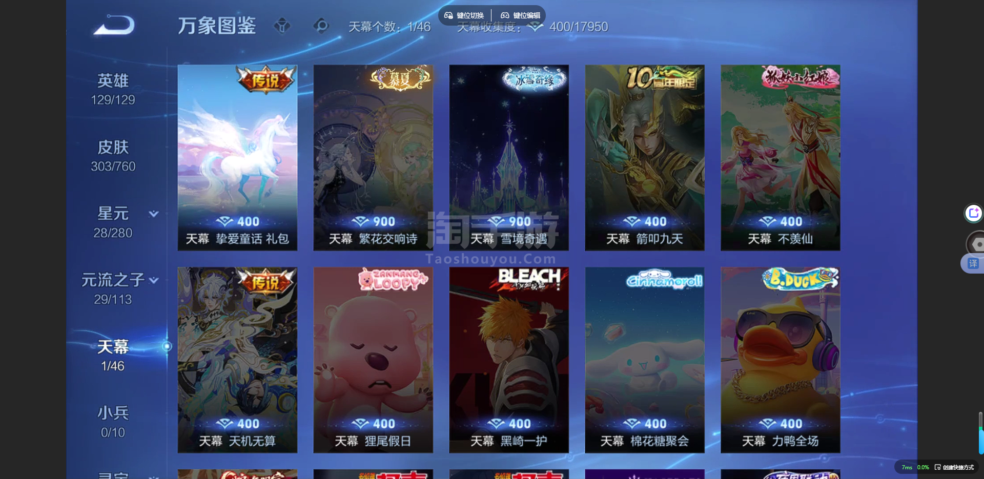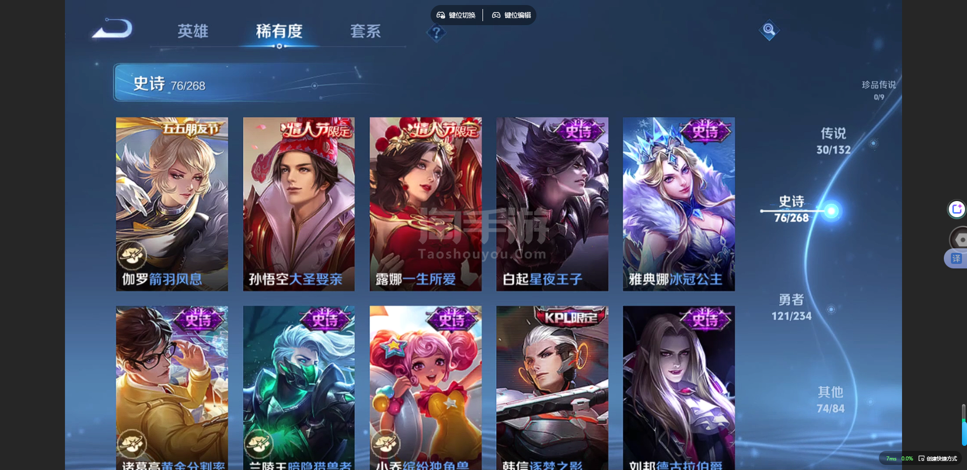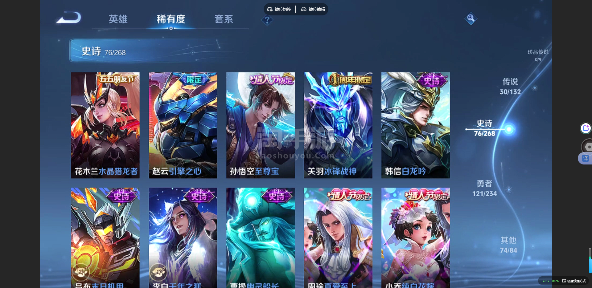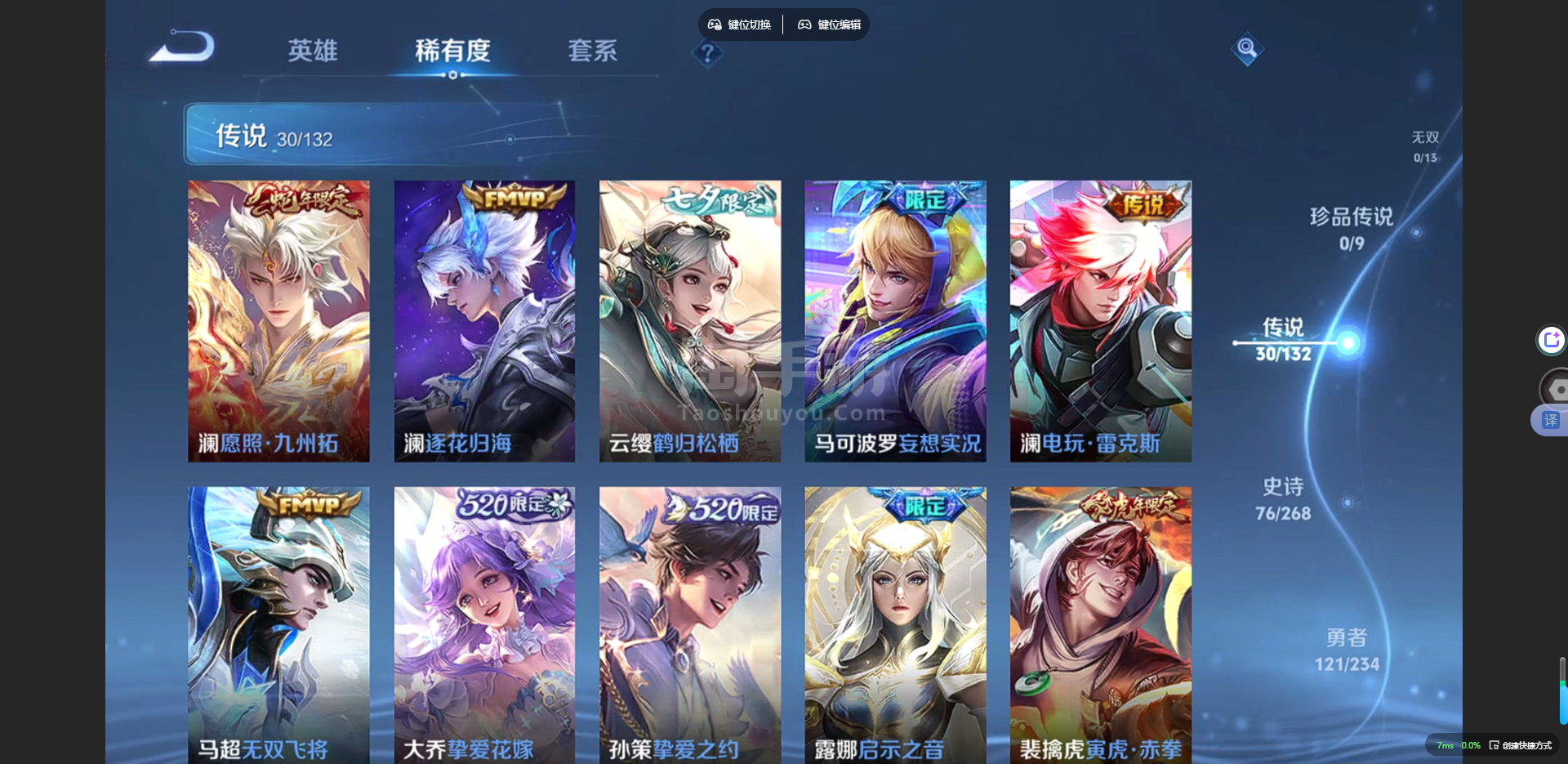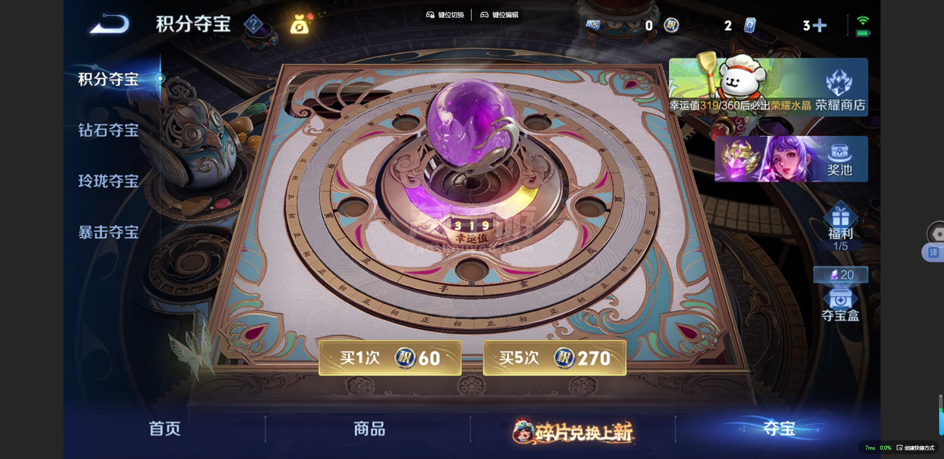 苹果QQ V9 皮肤305 英雄129 最强王者 荣耀典藏3 传说30 星传说3 太华/白虎志/白虎志/凤求凰至尊宝 夺宝幸运分319 马上出第4颗水晶