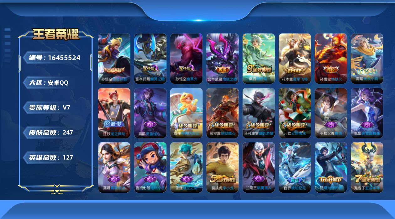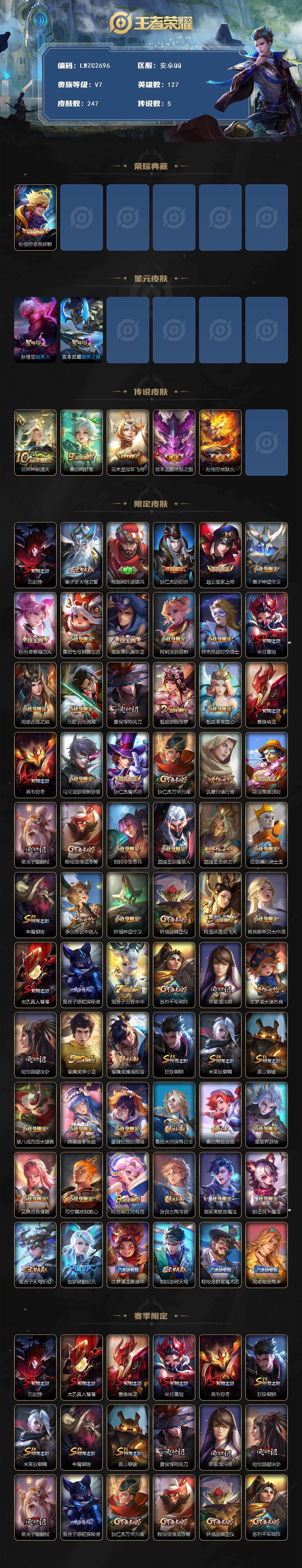 V7-永恒钻石I段位-127英雄-247皮肤-1典藏皮肤-2星元-5传说-67史诗