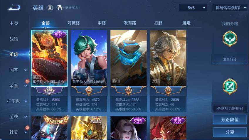 V5-最强王者段位-127英雄-219皮肤-1典藏皮肤-1星元-4传说-54史诗