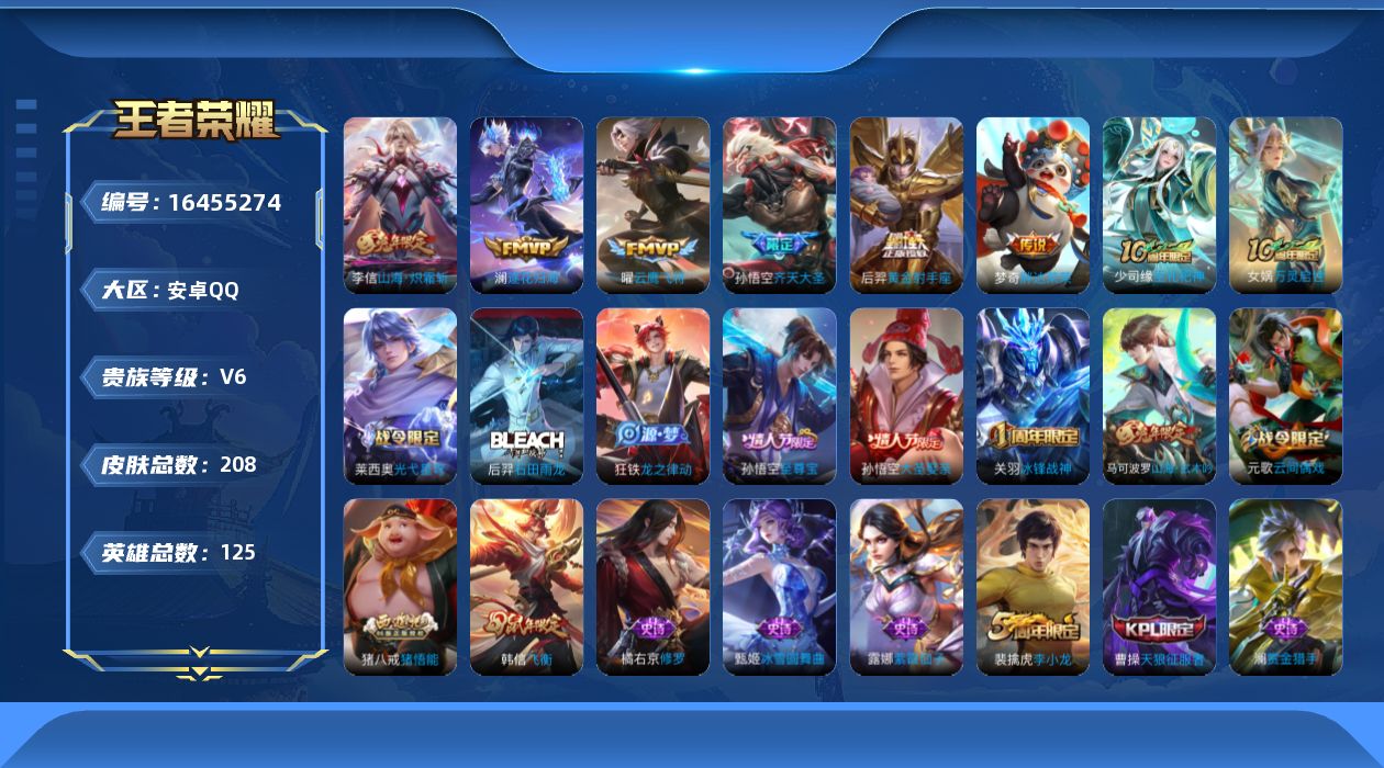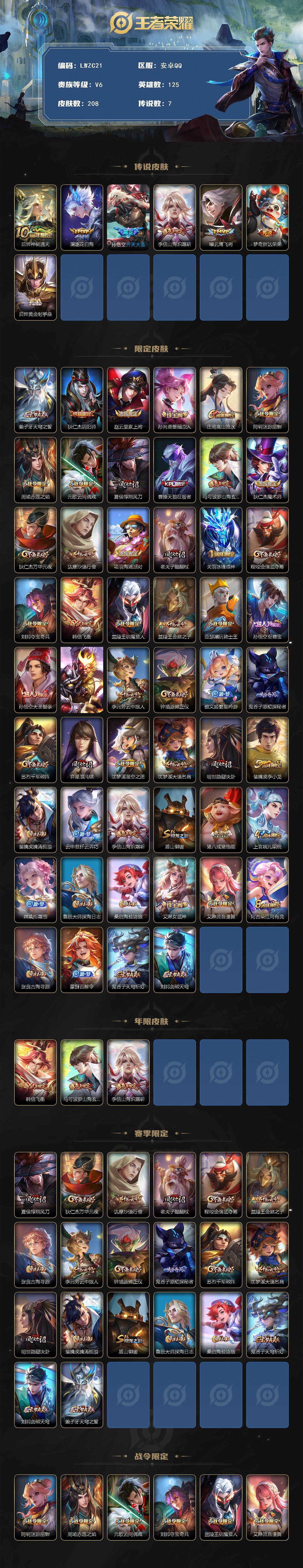 V6-最强王者段位-125英雄-208皮肤-7传说-56史诗
