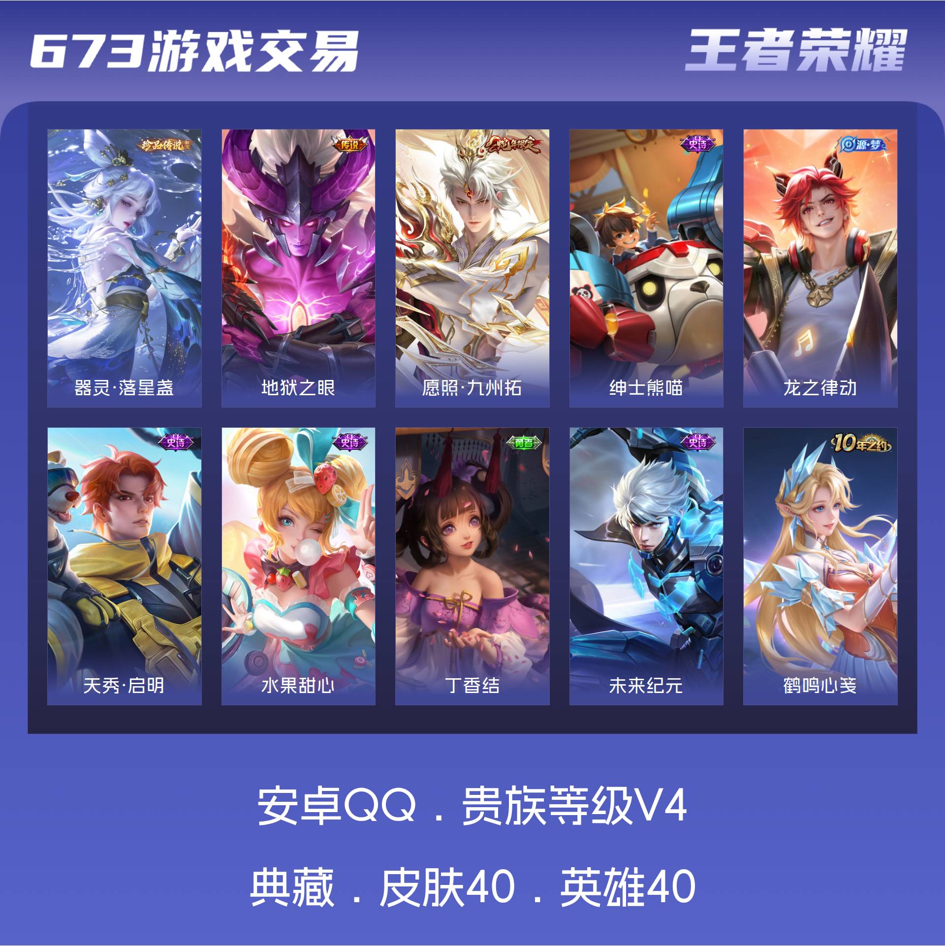 V4 皮肤40 英雄40 永恒钻石 珍品传说1 传说2 其他皮肤40