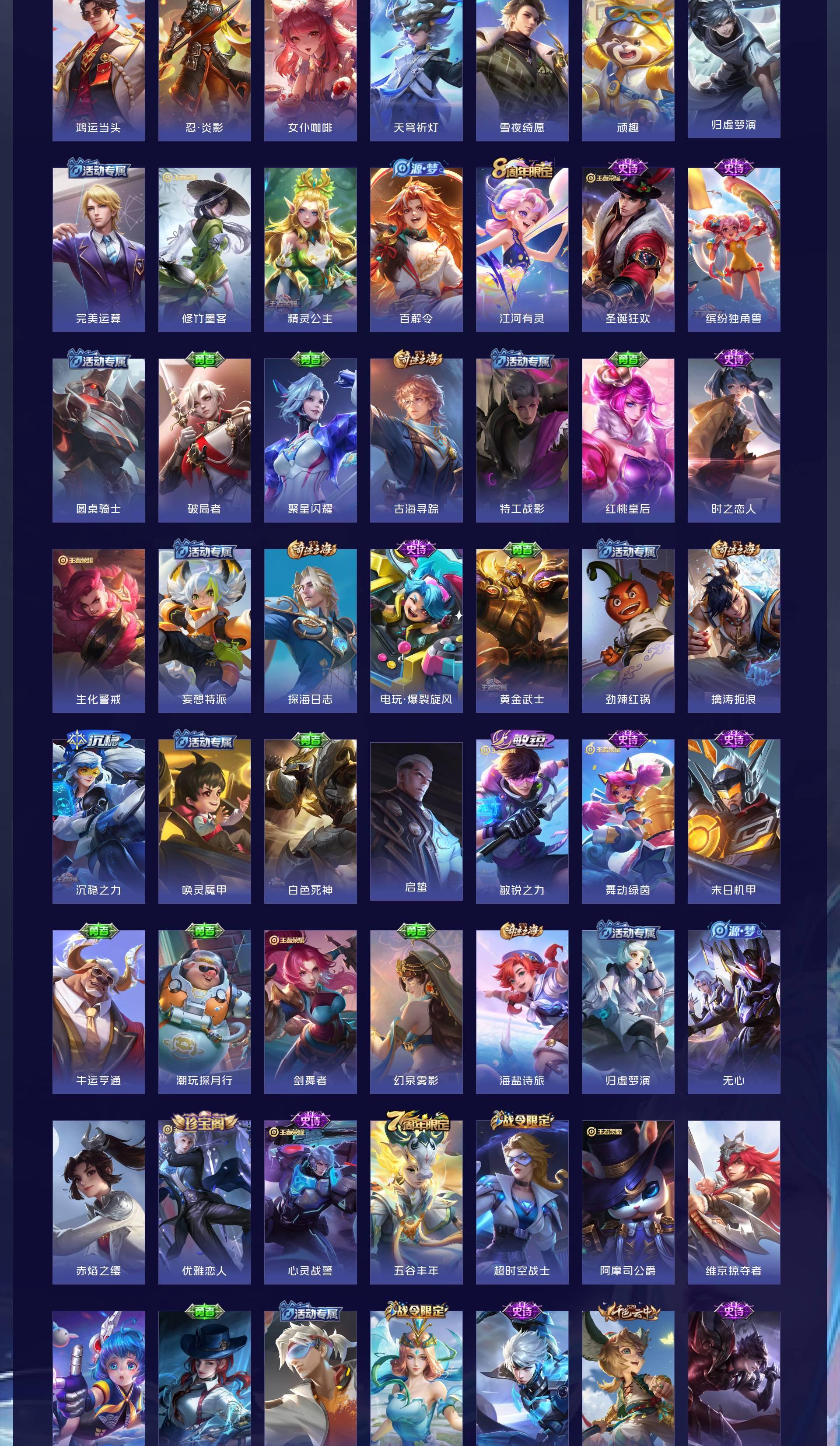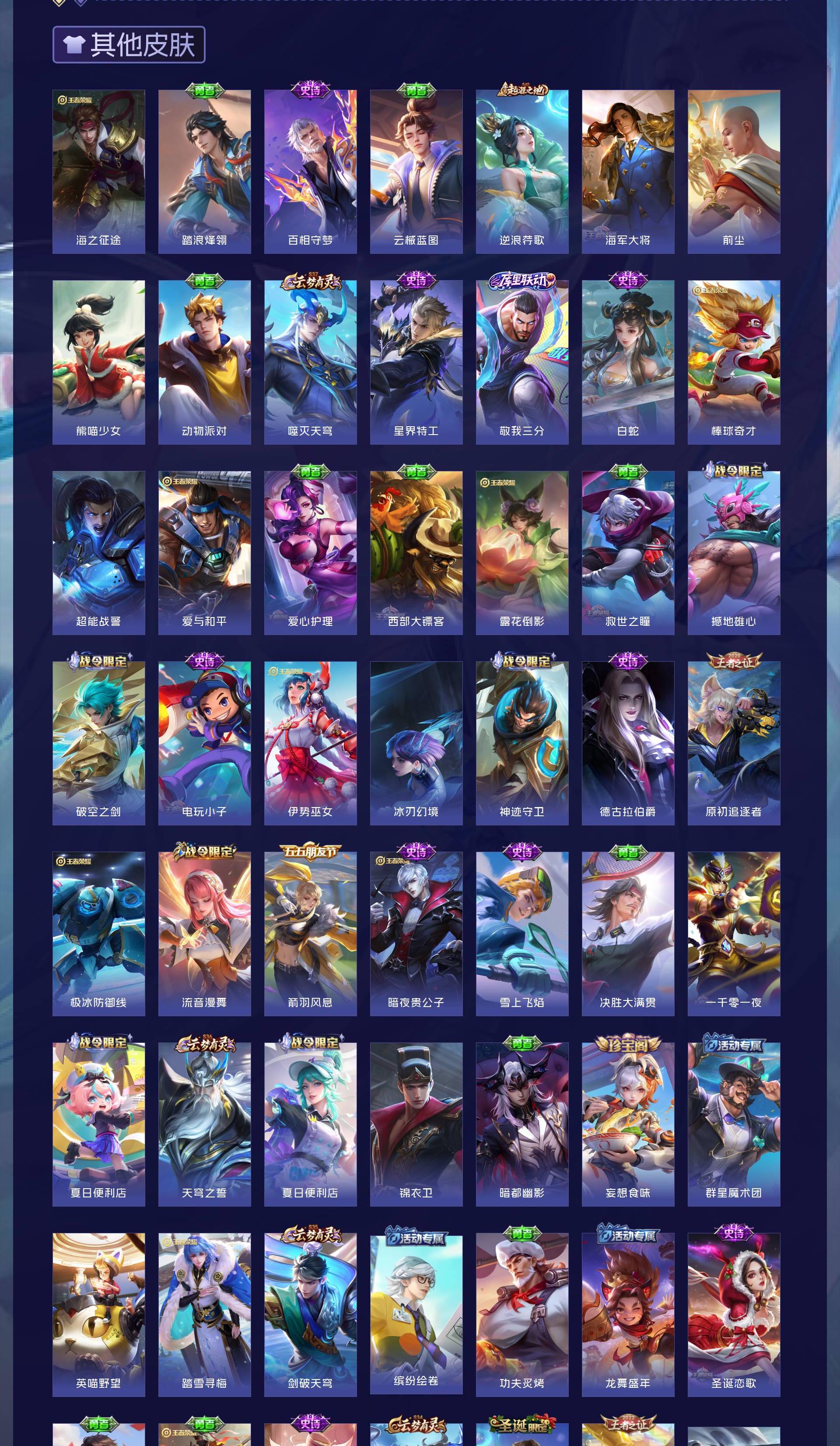 V8 皮肤320 英雄126 尊贵铂金 荣耀典藏3 珍品传说1 传说15 其他皮肤307