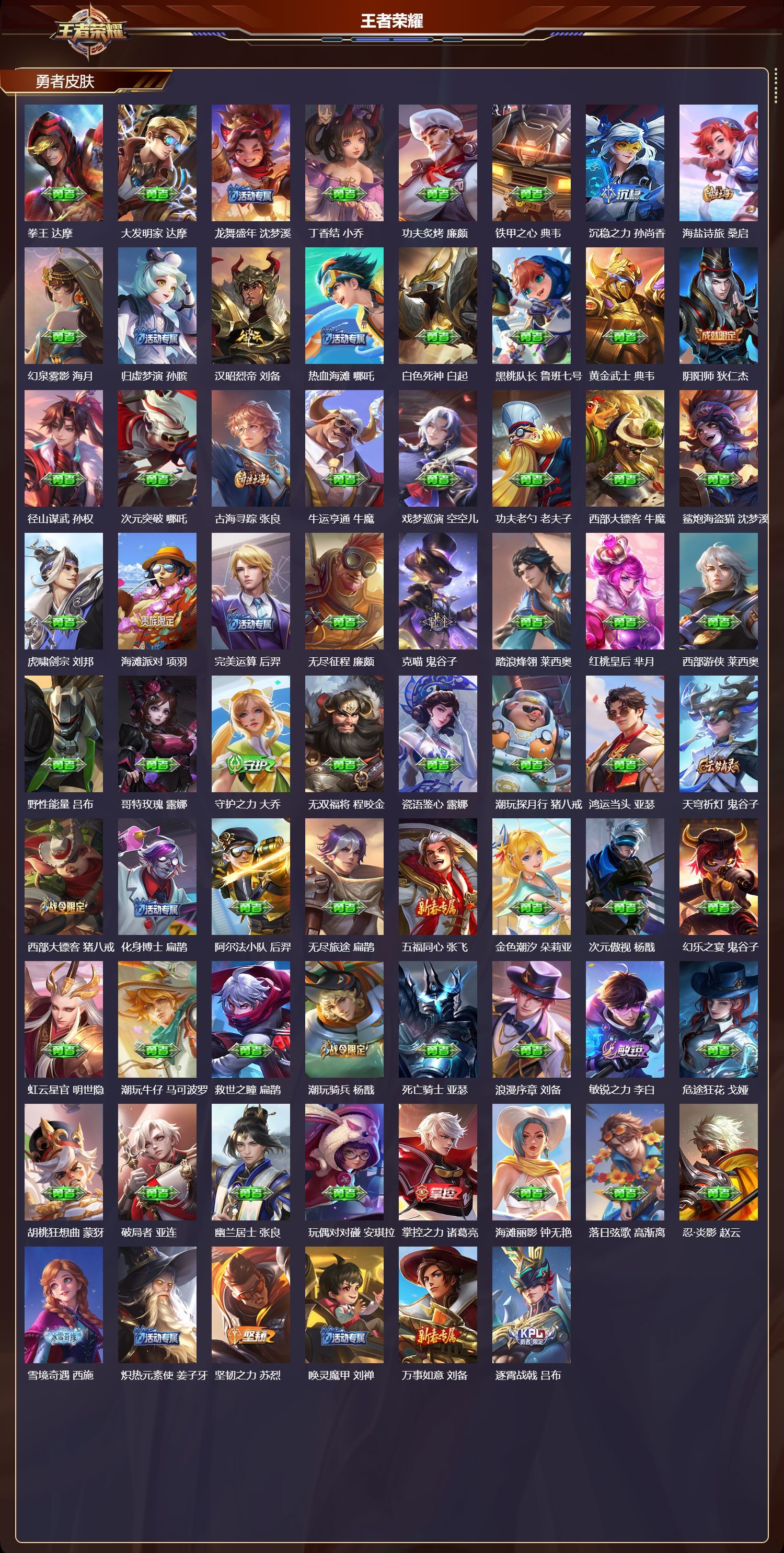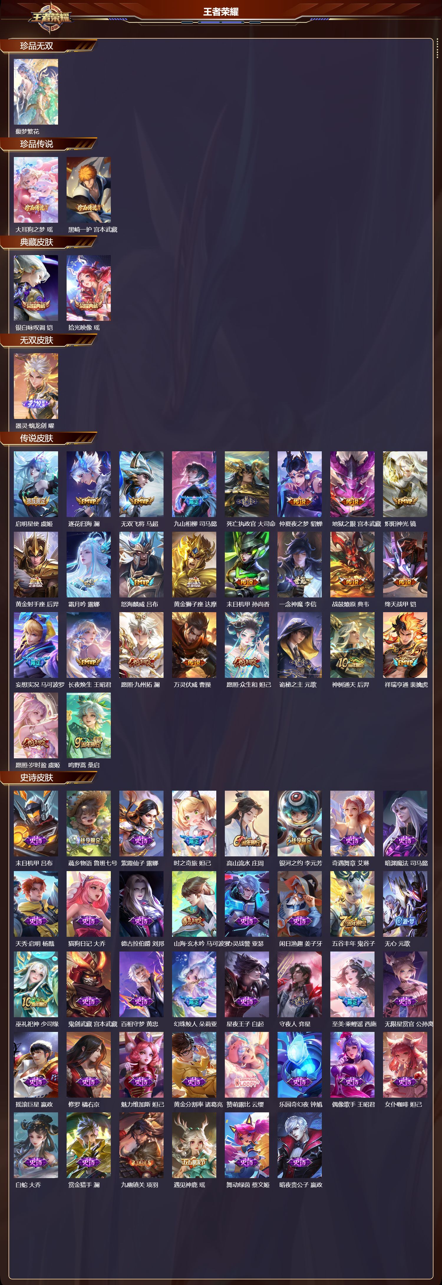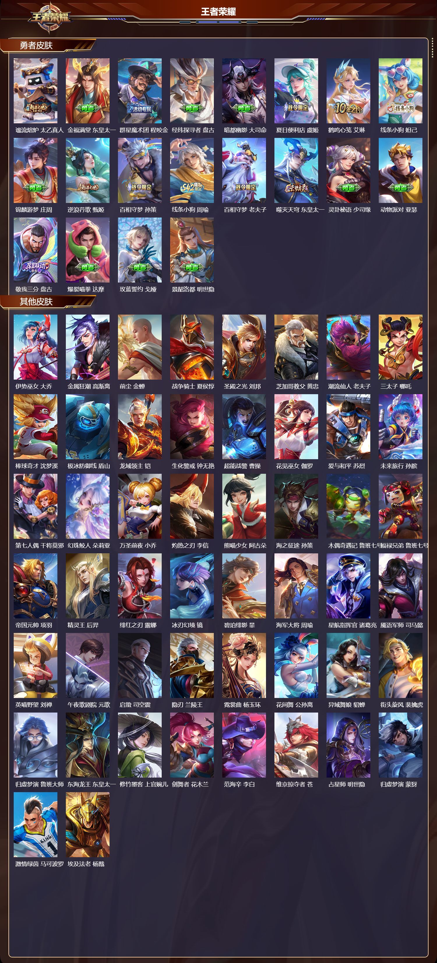 安卓QQ/最强王者/380皮肤/128英雄/2典藏/1珍品无双/1无双/2珍品传说/26传说/99史