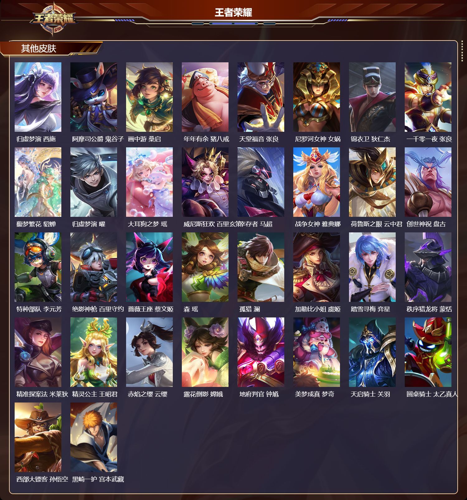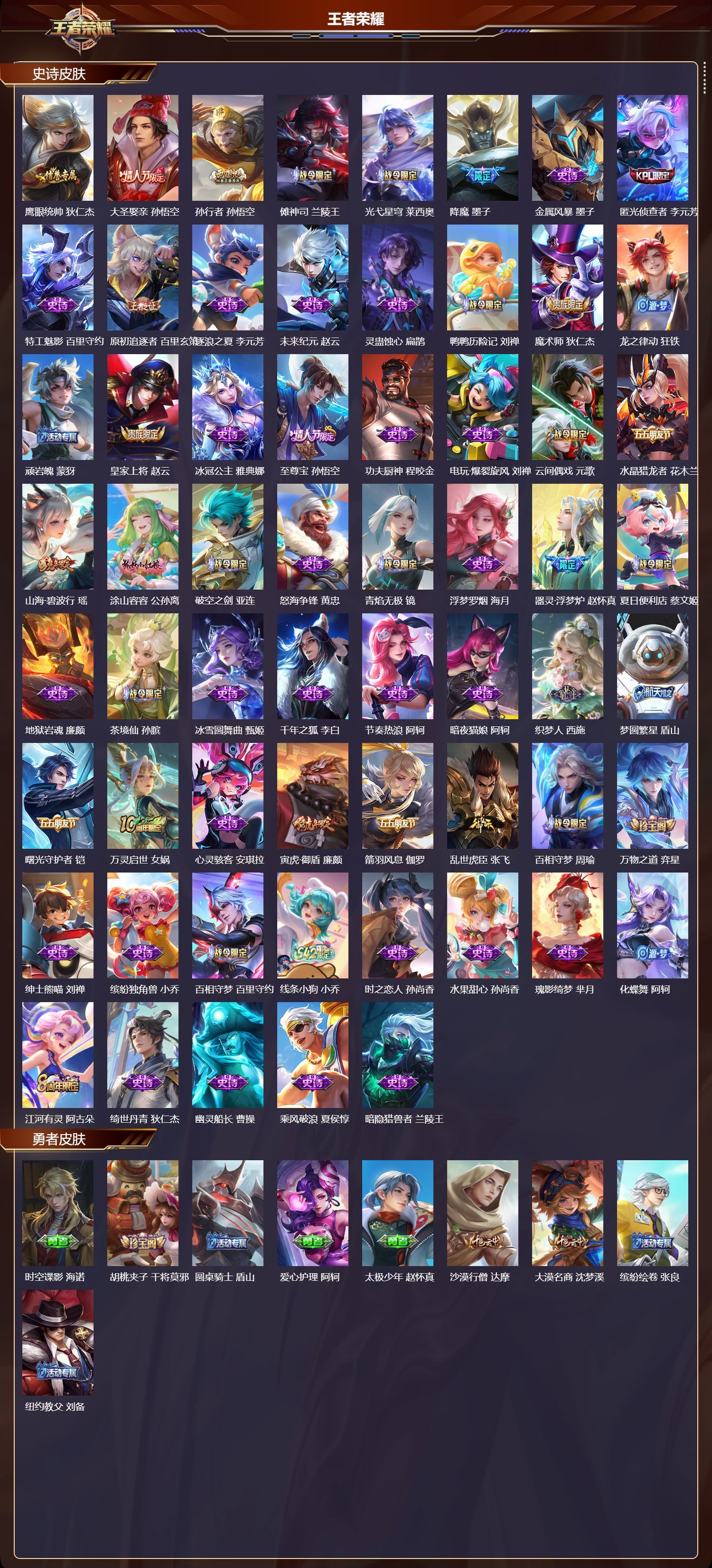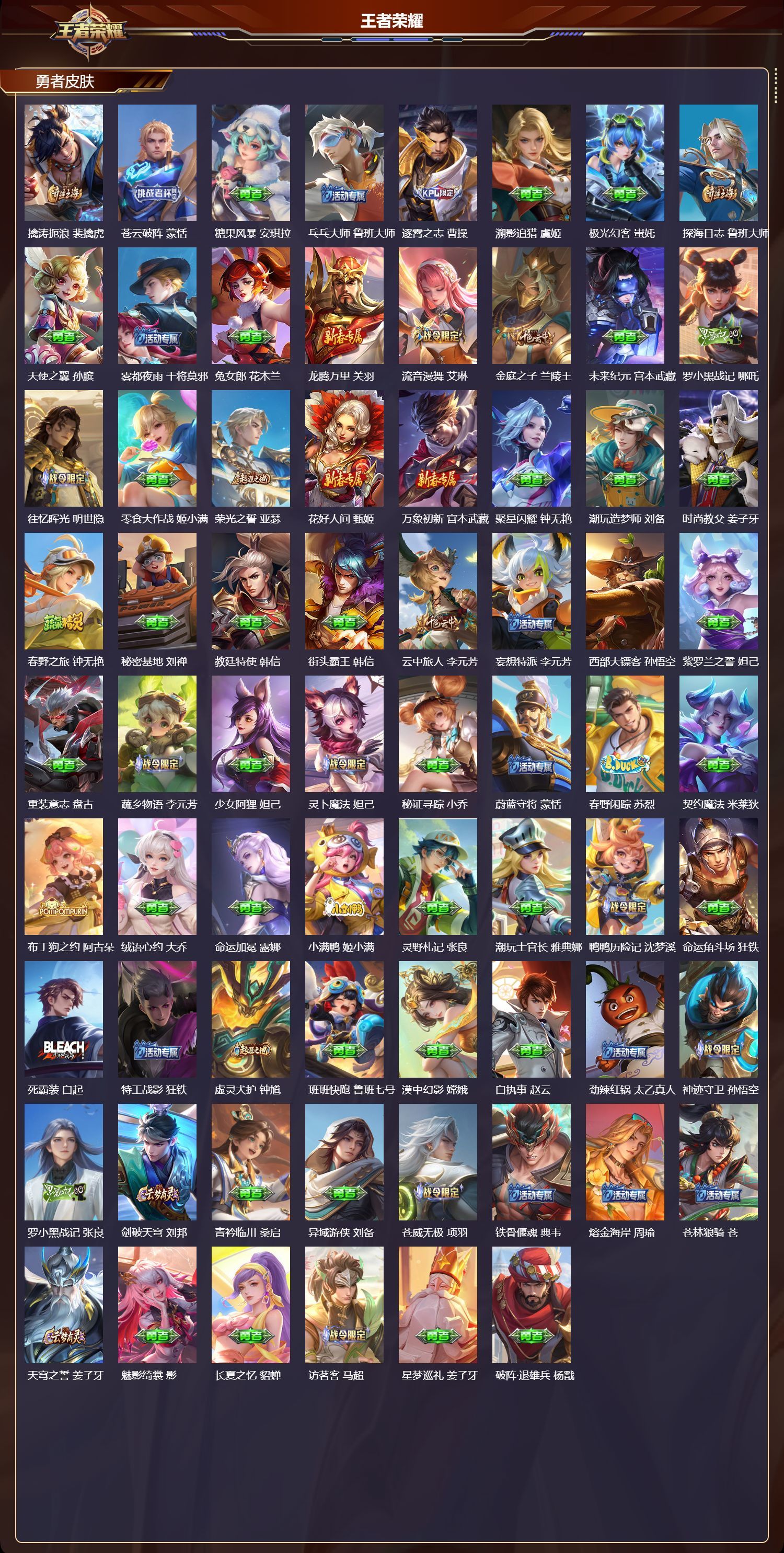 安卓QQ/最强王者/380皮肤/128英雄/2典藏/1珍品无双/1无双/2珍品传说/26传说/99史