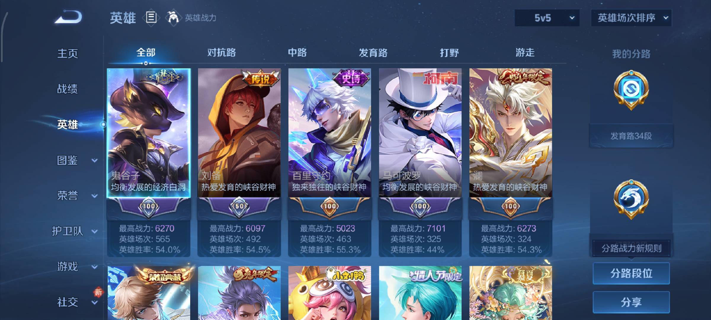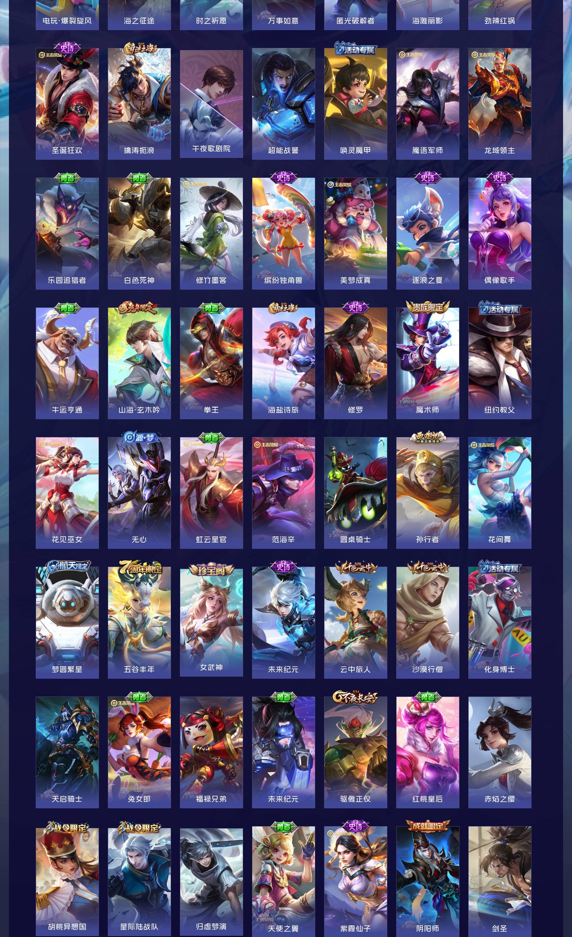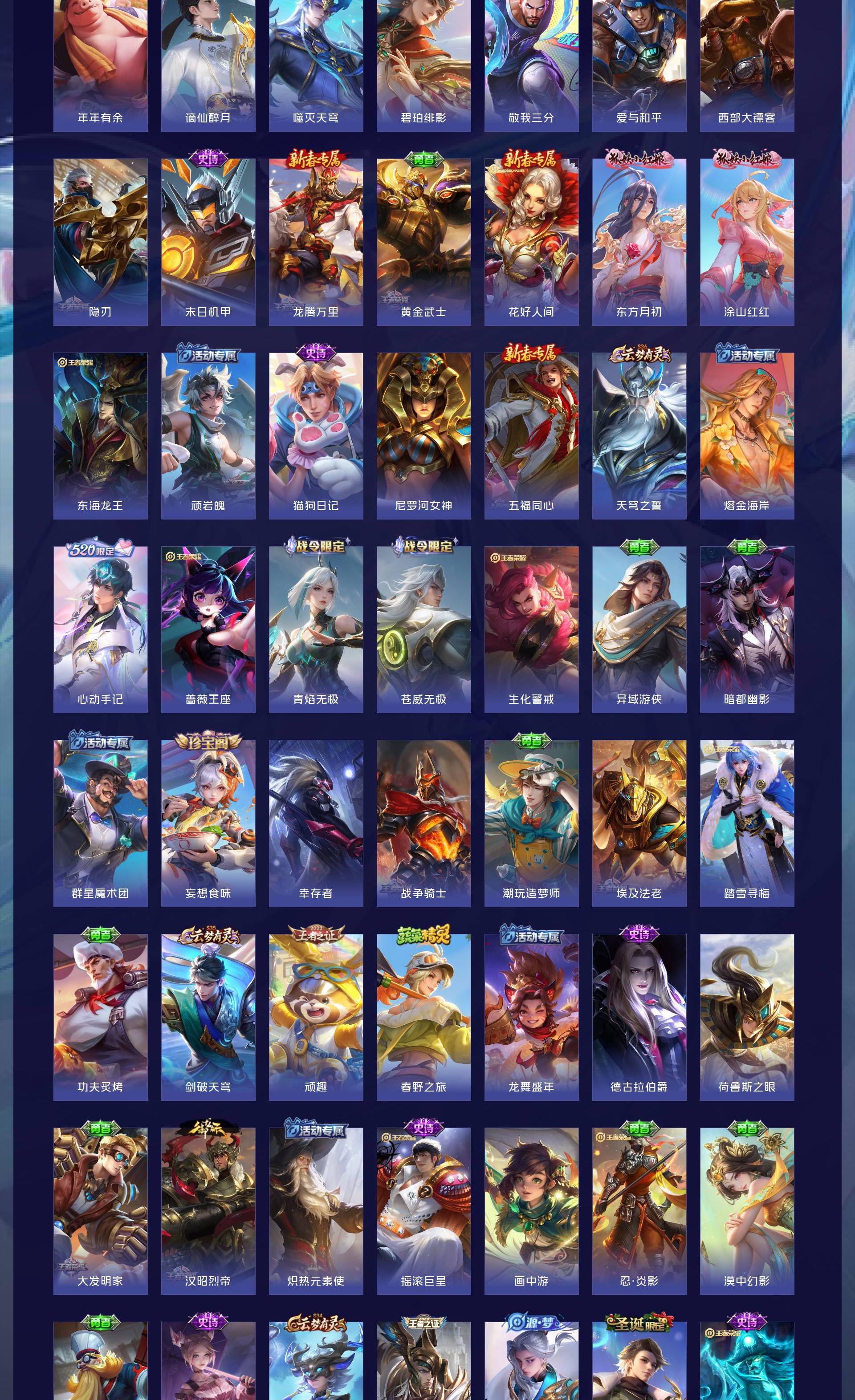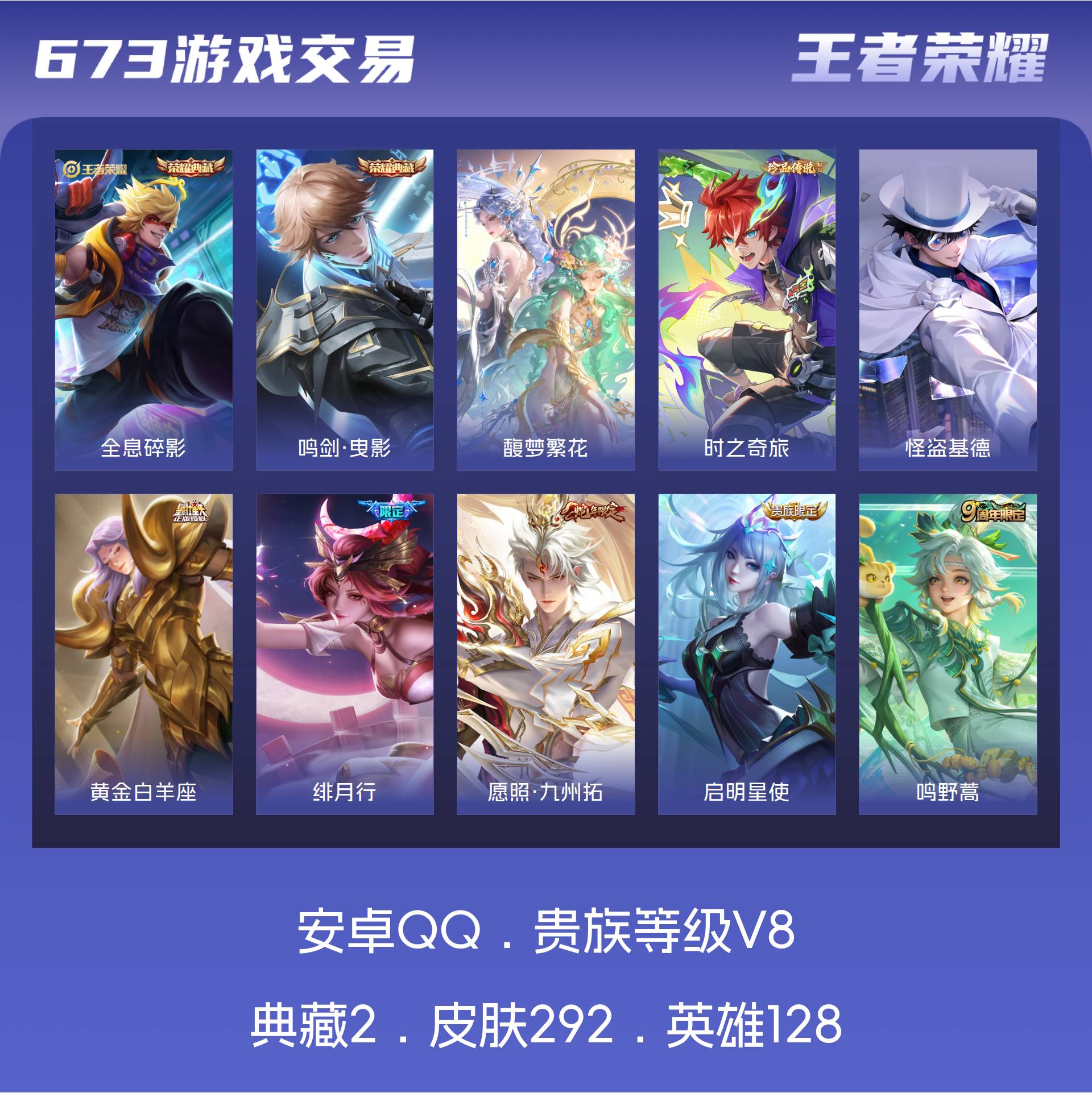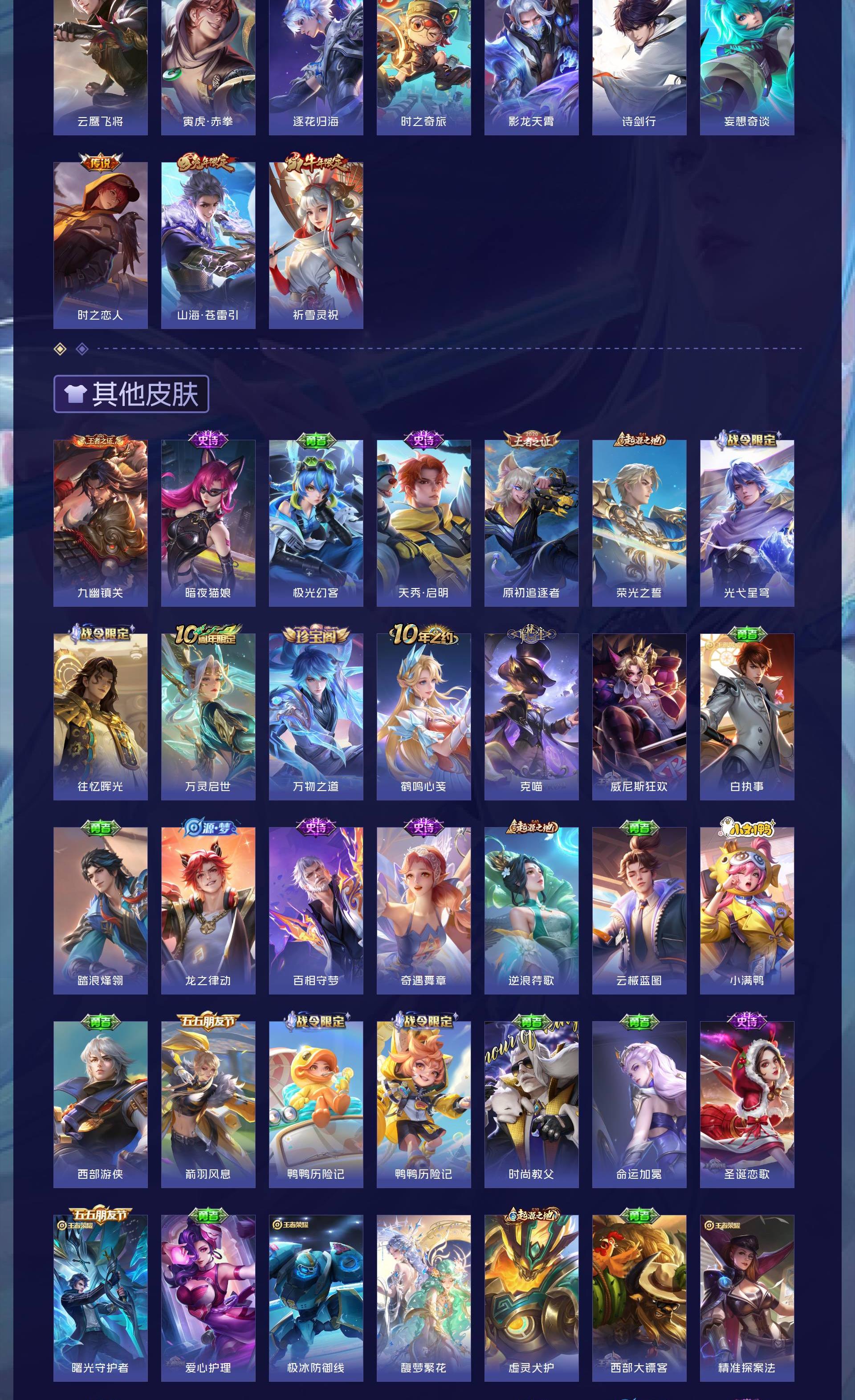 V8 皮肤292 英雄128 至尊星耀 荣耀典藏2 珍品无双1 珍品传说2 传说17 其他皮肤276