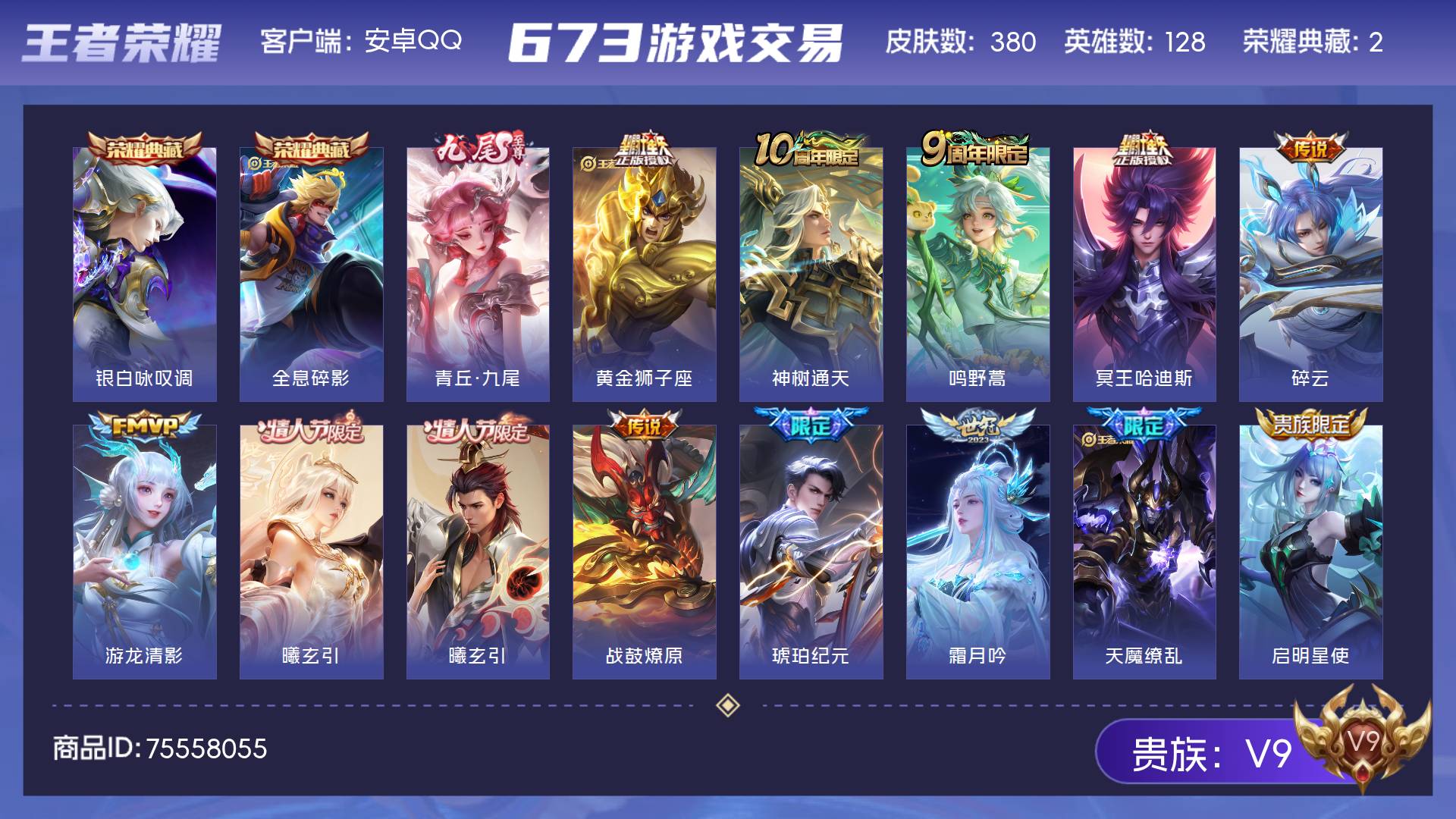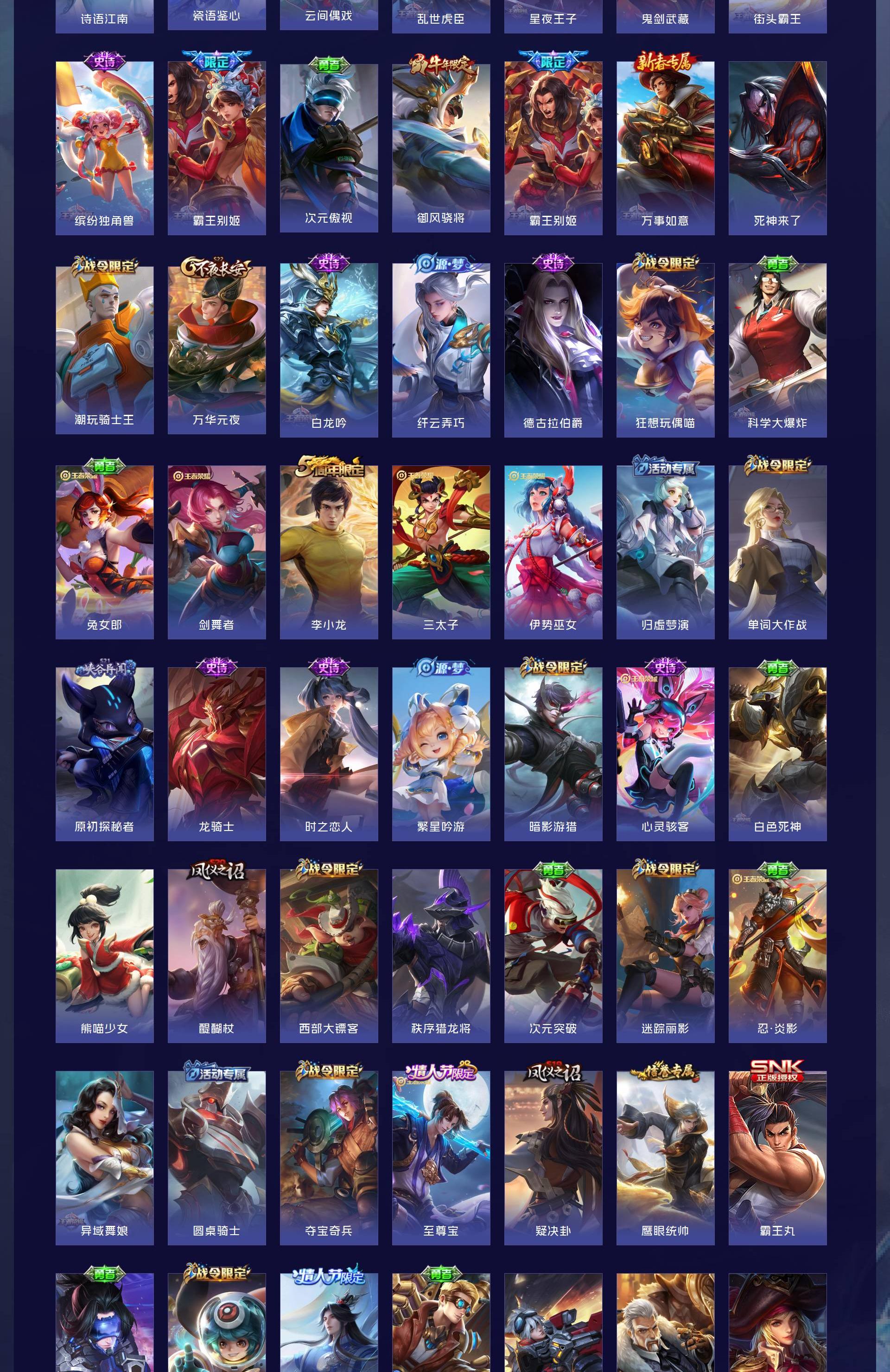 V9 皮肤380 英雄128 最强王者 荣耀典藏2 无双皮肤1 传说20 其他皮肤360
