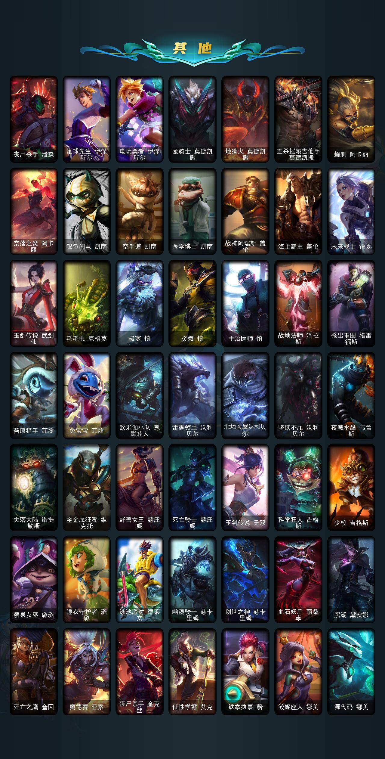 【LOLZ1190】159英雄/318皮肤/1神话/40限定/1臻彩/16炫彩/24传说/81史诗/未定级/十周年纪念安妮/无畏骑士瑟庄妮赤子初心/你看见过我的熊猫吗安妮/替父从军花木兰/张辽文远/觅心之翼奎因/幸福女神乐芙兰/圣诞开心鬼提莫/圣诞精灵崔丝塔娜/圣诞狂欢努努和威朗普/胡桃夹子萨科/平安夜女神娑娜/英勇玩具兵普朗克/夺命美人卡特琳娜/喜庆之树茂凯/雪默丁格/圣诞玩偶波比/圣诞老人古拉加斯/圣诞驯鹿克格莫/魄罗骑士瑟庄妮/冰雪节格雷福斯/冰雪女神辛德拉/生化领主泰达米尔/卧虎藏龙贾克